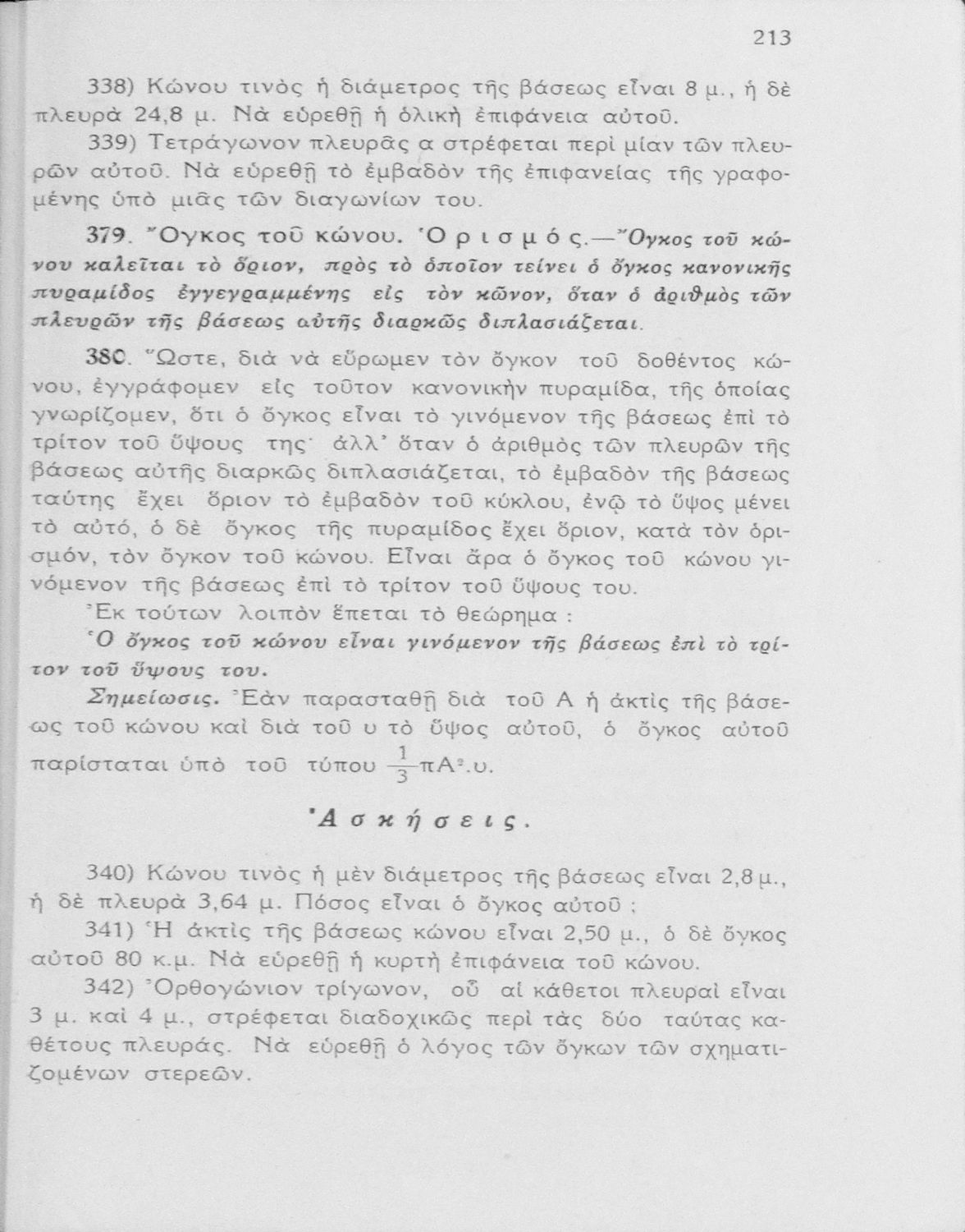 Σχολικό εγχειρίδιο Γεωμετρίας Γυμνασίου που περιλαμβάνει θεωρία και ασκήσεις και είναι χωρισμένο σε Επιπεδομετρία και Στερεομετρία.
