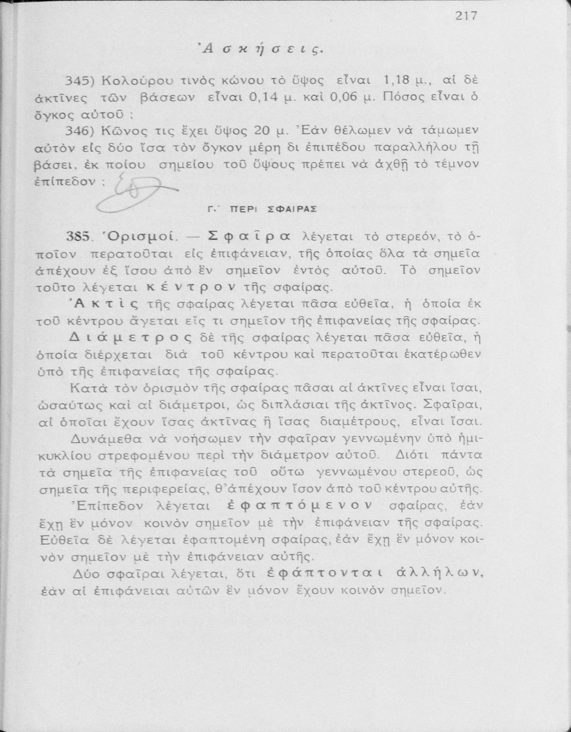 Τίτλος: Θεωρητική γεωμετρία δια τας ανωτέρας τάξεις των Γυμνασίων νέου τύπου