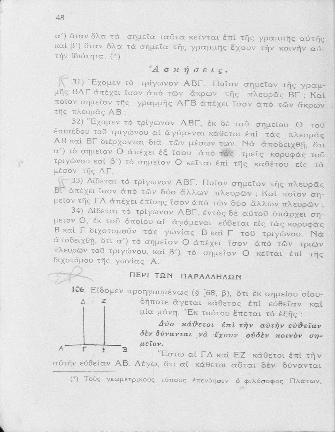 Θεωρητική γεωμετρία δια τας ανωτέρας τάξεις των Γυμνασίων νέου τύπου