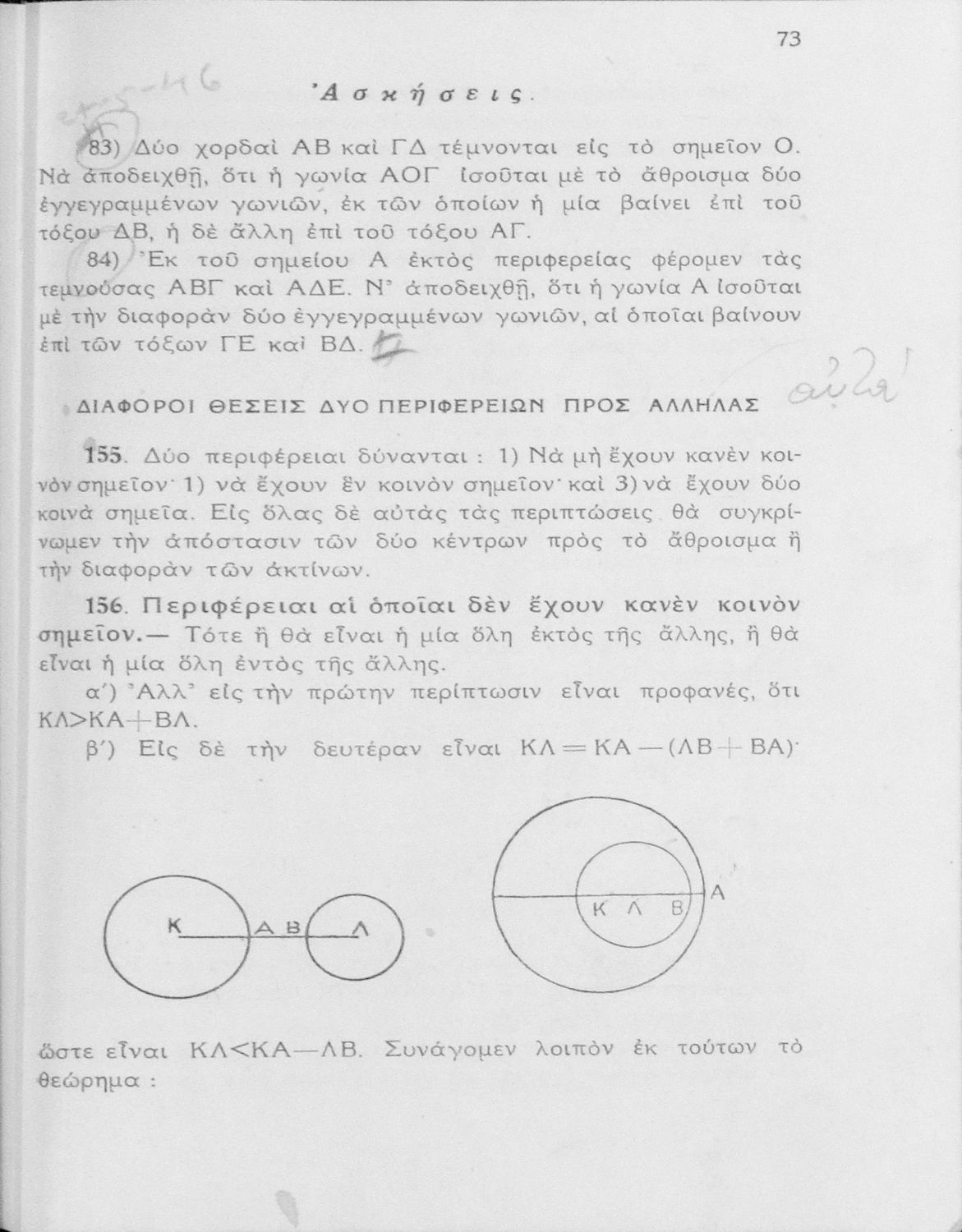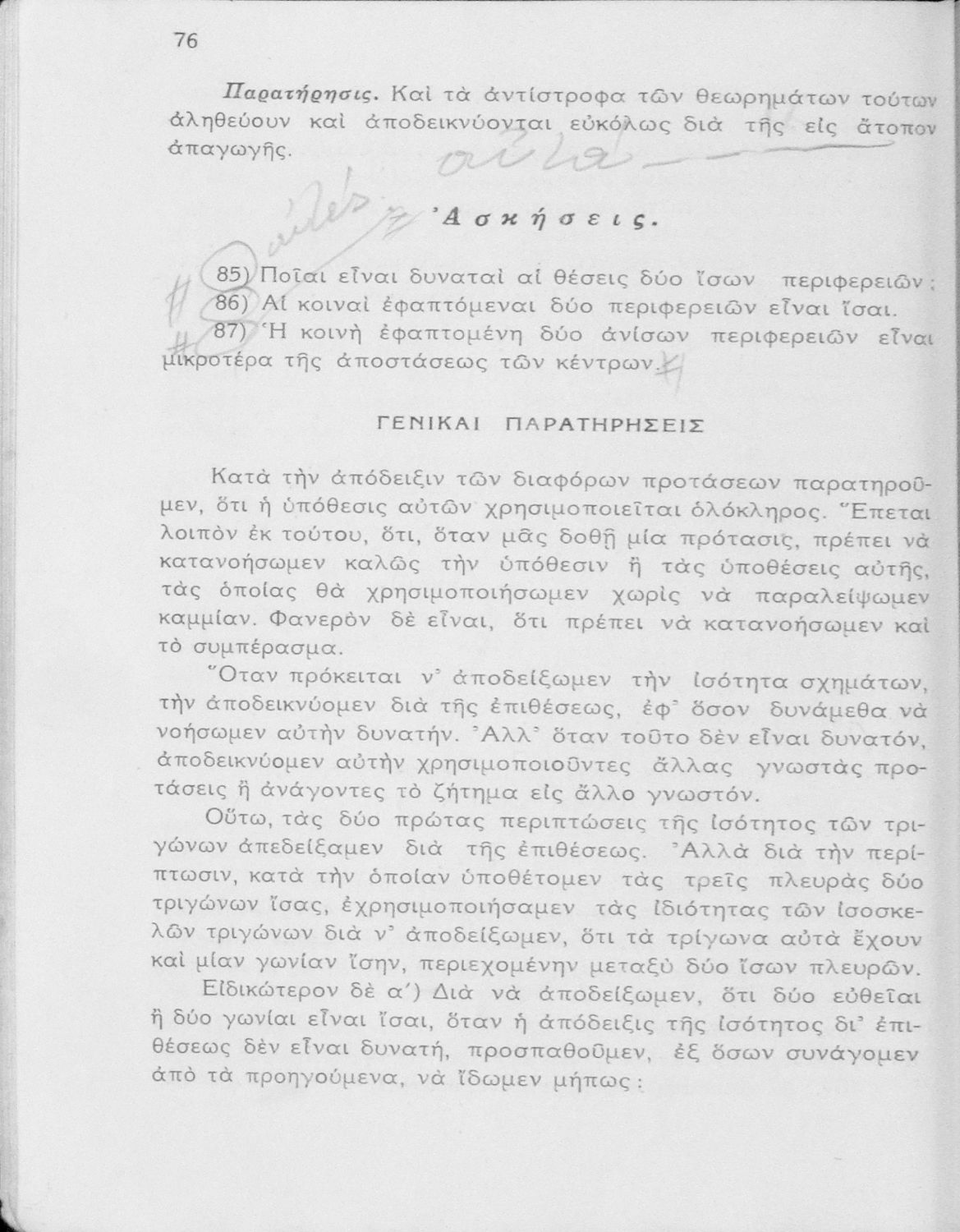 Θεωρητική γεωμετρία δια τας ανωτέρας τάξεις των Γυμνασίων νέου τύπου