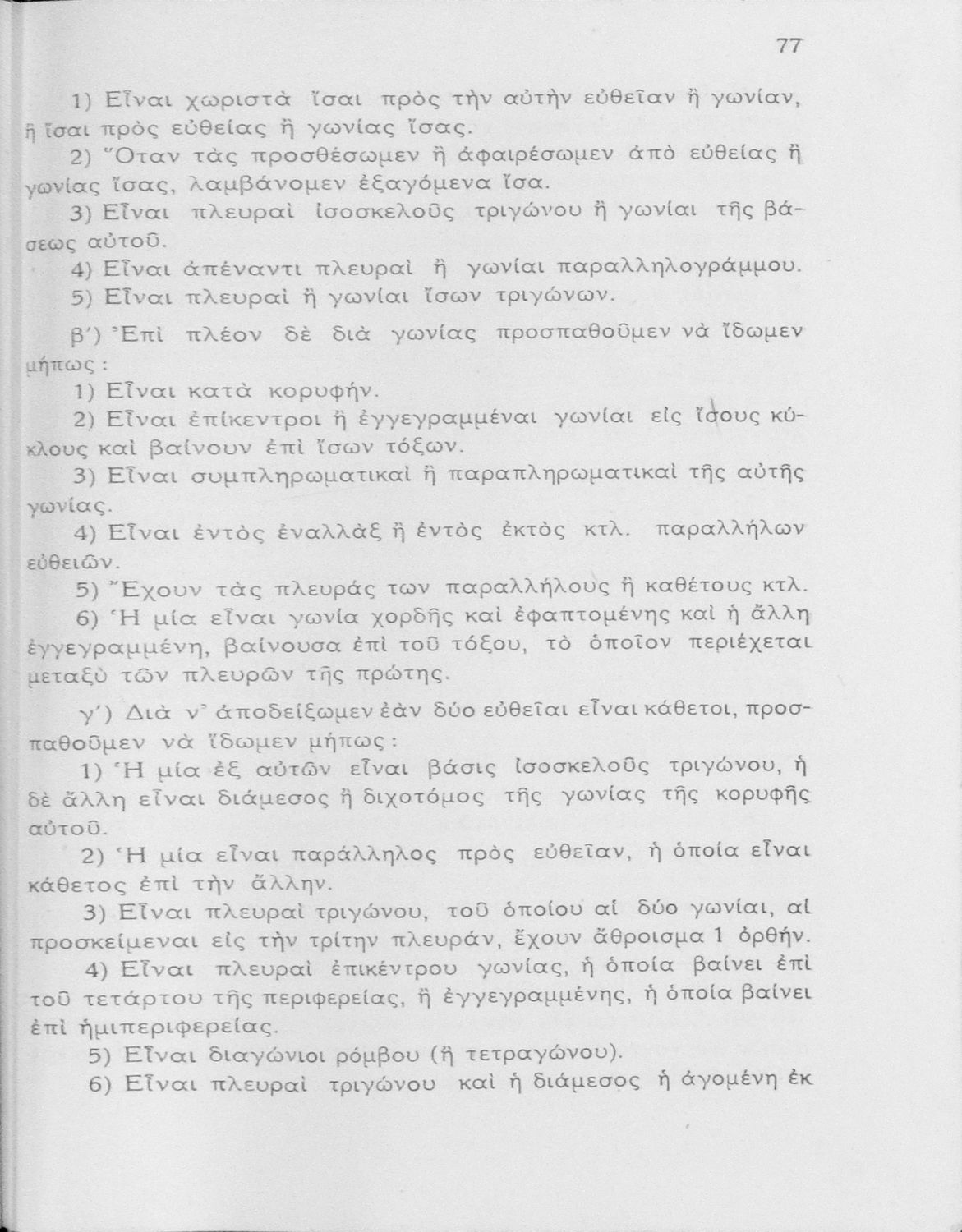 Σχολικό εγχειρίδιο Γεωμετρίας για τις Α΄, Β΄, Γ΄ Γυμνασίου που είναι χωρισμένο σε Επιπεδομετρία και Στερεομετρία και περιλαμβάνει θεωρία και ασκήσεις.