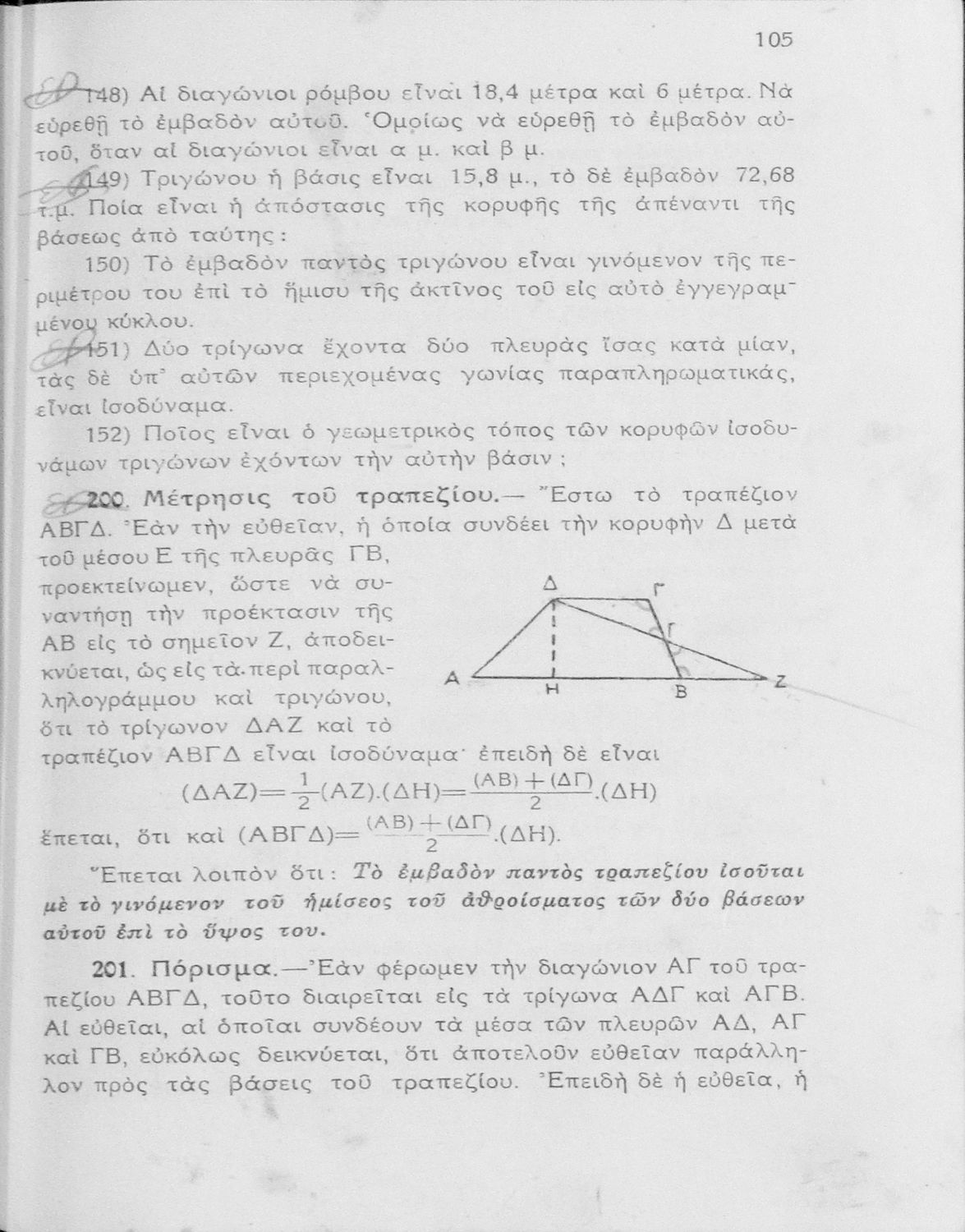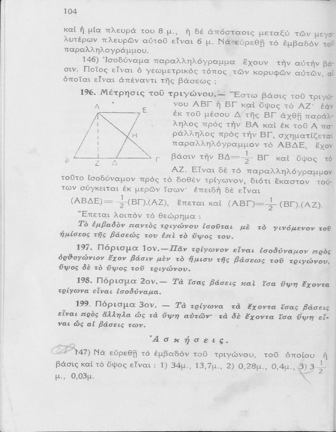 Σχολικό εγχειρίδιο Γεωμετρίας για τις Α΄, Β΄, Γ΄ Γυμνασίου που είναι χωρισμένο σε Επιπεδομετρία και Στερεομετρία και περιλαμβάνει θεωρία και ασκήσεις.
