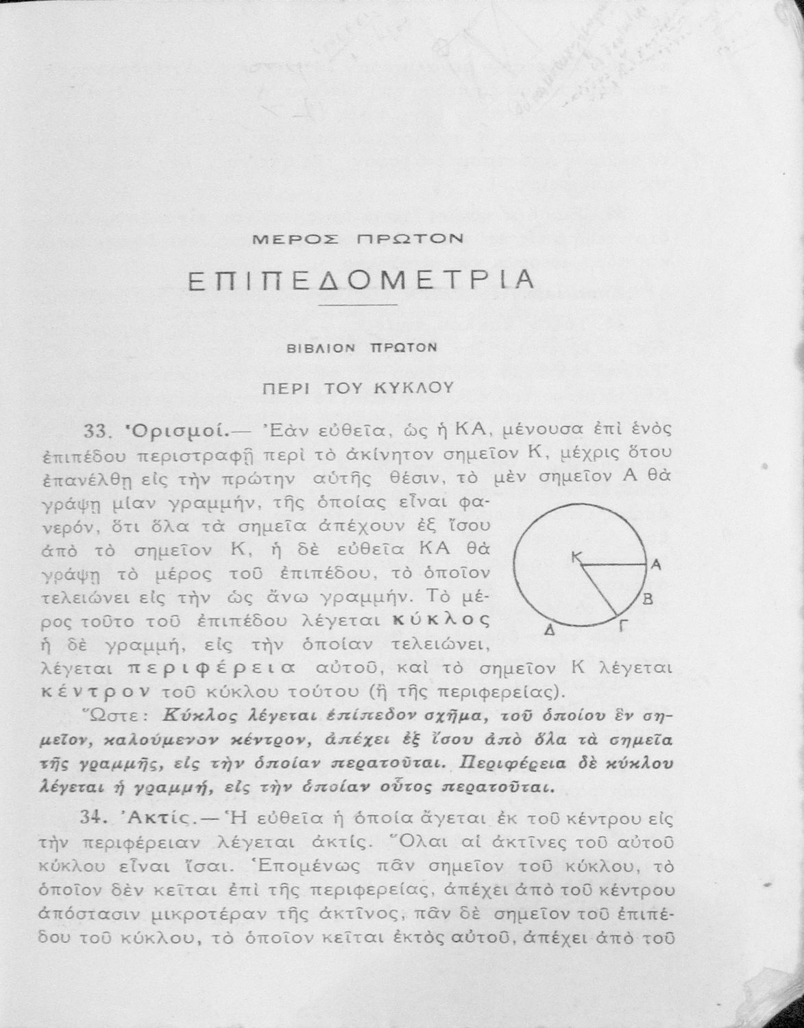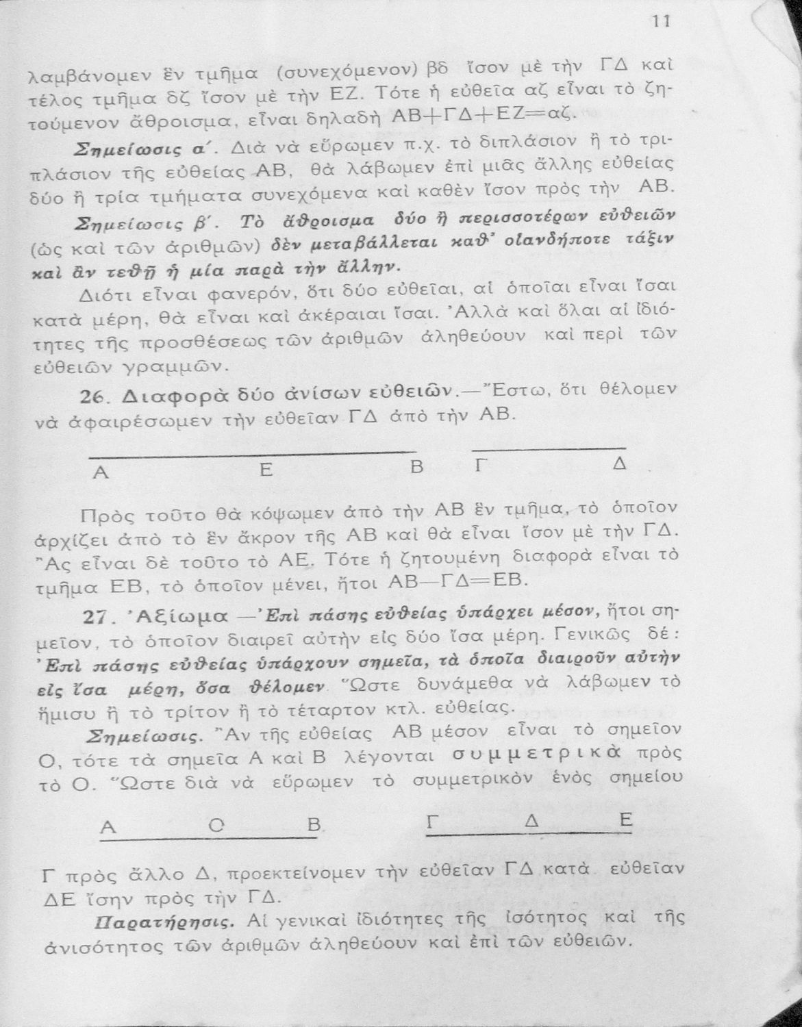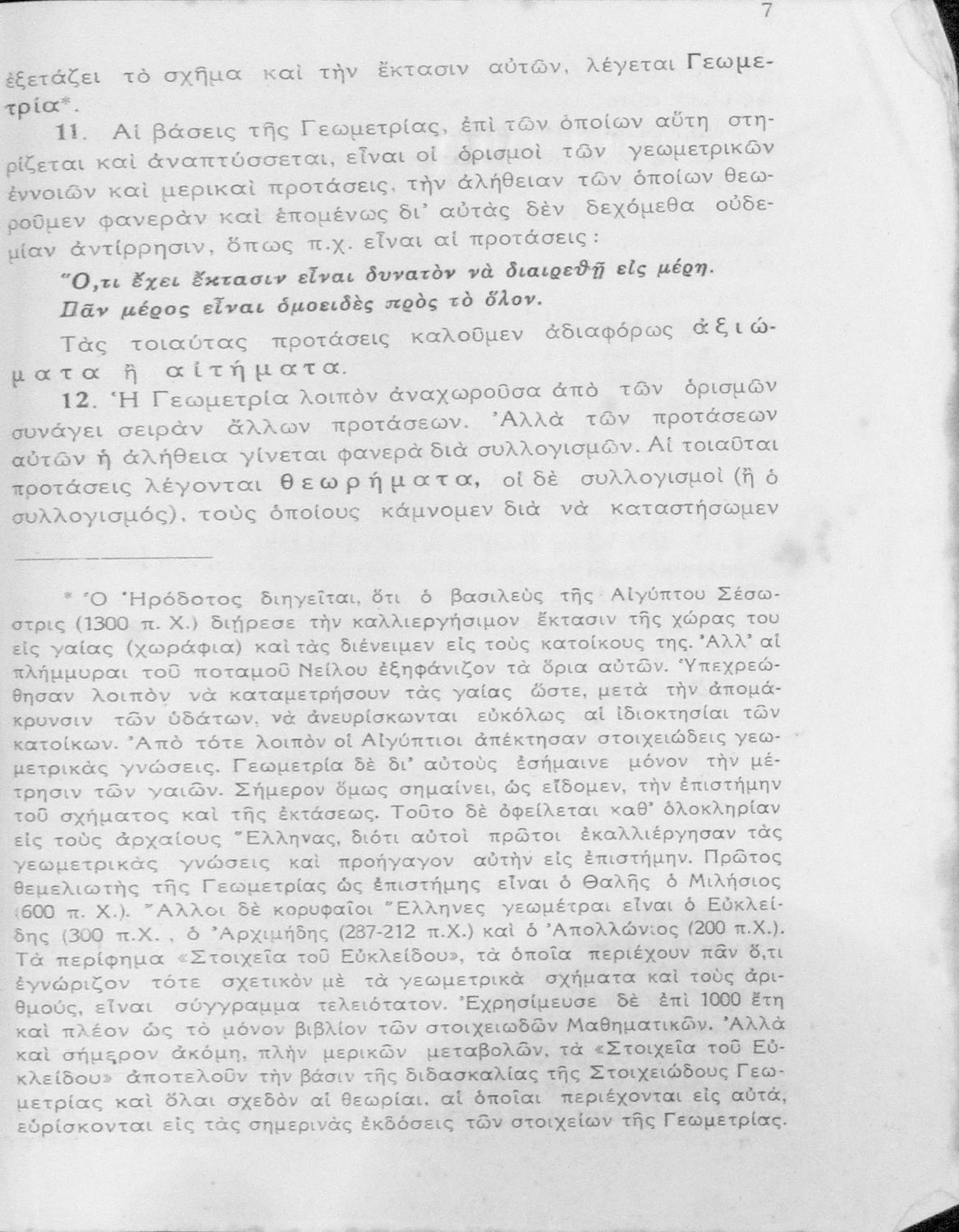 Βαθμίδα εκπαίδευσης: Δευτεροβάθμια Τάξη: Γυμνάσιο Μάθημα: Μαθηματικά Γλώσσα: Απλή καθαρεύουσα Παρουσίαση περιεχομένου: Σχολικό εγχειρίδιο Γεωμετρίας για τα Γυμνάσια νέου τύπου που είναι χωρισμένο σε Επιπεδομετρία και Στερεομετρία και περιλαμβάνει θεωρία και ασκήσεις. |