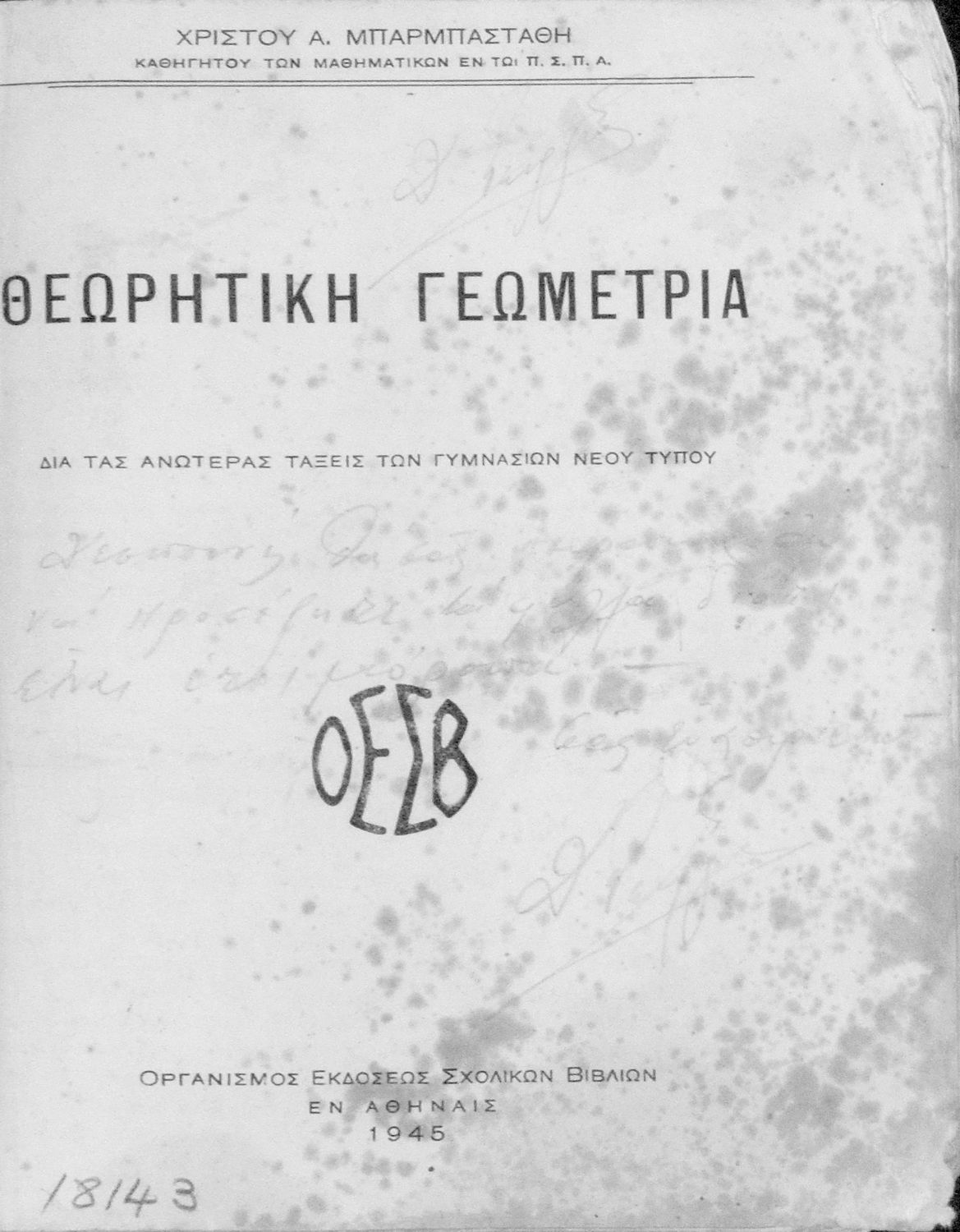 Εκδότης: Οργανισμός Εκδόσεως Σχολικών Βιβλίων Έτος έκδοσης: 1945 Τόπος έκδοσης: Αθήνα |