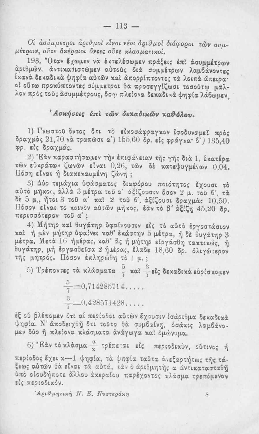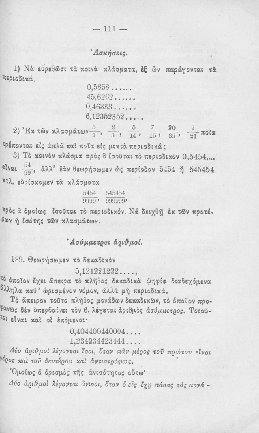 Θεωρητική αριθμητική προς χρήσιν της Α΄ τάξεως των Τετραταξίων Γυμνασίων και της αντιστοίχου τάξεως των λοιπών σχολείων