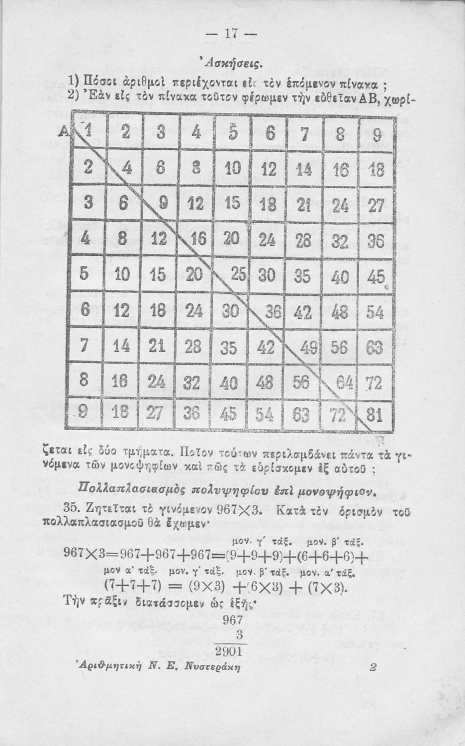 LDR 01403 2200217 4500 035 ## _a01-18144 040 ## _aΙνστιτούτο Εκπαιδευτικής Πολιτικής 041 ## _ael 100 ## _aΝικόλαος Ε. Νυστεράκης 110 ## _a18144 245 0# _aΘεωρητική αριθμητική προς χρήσιν της Α΄ τάξεως των Τετραταξίων Γυμνασίων και της αντιστοίχου τάξεως των λοιπών σχολείων 250 ## _a4η Έκδοση 260 ## _aΑθήνα _bΙωάννης Ν. Σιδέρης _c1923 300 ## _a192 _c20 520 ## _aΣχολικό εγχειρίδιο Αριθμητικής για την Α΄ Τετραταξίου Γυμνασίου που εστιάζει στις αριθμητικές πράξεις με ακέραιους αριθμούς και κλάσματα και είναι χωρισμένο σε ορισμούς, θεωρήματα και ασκήσεις. 521 ## _aΑ' Γυμνασίου 522 ## _aΕλλάδα 546 ## _aΑπλή καθαρεύουσα 563 ## _aΣκληρό Εξώφυλλο 583 ## _a637/31-10-1923 _c1923 650 #4 _aΑριθμητικές πράξεις _aΕλάχιστο κοινό πολλαπλάσιο _aΜέγιστος κοινός διαιρέτης _aΣυμμιγείς αριθμοί _aΤετραγωνική ρίζα
