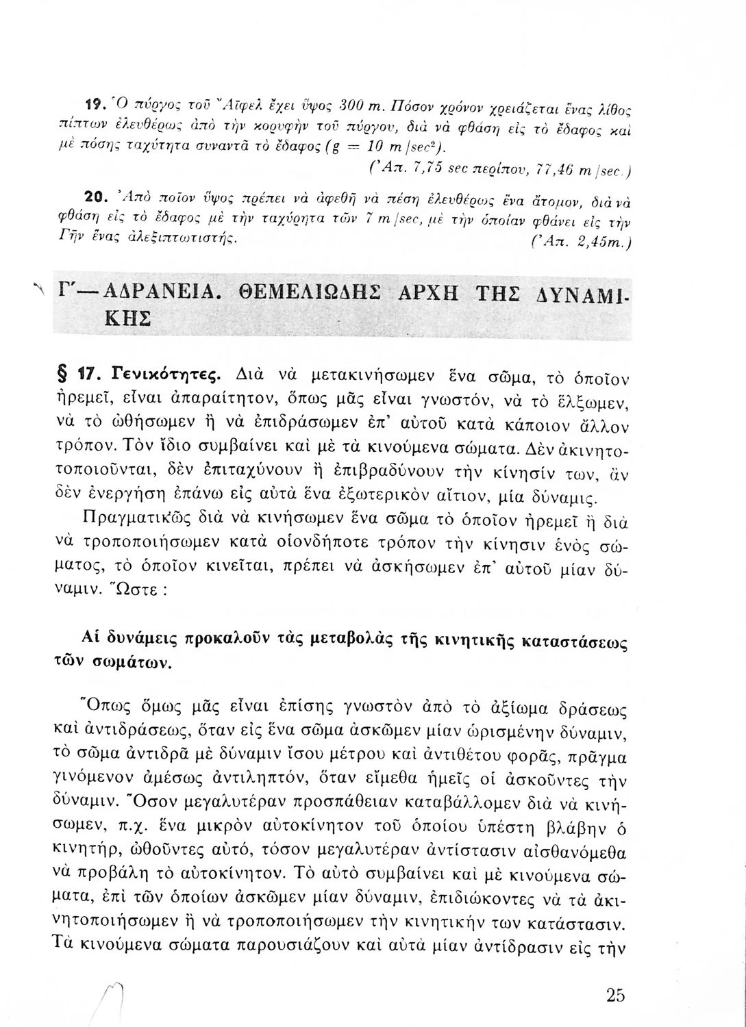 Σχολικό εγχειρίδιο της Ε΄ και ΣΤ΄ Τάξης των Δημοτικών Σχολείων και την Α΄ Τάξη των Οκτατάξιων Γυμνασίων, Προγυμνασίων και Αστικών Σχολείων για το μάθημα της Φυσικής. Παρέχει βασικές γνώσεις της φυσικής ...
