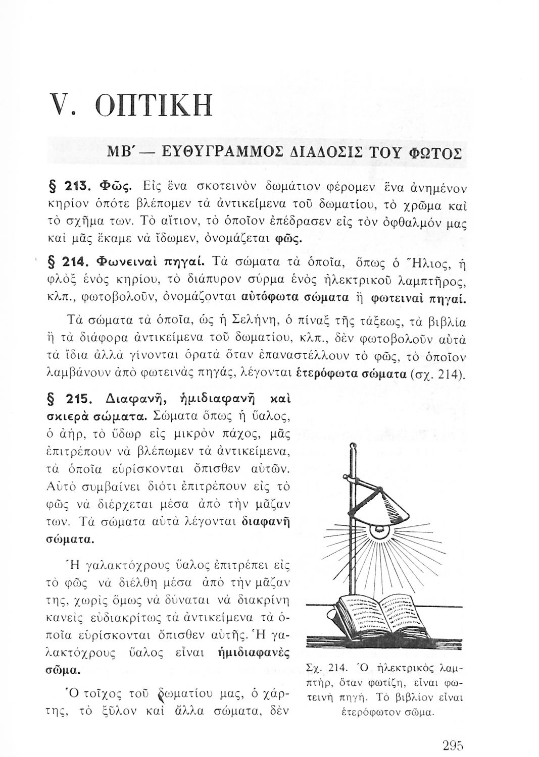 Βαθμίδα εκπαίδευσης: Δευτεροβάθμια Τάξη: Γ' Γυμνασίου Μάθημα: Φυσική Γλώσσα: Καθαρεύουσα Παρουσίαση περιεχομένου: Σχολικό εγχειρίδιο Φυσικής Γ΄ Γυμνασίου που εστιάζει στα φυσικά φαινόμενα της μηχανικής, της θερμοδυναμικής, του ηλεκτρισμού, του μαγνητισμού, και της οπτικής. Φέρει το σύμβολο της δικτατορίας. |