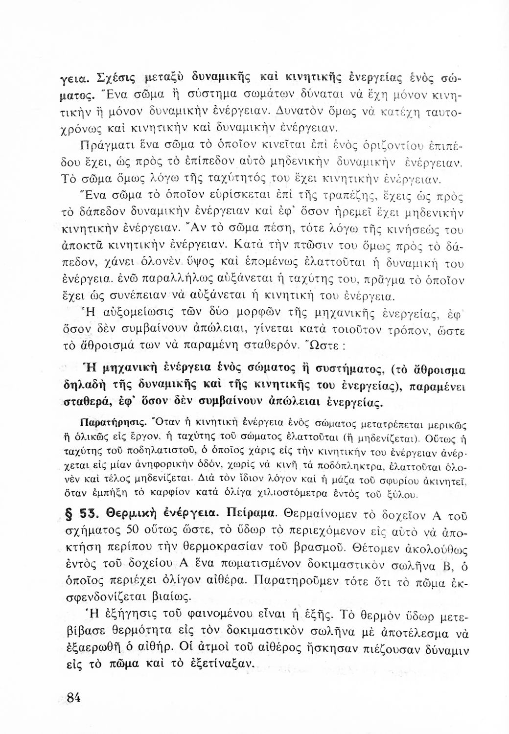 Βαθμίδα εκπαίδευσης: Δευτεροβάθμια Τάξη: Γ' Γυμνασίου Μάθημα: Φυσική Γλώσσα: Καθαρεύουσα Παρουσίαση περιεχομένου: Σχολικό εγχειρίδιο Φυσικής Γ΄ Γυμνασίου που εστιάζει στα φυσικά φαινόμενα της μηχανικής, της θερμοδυναμικής, του ηλεκτρισμού, του μαγνητισμού, και της οπτικής. Φέρει το σύμβολο της δικτατορίας. |