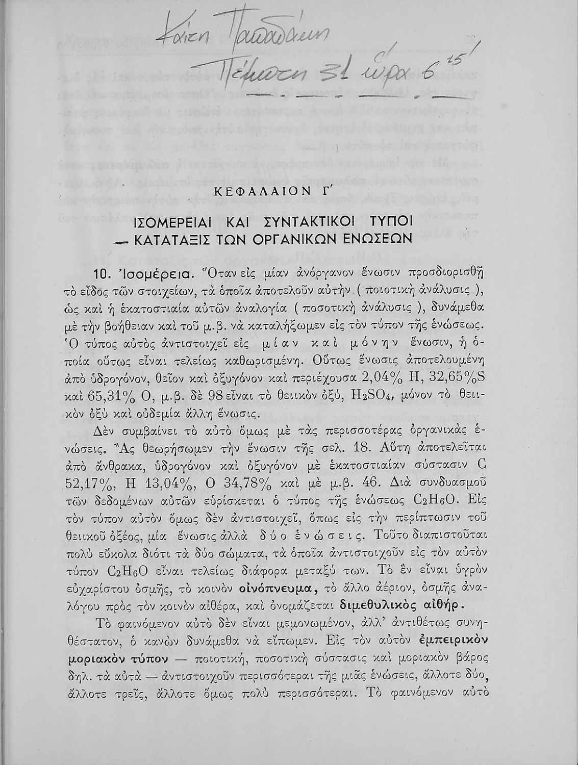 Τίτλος: Οργανική χημεία δια την ΣΤ΄ τάξιν των Εξαταξίων Γυμνασίων