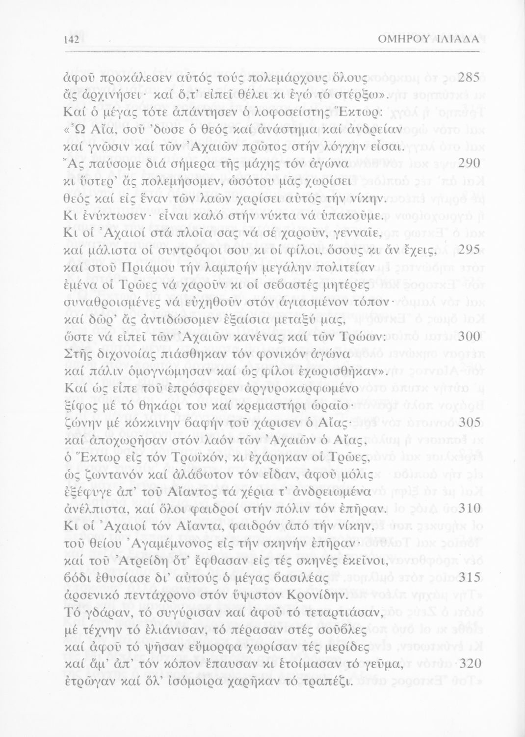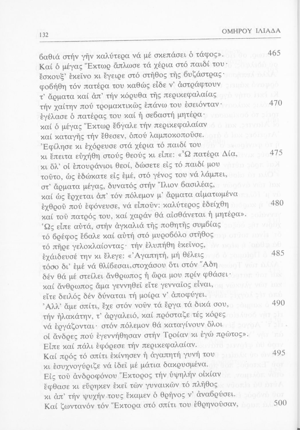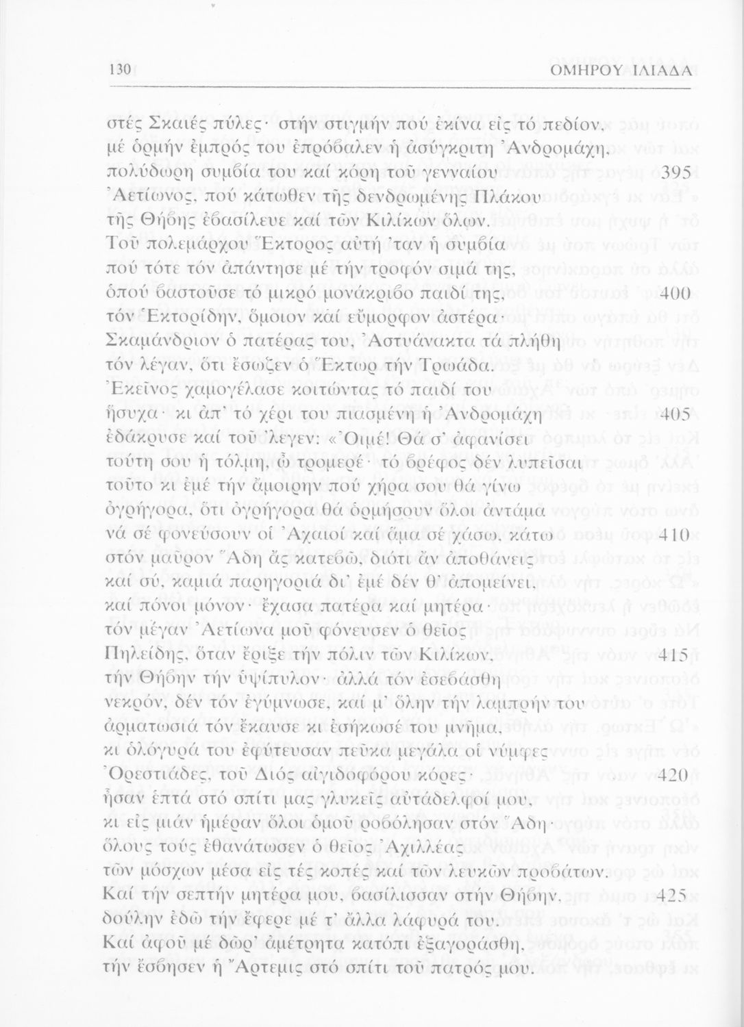 Σχολικό εγχειρίδιο της Δευτεροβάθμιας Εκπαίδευσης για το μάθημα των Αρχαίων Ελληνικών. Πρόκειται για το κείμενο της Ιλιάδας μεταφρασμένο, με πραγματολογικές παρατηρήσεις. Στο τέλος περιλαμβάνει λεξιλόγιο.