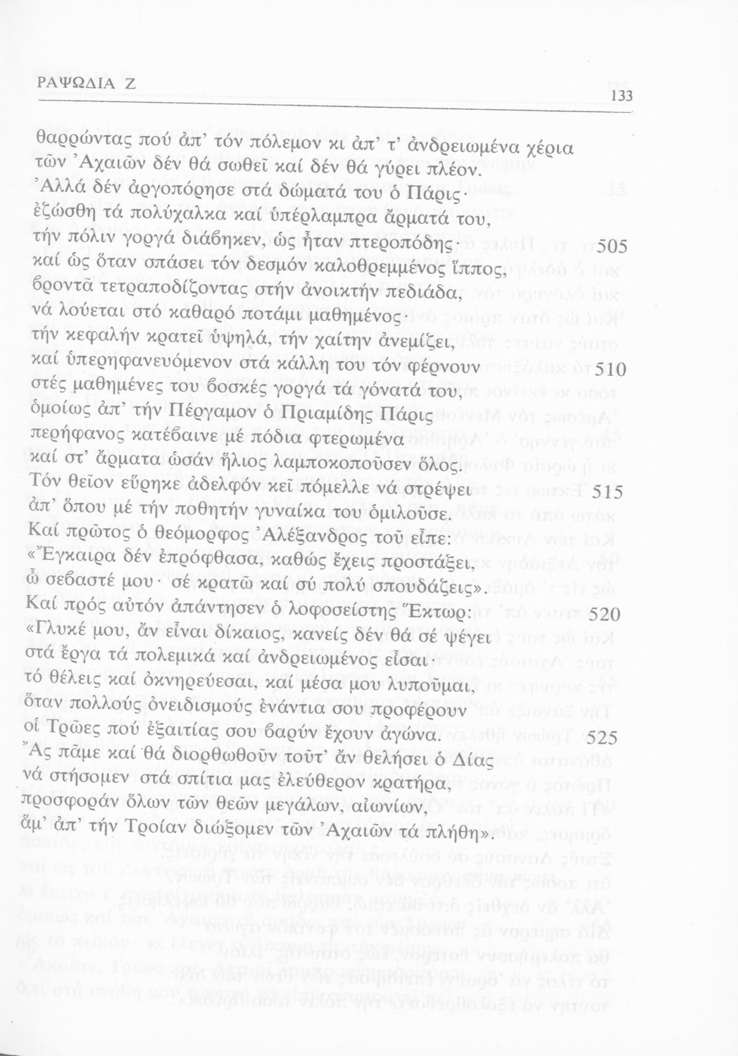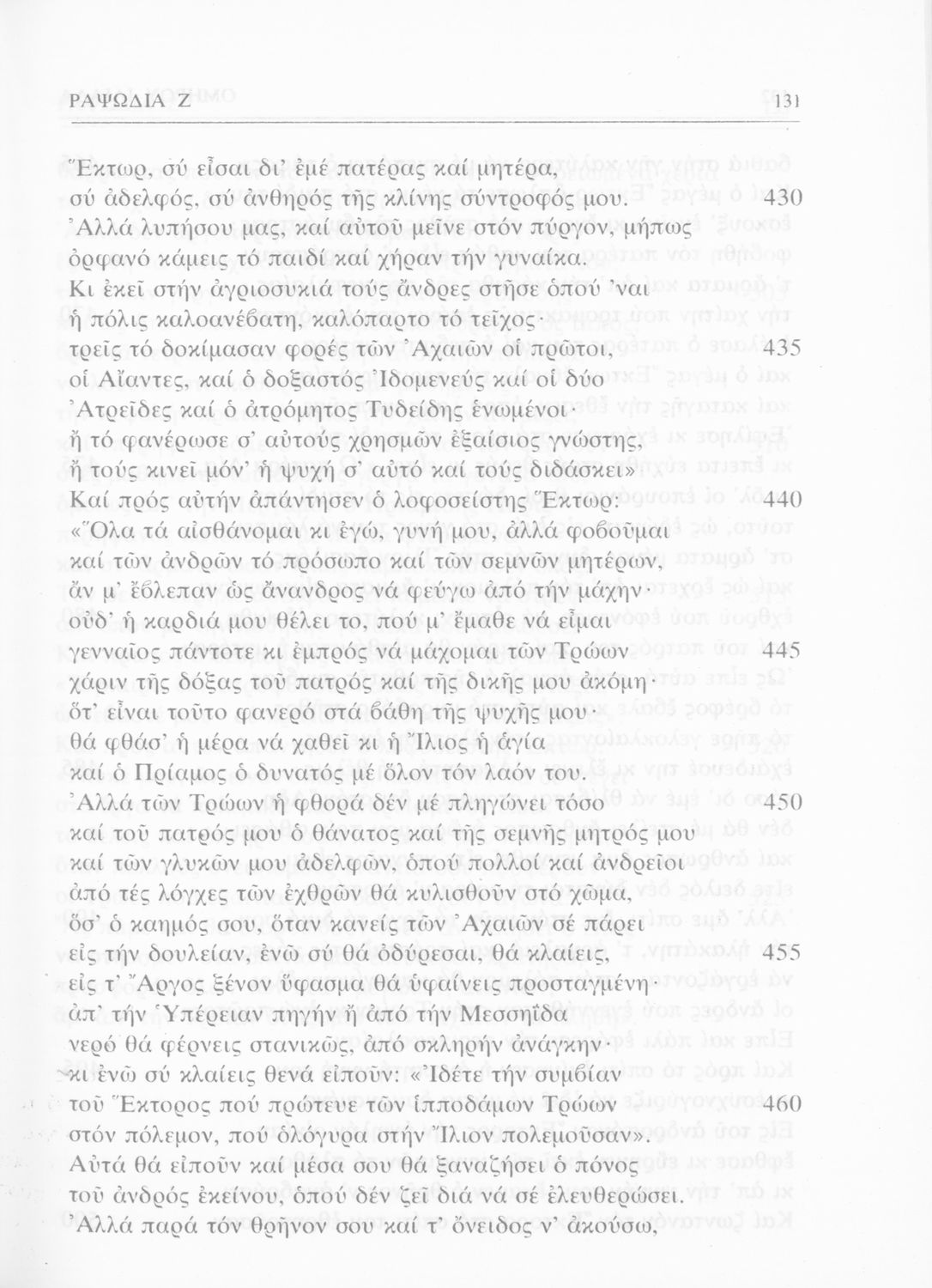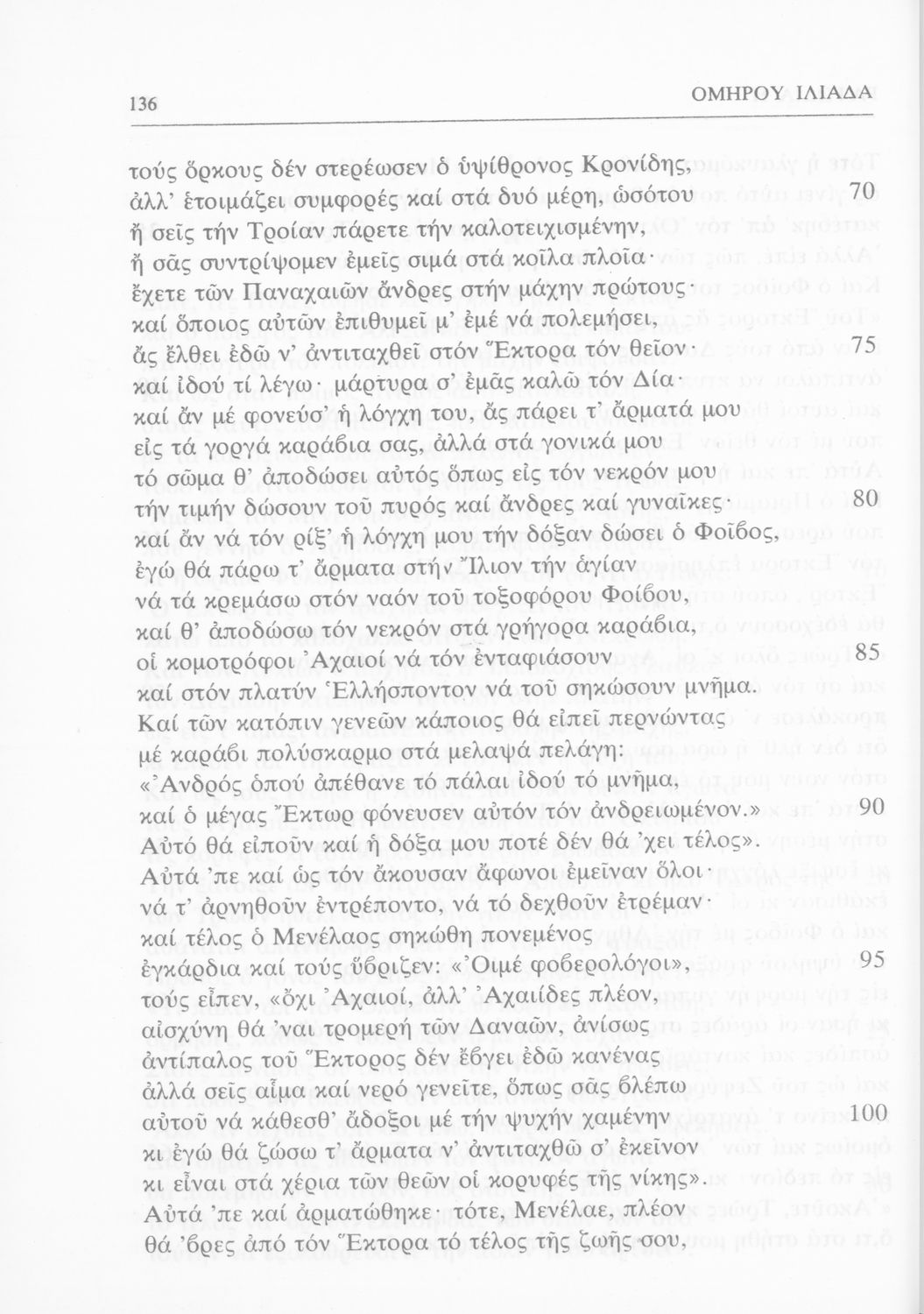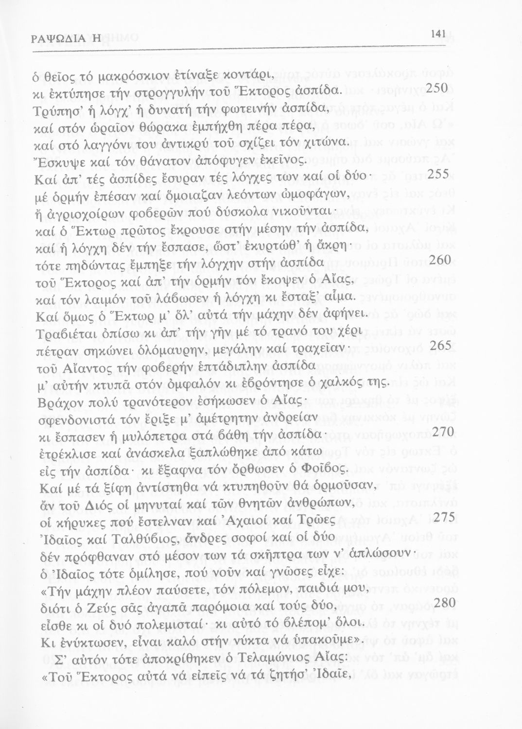Σχολικό εγχειρίδιο της Δευτεροβάθμιας Εκπαίδευσης για το μάθημα των Αρχαίων Ελληνικών. Πρόκειται για το κείμενο της Ιλιάδας μεταφρασμένο, με πραγματολογικές παρατηρήσεις. Στο τέλος περιλαμβάνει λεξιλόγιο.
