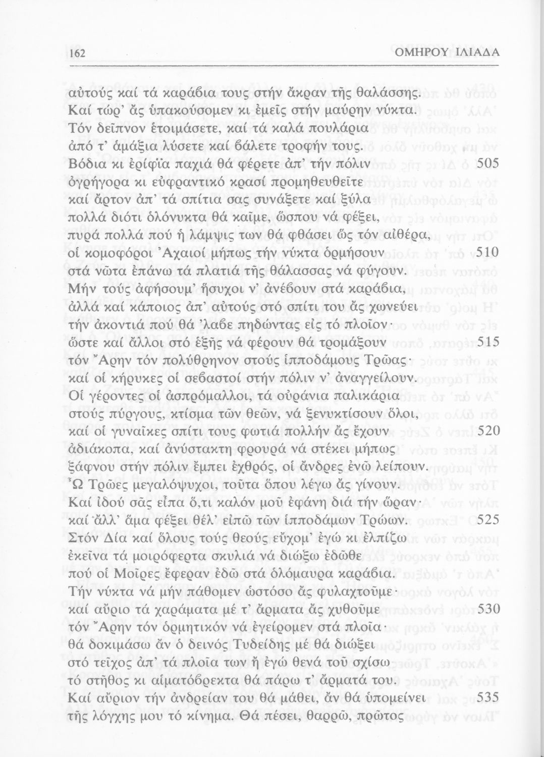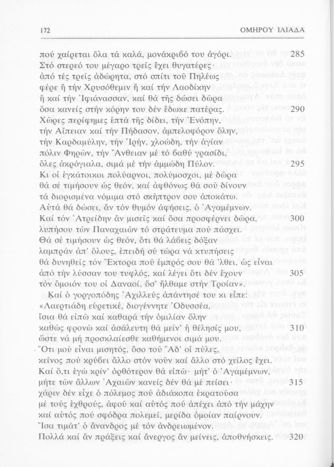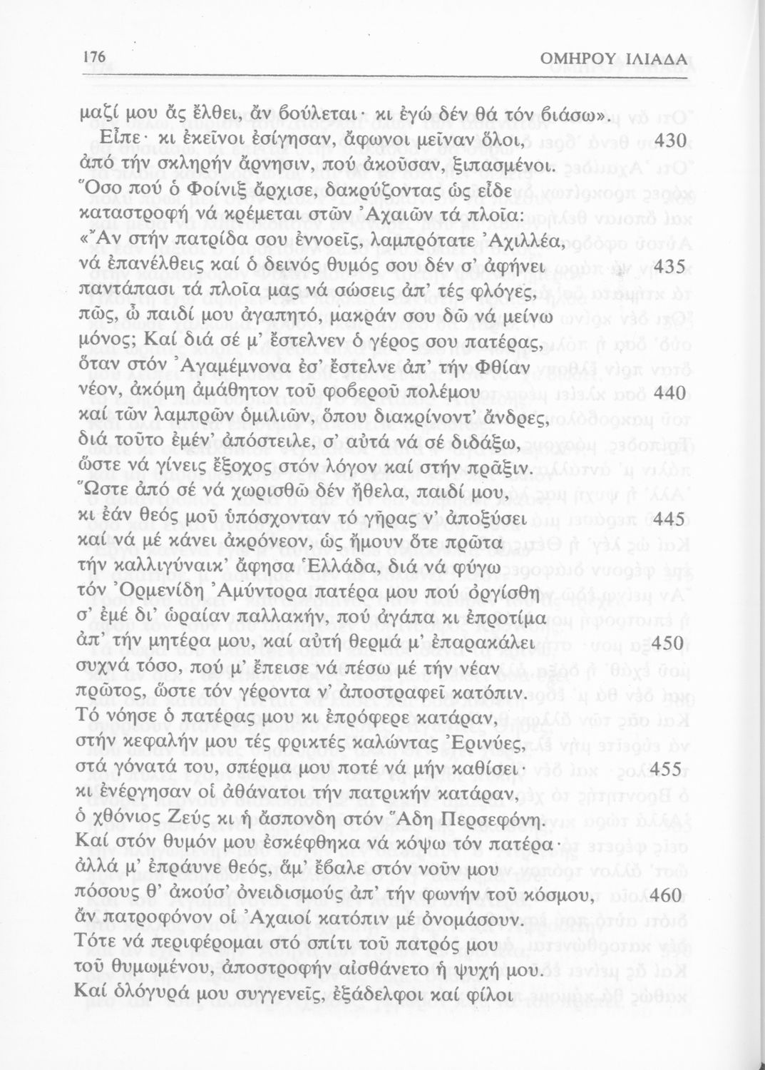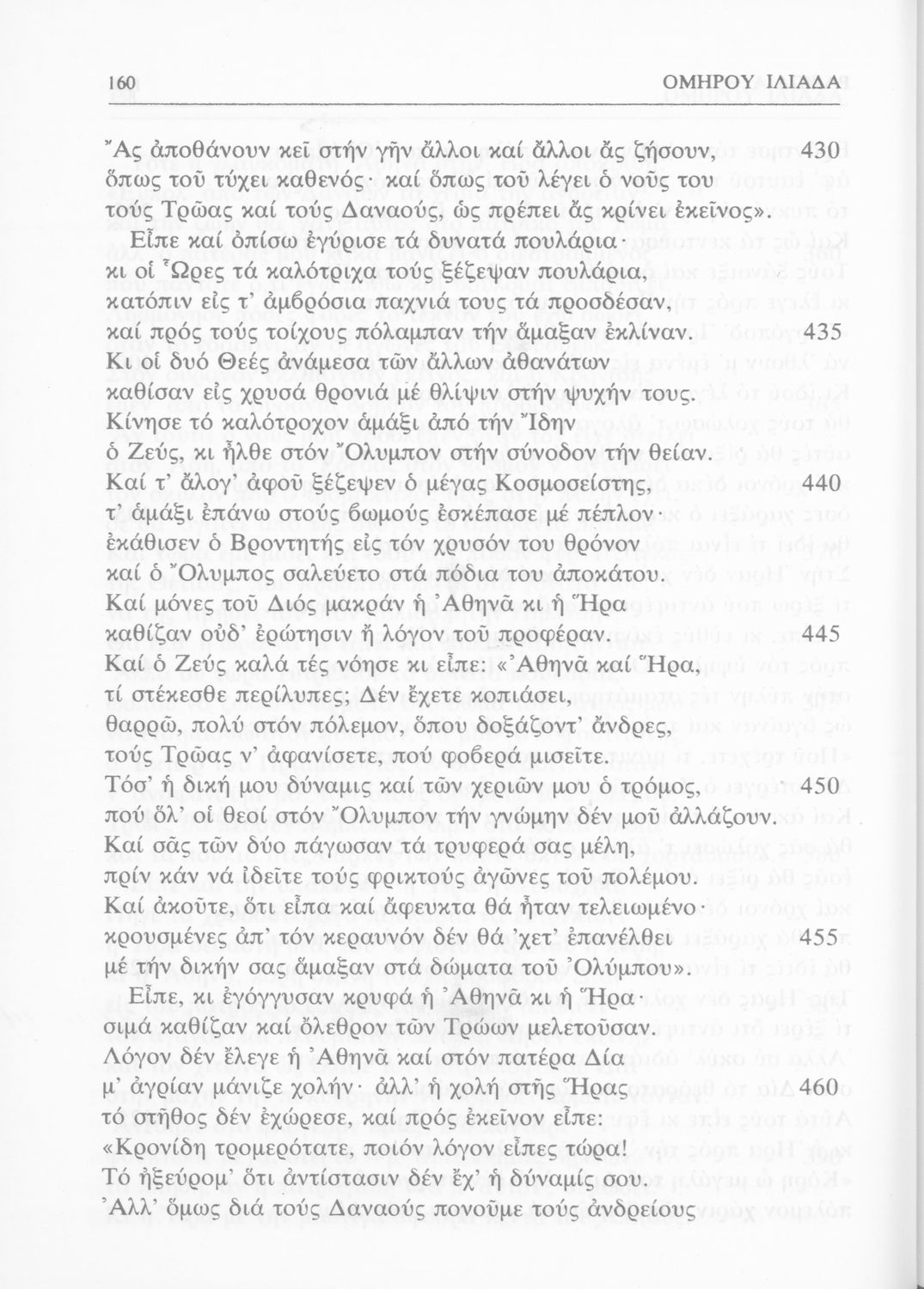 Σχολικό εγχειρίδιο της Δευτεροβάθμιας Εκπαίδευσης για το μάθημα των Αρχαίων Ελληνικών. Πρόκειται για το κείμενο της Ιλιάδας μεταφρασμένο, με πραγματολογικές παρατηρήσεις. Στο τέλος περιλαμβάνει λεξιλόγιο.