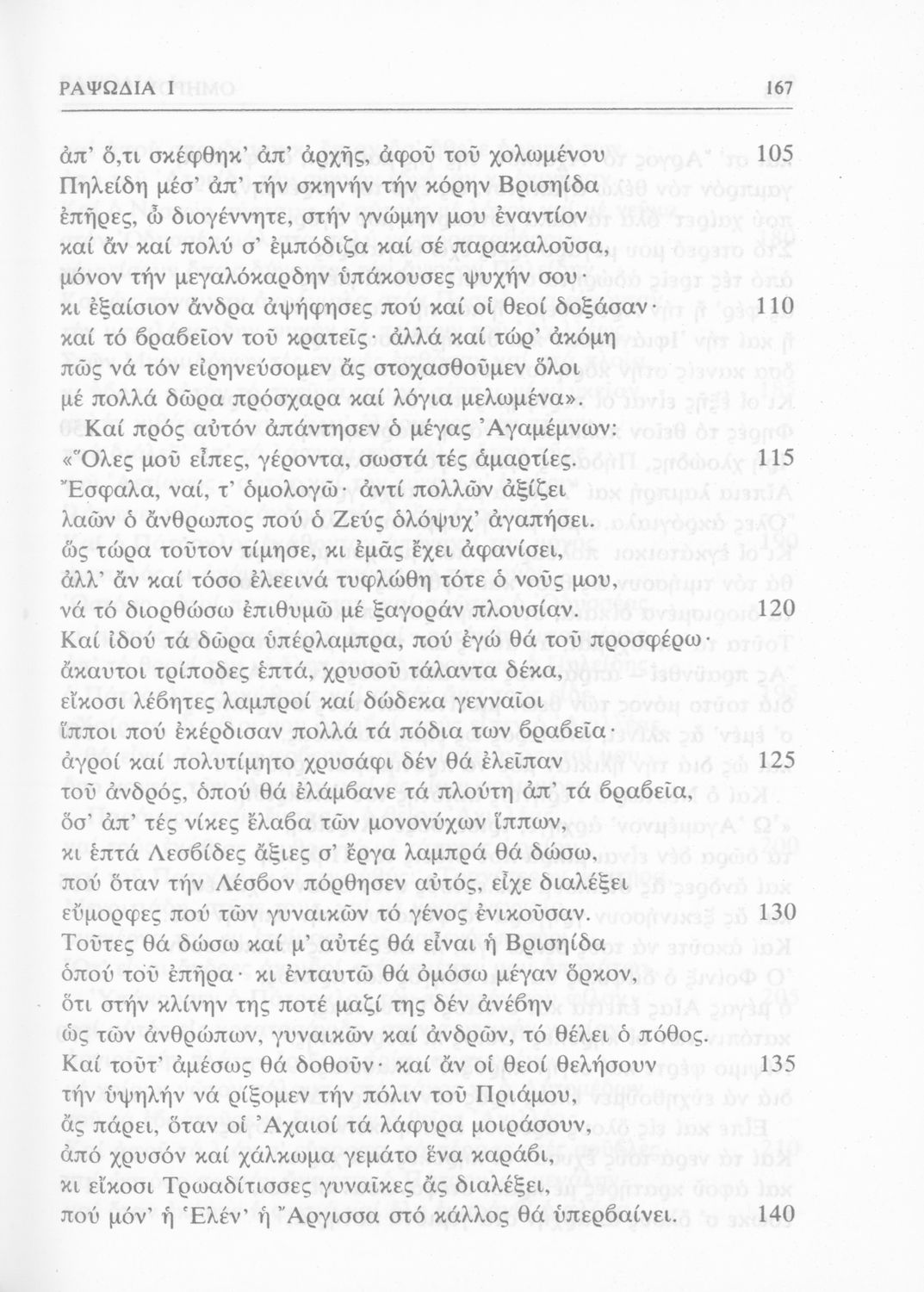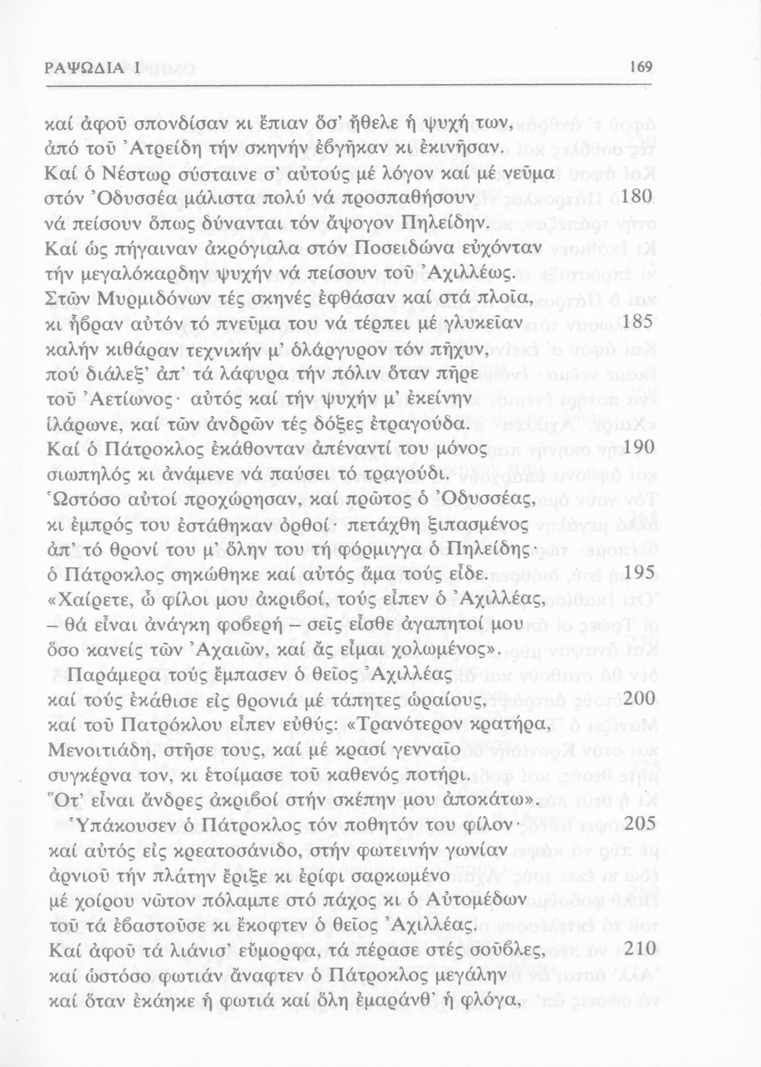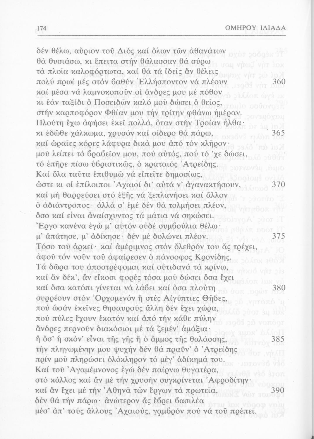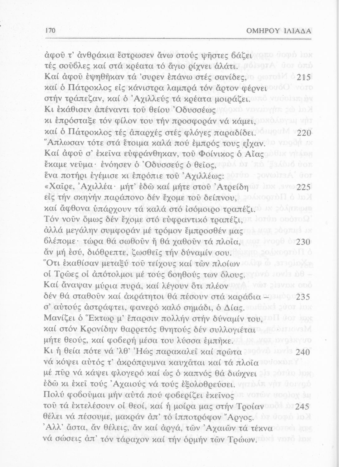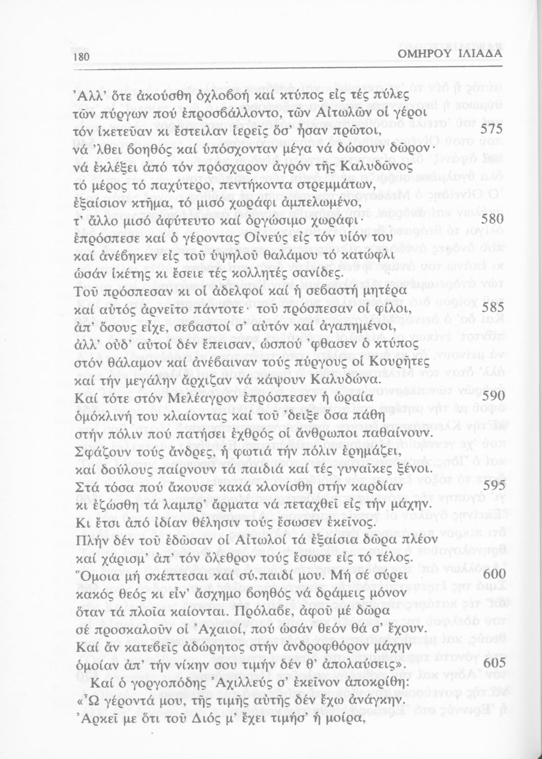Σχολικό εγχειρίδιο της Δευτεροβάθμιας Εκπαίδευσης για το μάθημα των Αρχαίων Ελληνικών. Πρόκειται για το κείμενο της Ιλιάδας μεταφρασμένο, με πραγματολογικές παρατηρήσεις. Στο τέλος περιλαμβάνει λεξιλόγιο.