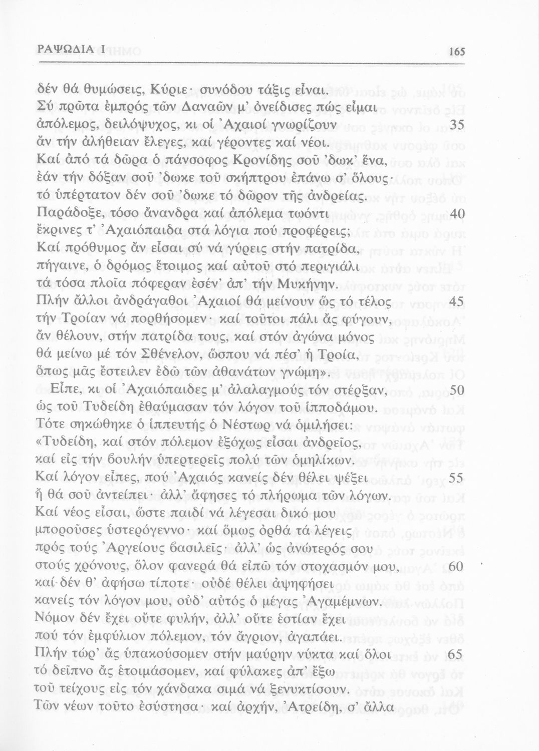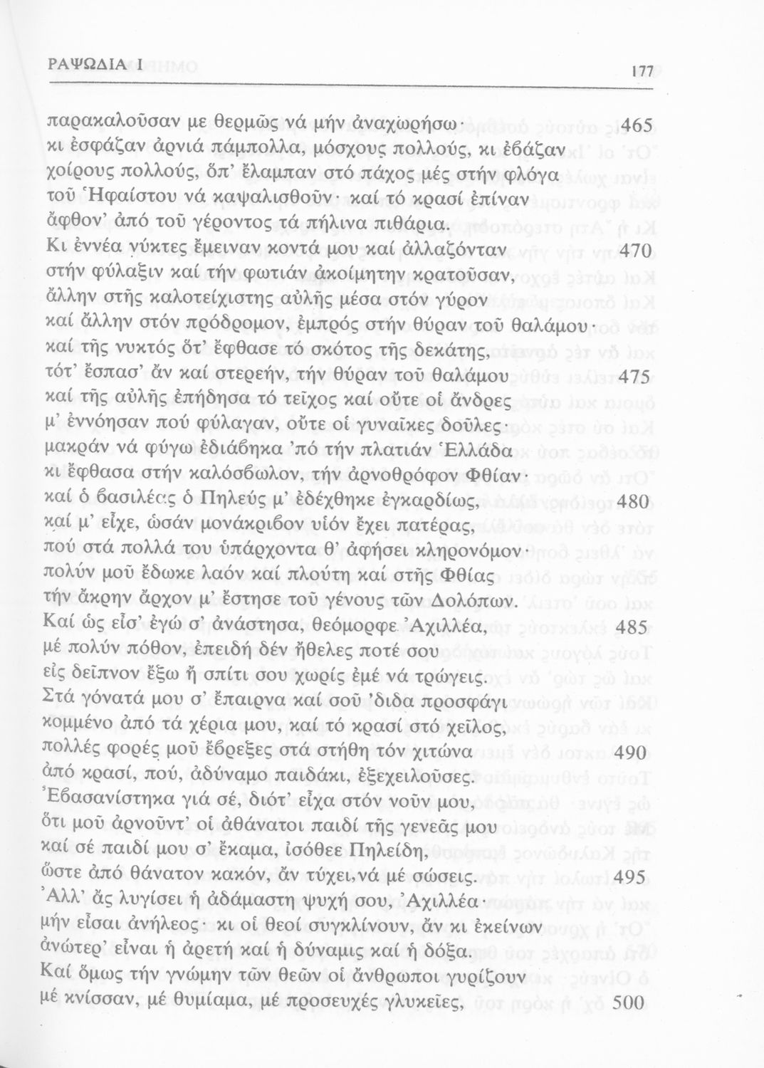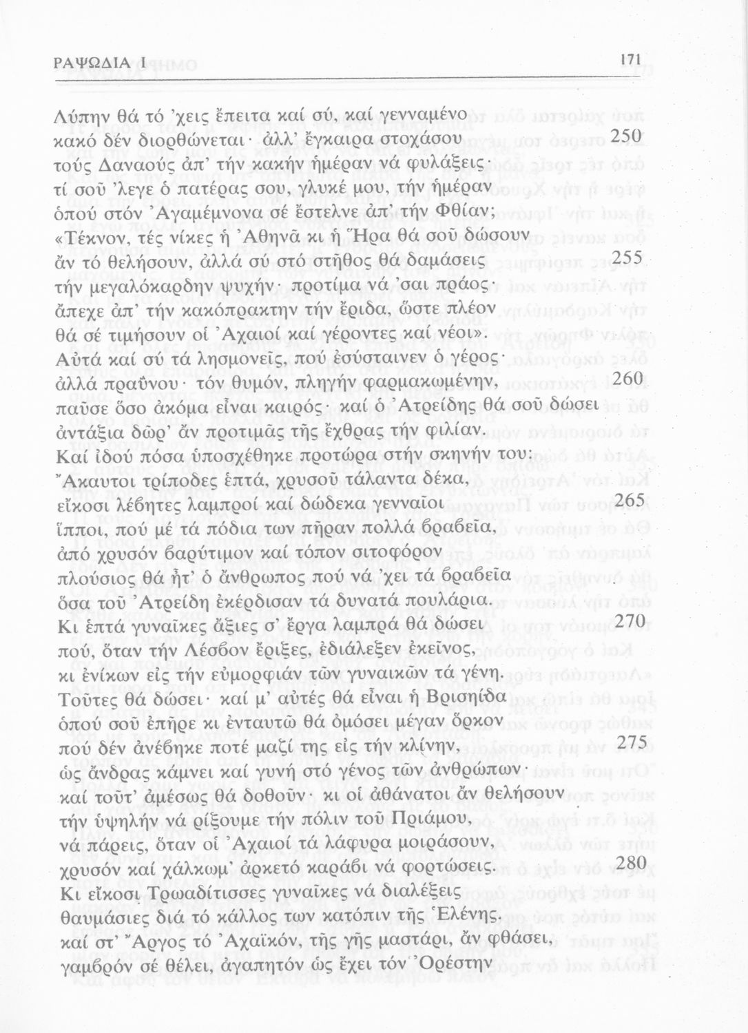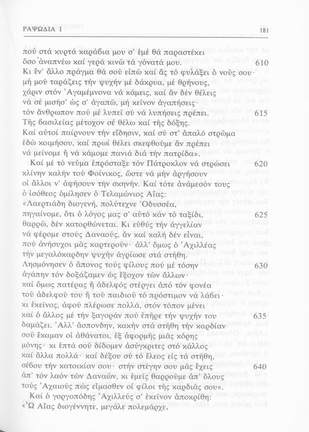 Σχολικό εγχειρίδιο της Δευτεροβάθμιας Εκπαίδευσης για το μάθημα των Αρχαίων Ελληνικών. Πρόκειται για το κείμενο της Ιλιάδας μεταφρασμένο, με πραγματολογικές παρατηρήσεις. Στο τέλος περιλαμβάνει λεξιλόγιο.