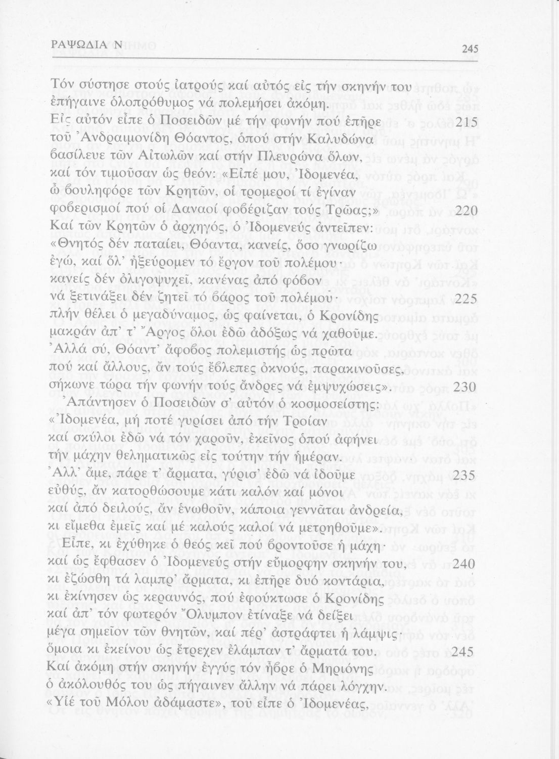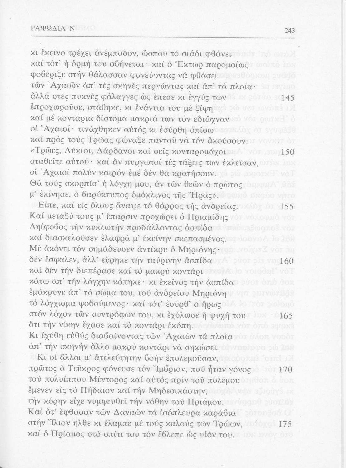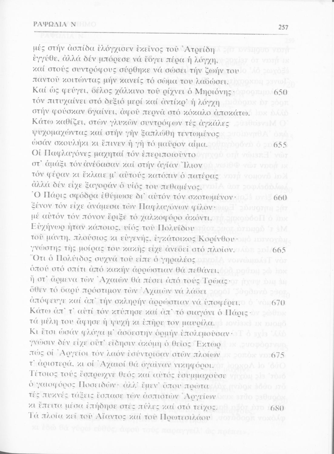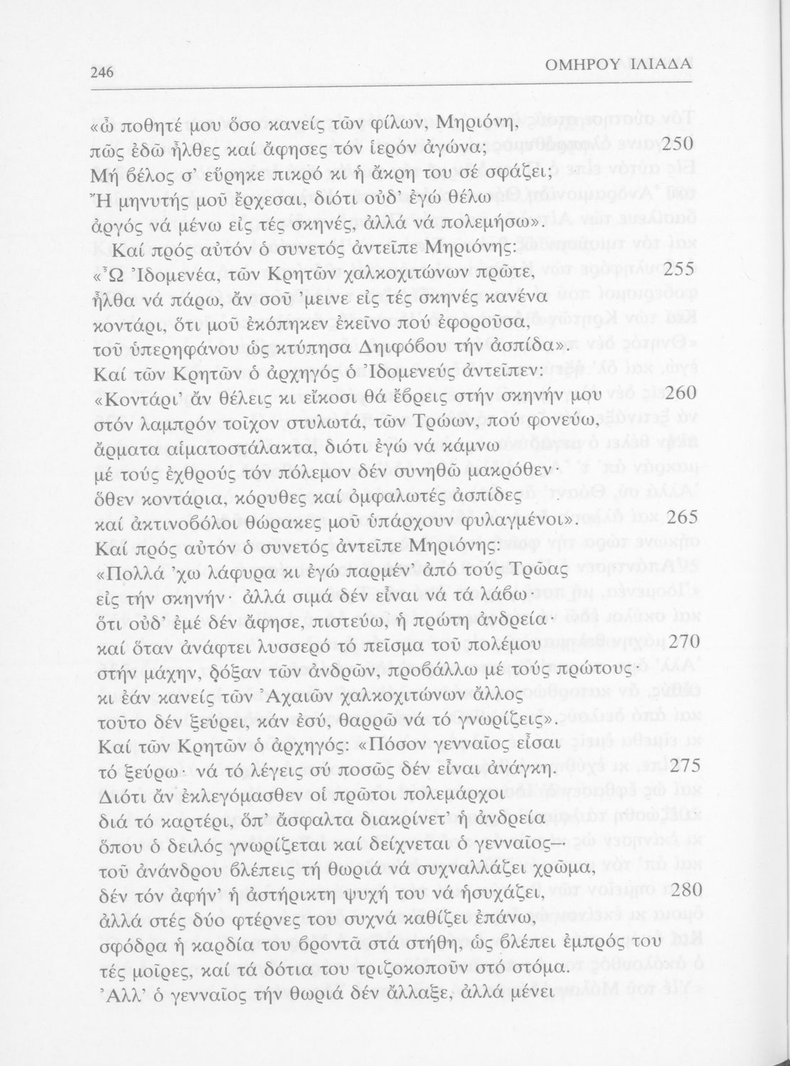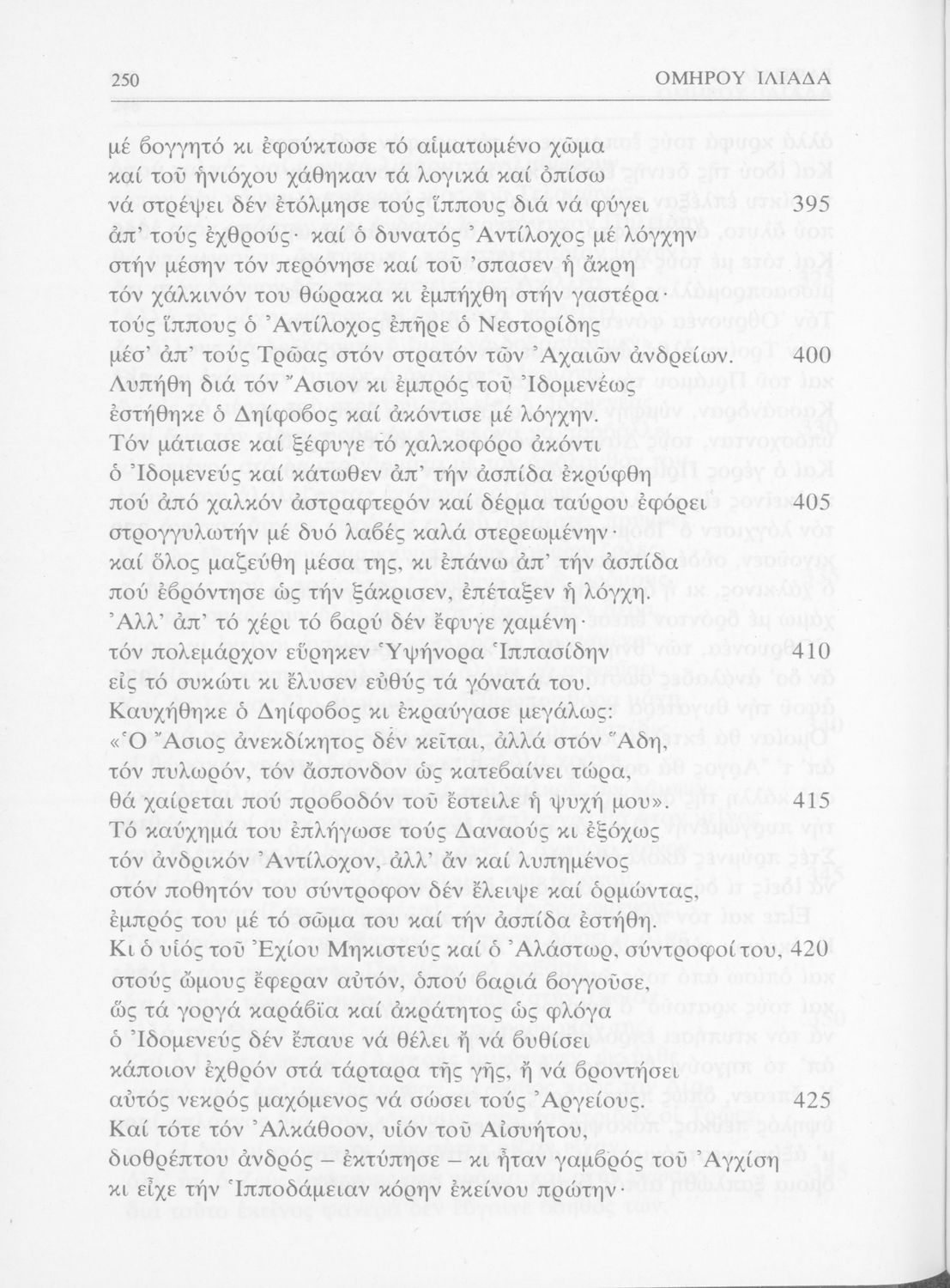 Σχολικό εγχειρίδιο Αρχαίων Ελληνικών. Το βιβλίο περιλαμβάνει εισαγωγή σχετικά με τις διαφορές Οδύσσειας και Ιλιάδας, το περιεχόμενο της Ιλιάδας, το ομηρικό πρόβλημα και την επίδραση των ομηρικών επών στον Ελληνικό και Δυτικό πολιτισμό. Ακολουθεί η Ιλιάδα του Ομήρου σε μετάφραση του Ιάκωβου Πολυλά και σχετικά σχόλια. Η εισαγωγή και τα ερμηνευτικά σχόλια έγιναν από την Ελένη Ι. Κακριδή.