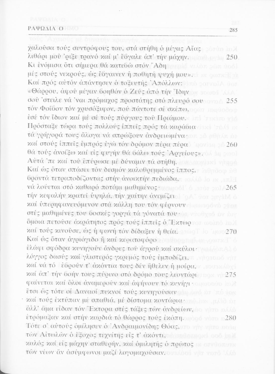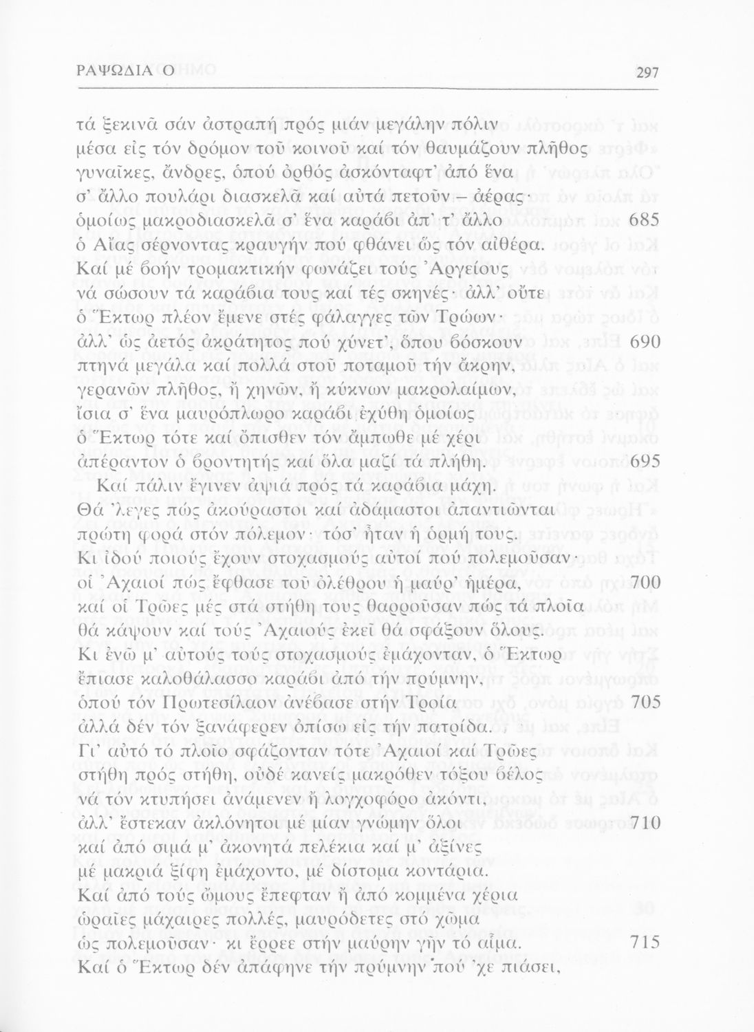 Μαθητικό βοήθημα του Ελληνικού Σχολείου, των Παρθεναγωγείων και του Γυμνασίου για το μάθημα των Αρχαίων Ελληνικών. Περιέχει τις ραψωδίες Ο, Π, Ρ, Σ, Τ, Χ, ψ, Ω από το πρωτότυπο με σχόλια και ερμηνευτικές ...