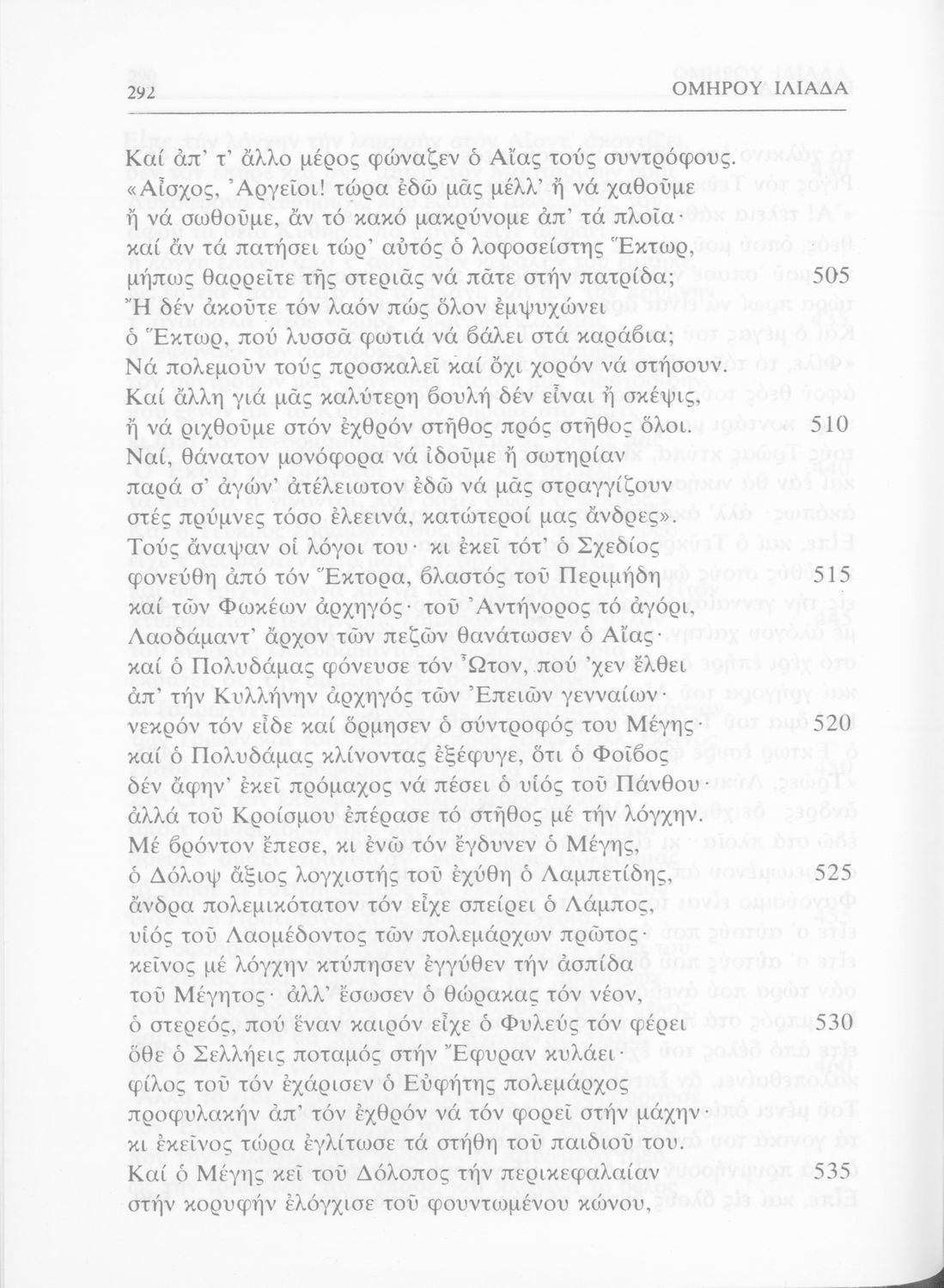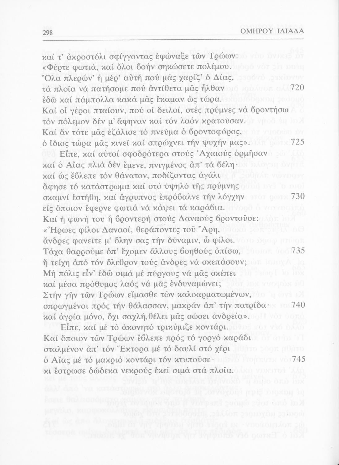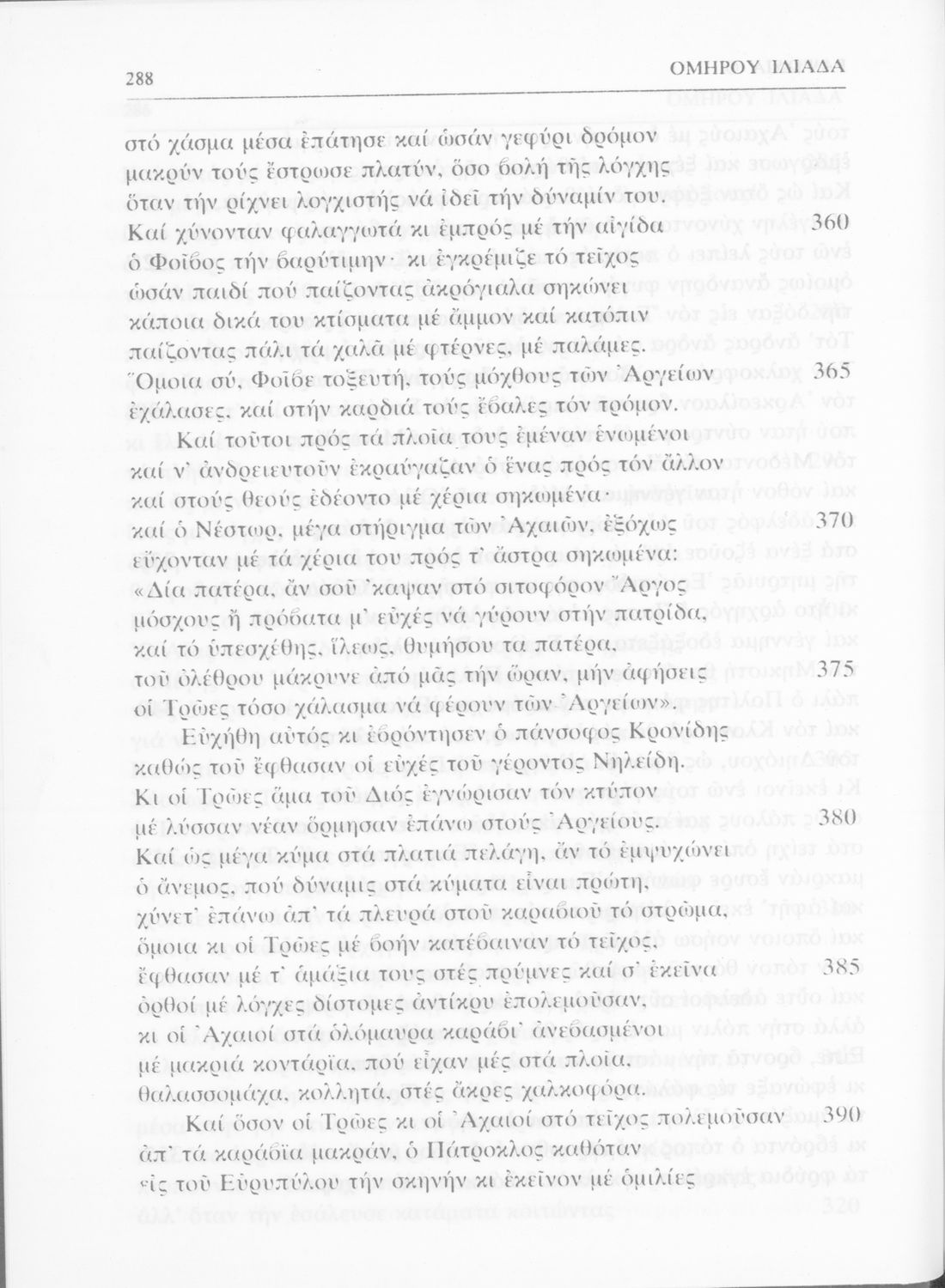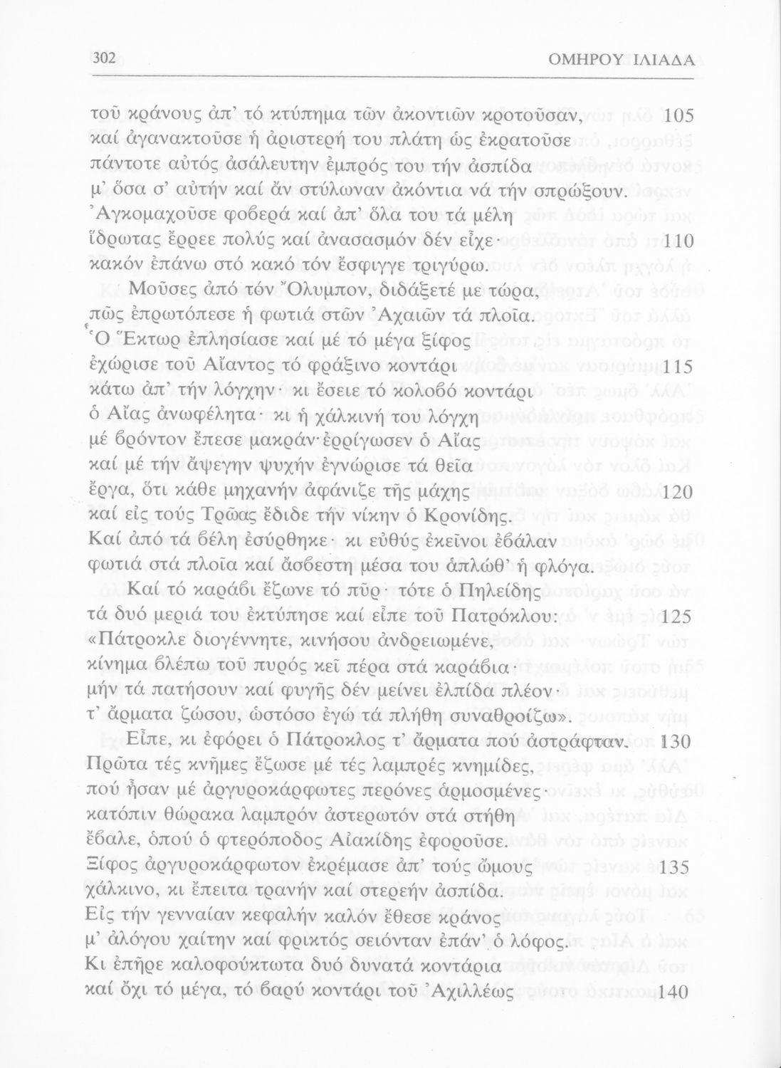Σχολικό εγχειρίδιο της Δευτεροβάθμιας Εκπαίδευσης για το μάθημα των Αρχαίων Ελληνικών. Πρόκειται για το κείμενο της Ιλιάδας μεταφρασμένο, με πραγματολογικές παρατηρήσεις. Στο τέλος περιλαμβάνει λεξιλόγιο.