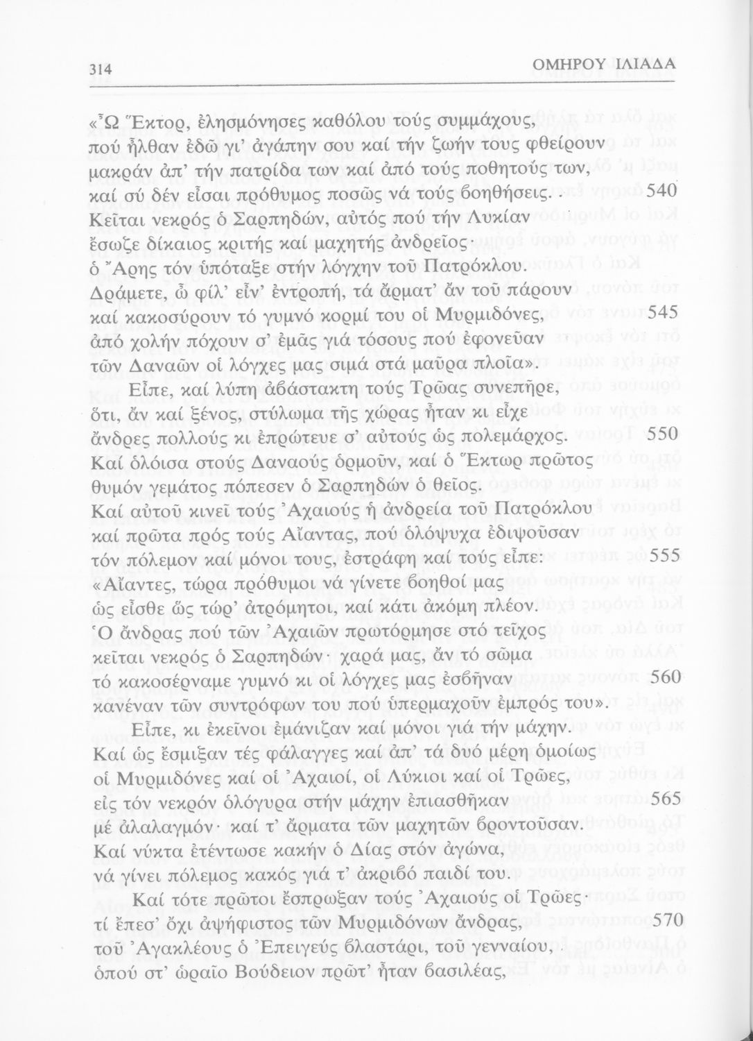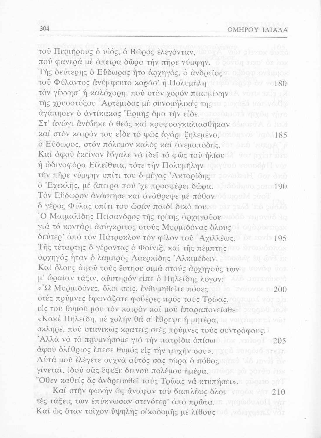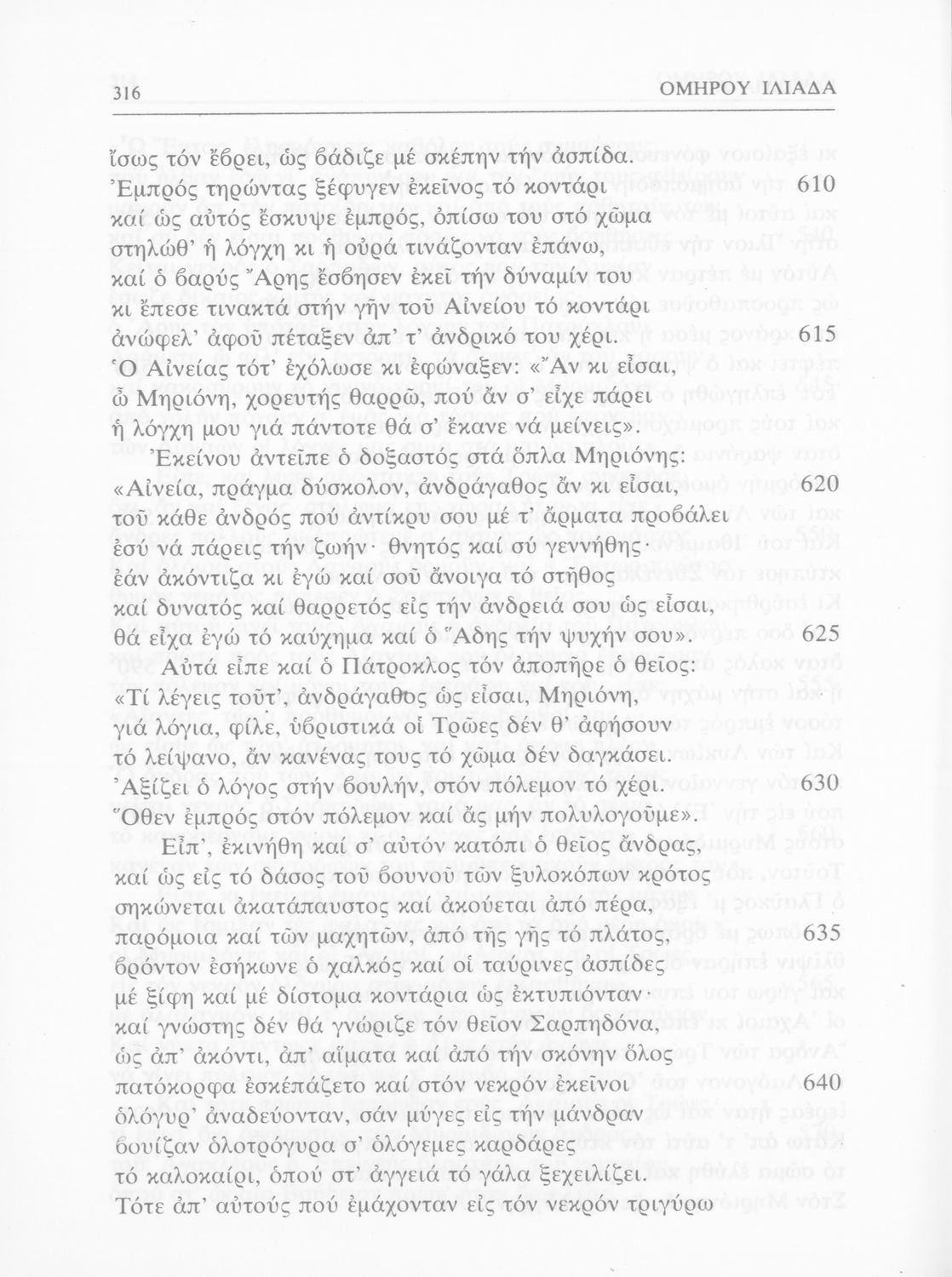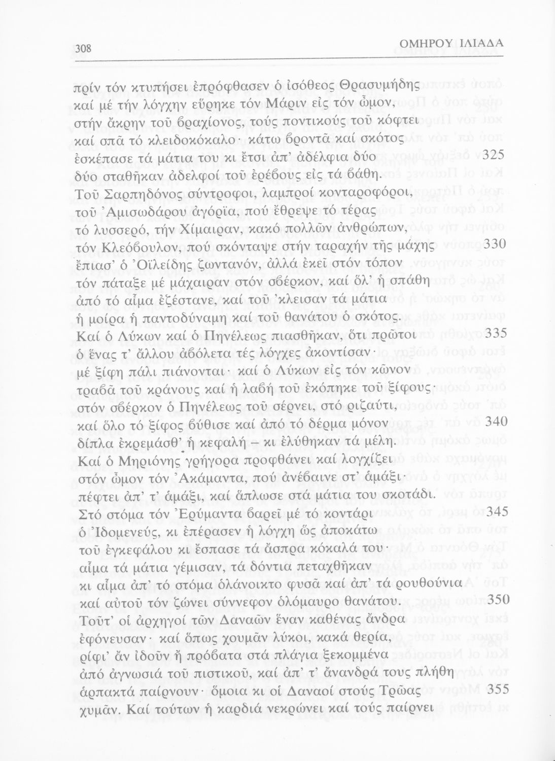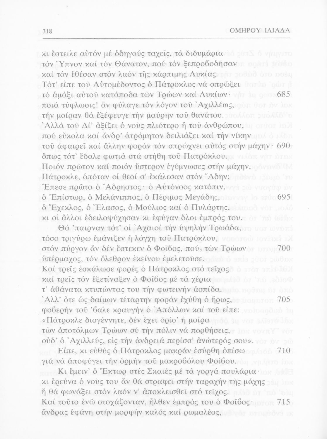 Σχολικό εγχειρίδιο Αρχαίων Ελληνικών. Το βιβλίο περιλαμβάνει εισαγωγή σχετικά με τις διαφορές Οδύσσειας και Ιλιάδας, το περιεχόμενο της Ιλιάδας, το ομηρικό πρόβλημα και την επίδραση των ομηρικών επών στον Ελληνικό και Δυτικό πολιτισμό. Ακολουθεί η Ιλιάδα του Ομήρου σε μετάφραση του Ιάκωβου Πολυλά και σχετικά σχόλια. Η εισαγωγή και τα ερμηνευτικά σχόλια έγιναν από την Ελένη Ι. Κακριδή.