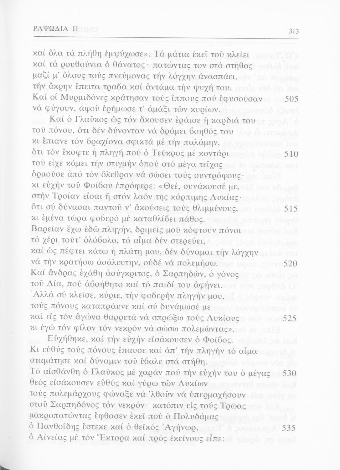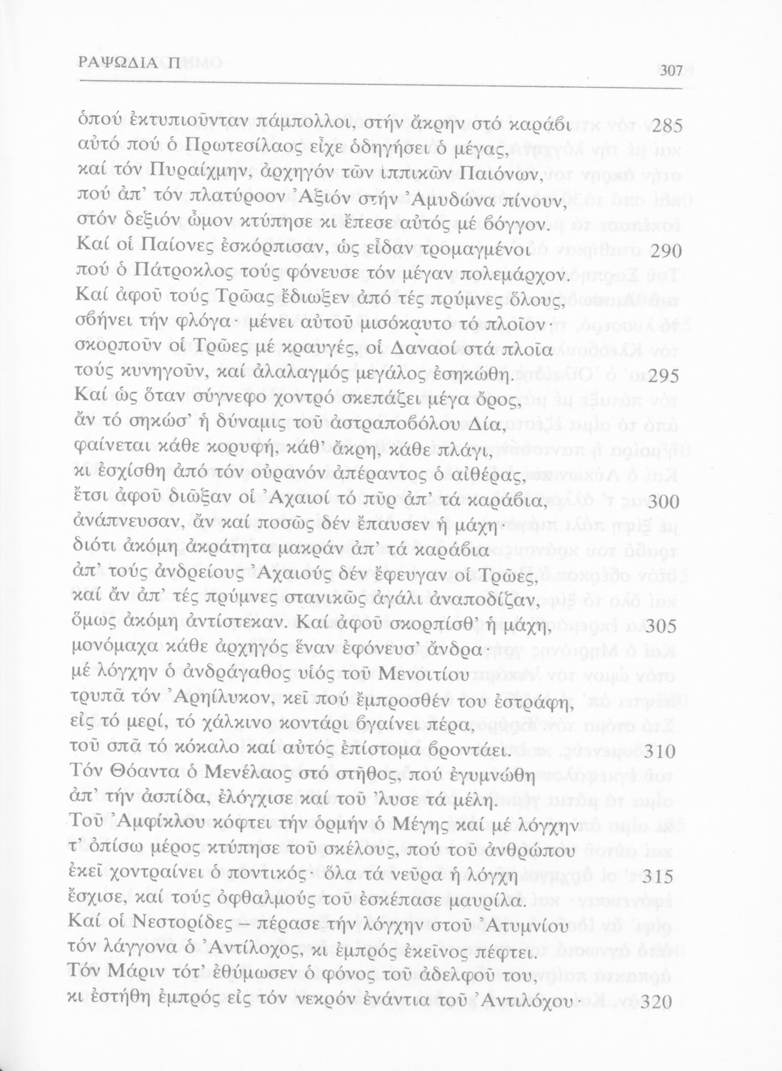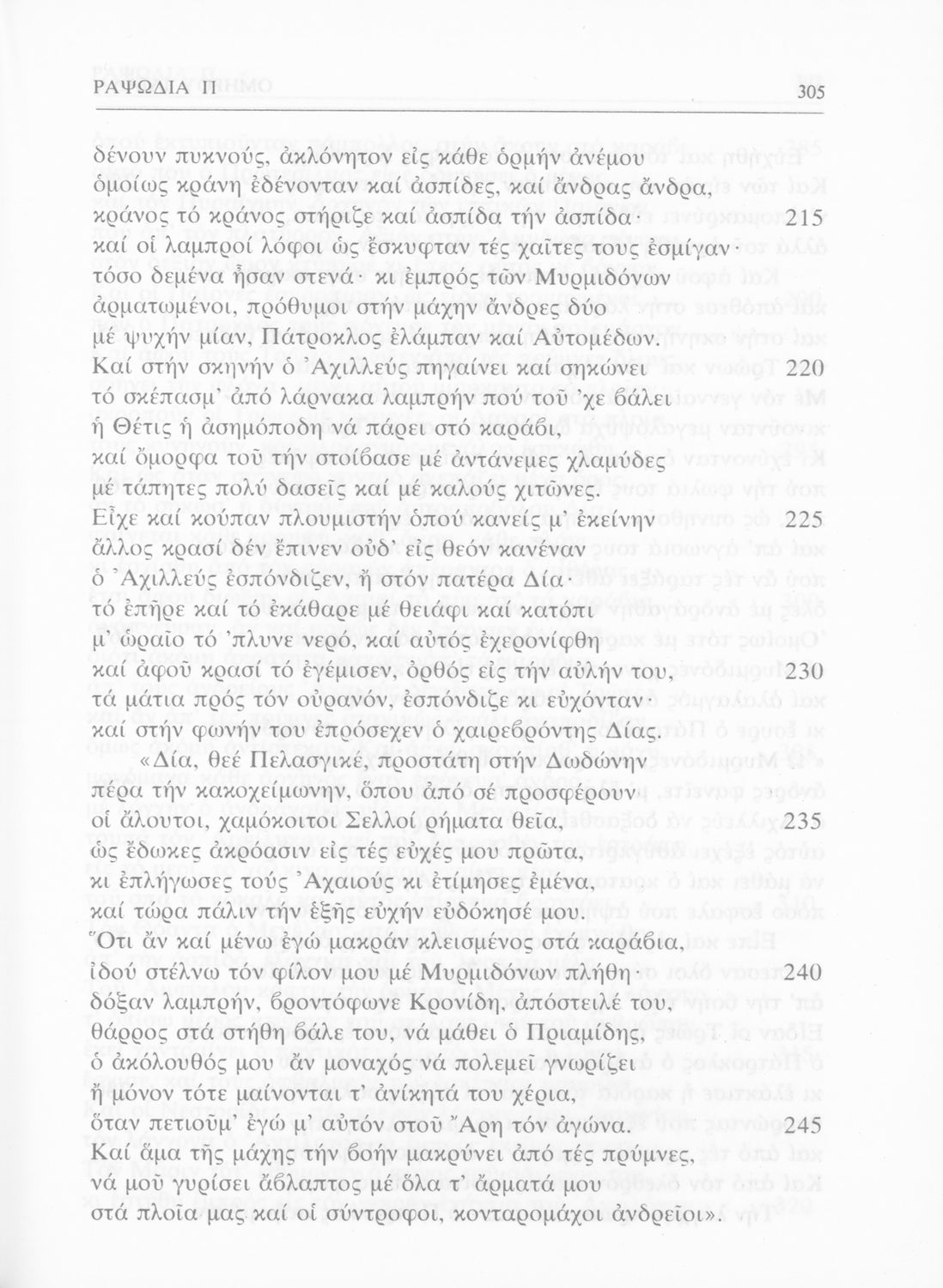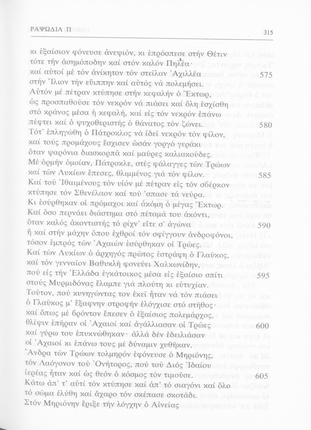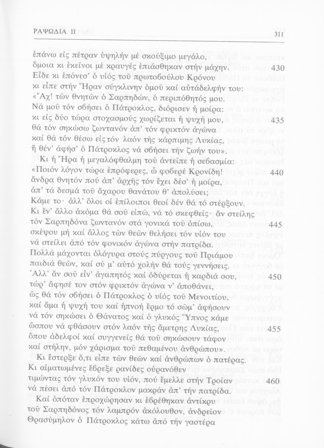 Σχολικό εγχειρίδιο Αρχαίων Ελληνικών. Το βιβλίο περιλαμβάνει εισαγωγή σχετικά με τις διαφορές Οδύσσειας και Ιλιάδας, το περιεχόμενο της Ιλιάδας, το ομηρικό πρόβλημα και την επίδραση των ομηρικών επών στον Ελληνικό και Δυτικό πολιτισμό. Ακολουθεί η Ιλιάδα του Ομήρου σε μετάφραση του Ιάκωβου Πολυλά και σχετικά σχόλια. Η εισαγωγή και τα ερμηνευτικά σχόλια έγιναν από την Ελένη Ι. Κακριδή.