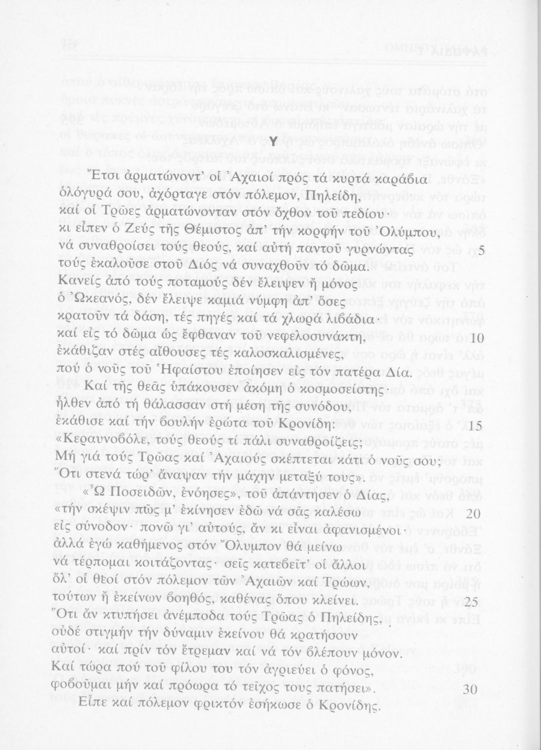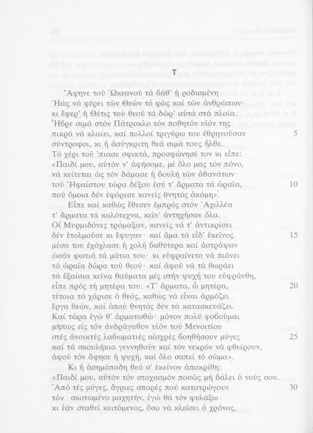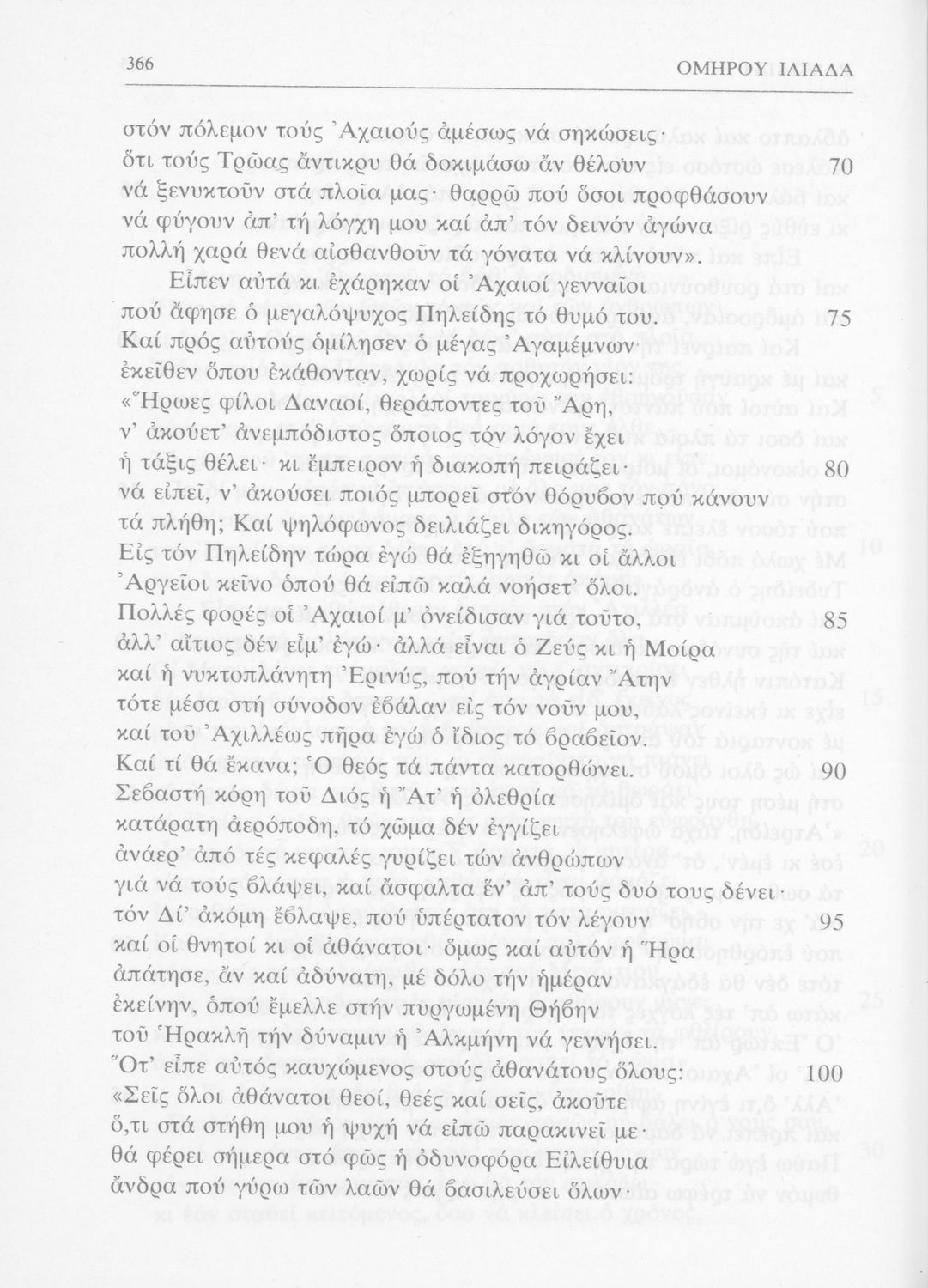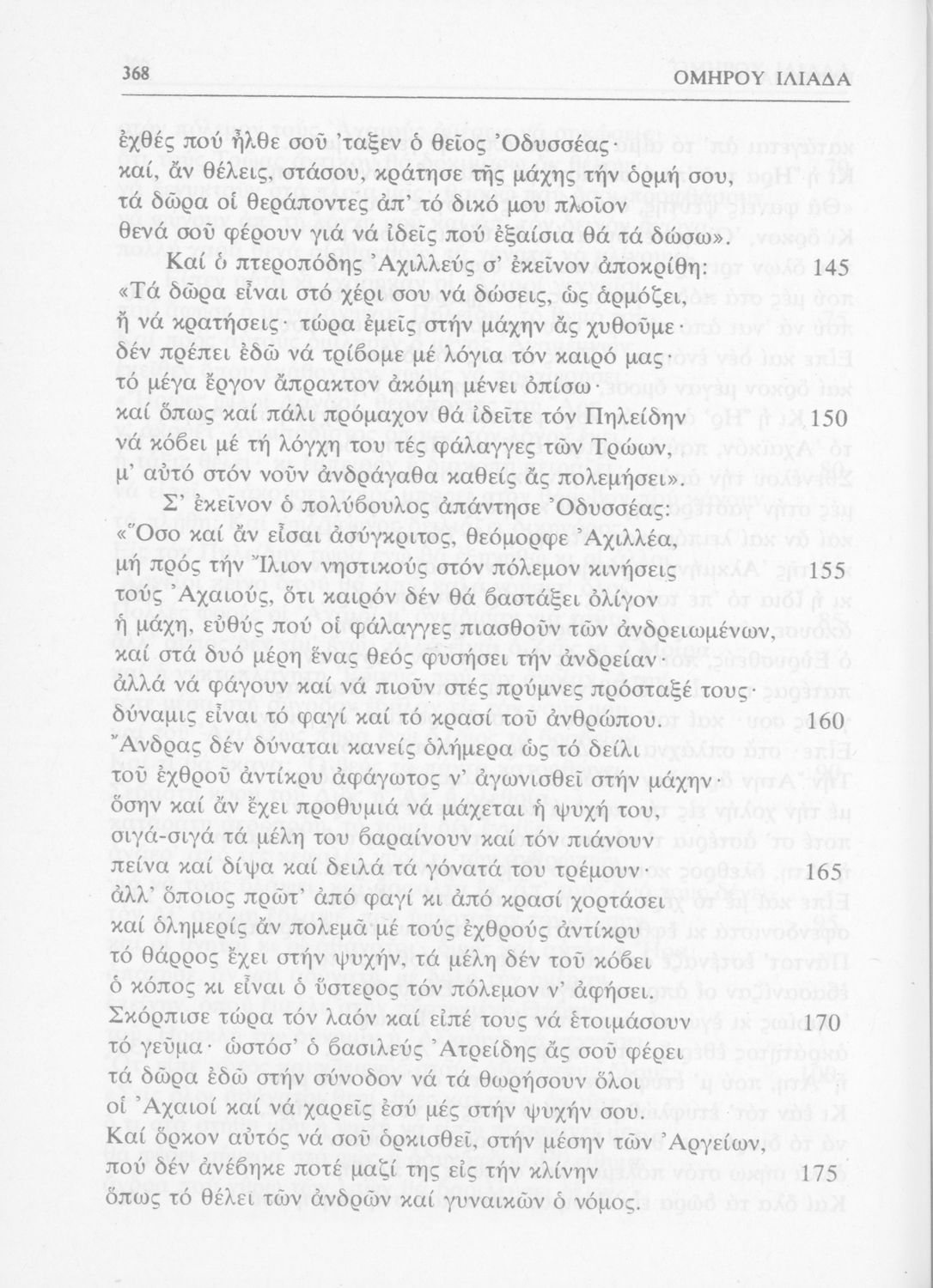 Σχολικό εγχειρίδιο της Δευτεροβάθμιας Εκπαίδευσης για το μάθημα των Αρχαίων Ελληνικών. Πρόκειται για το κείμενο της Ιλιάδας μεταφρασμένο, με πραγματολογικές παρατηρήσεις. Στο τέλος περιλαμβάνει λεξιλόγιο.