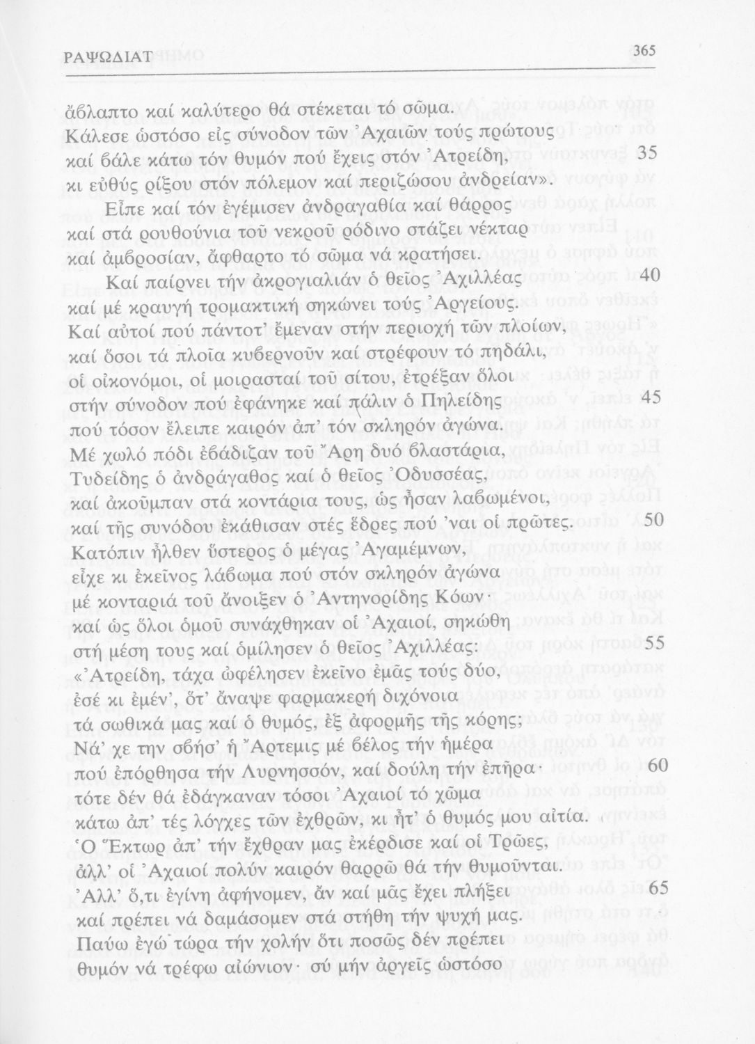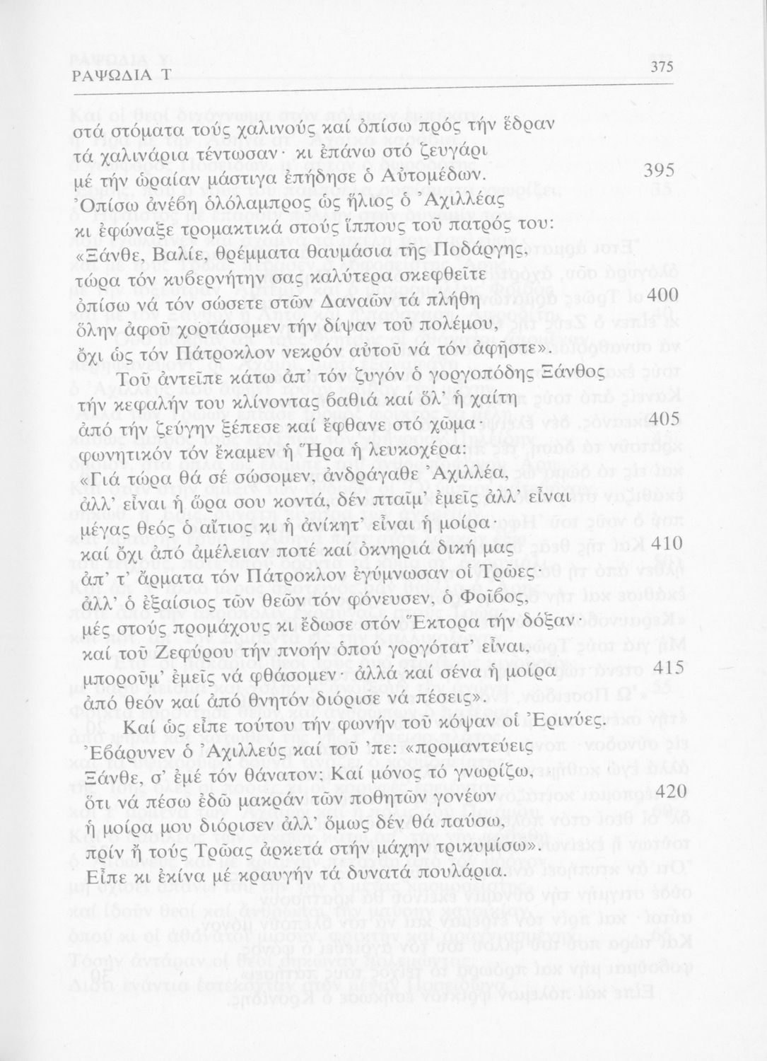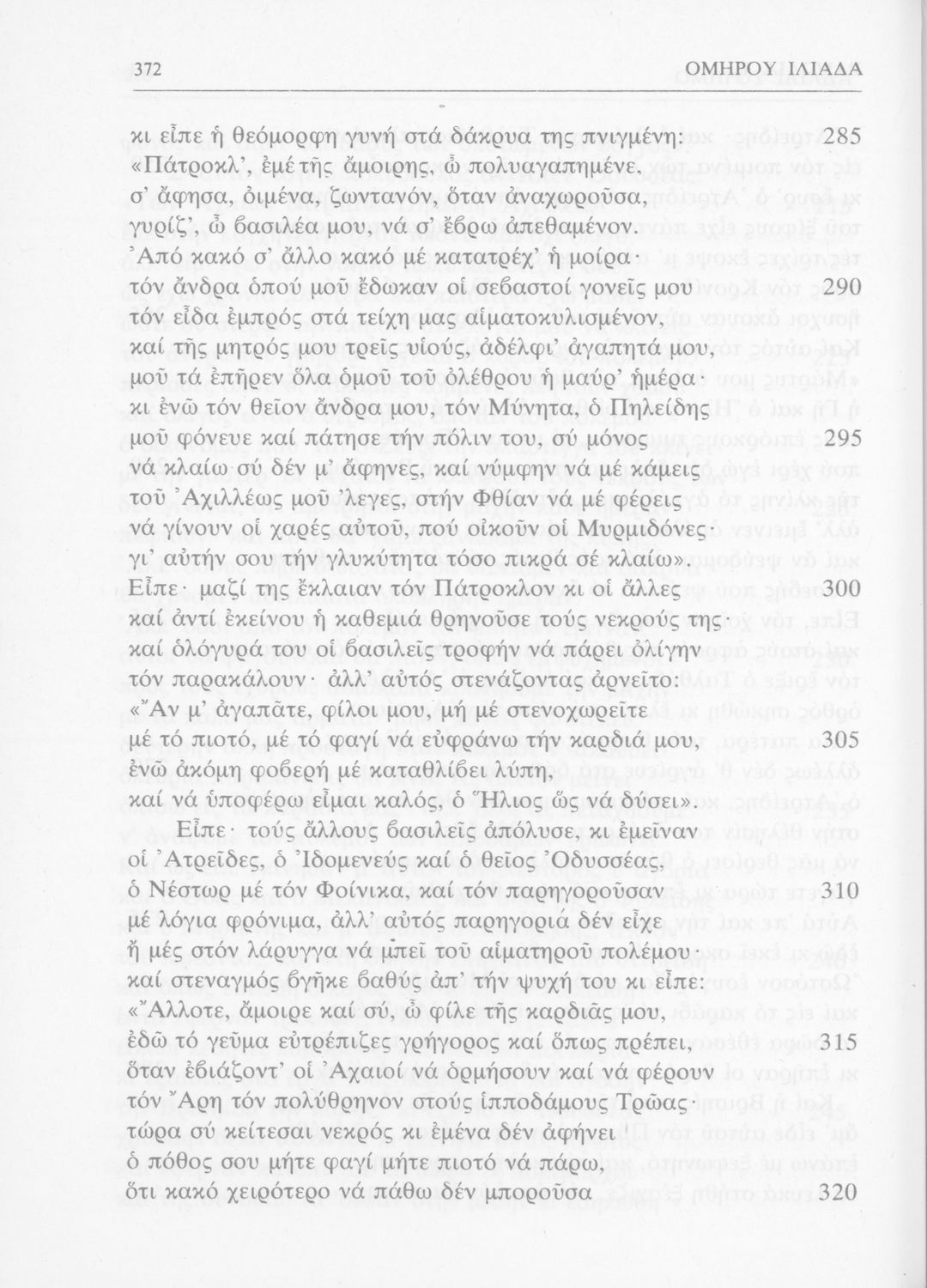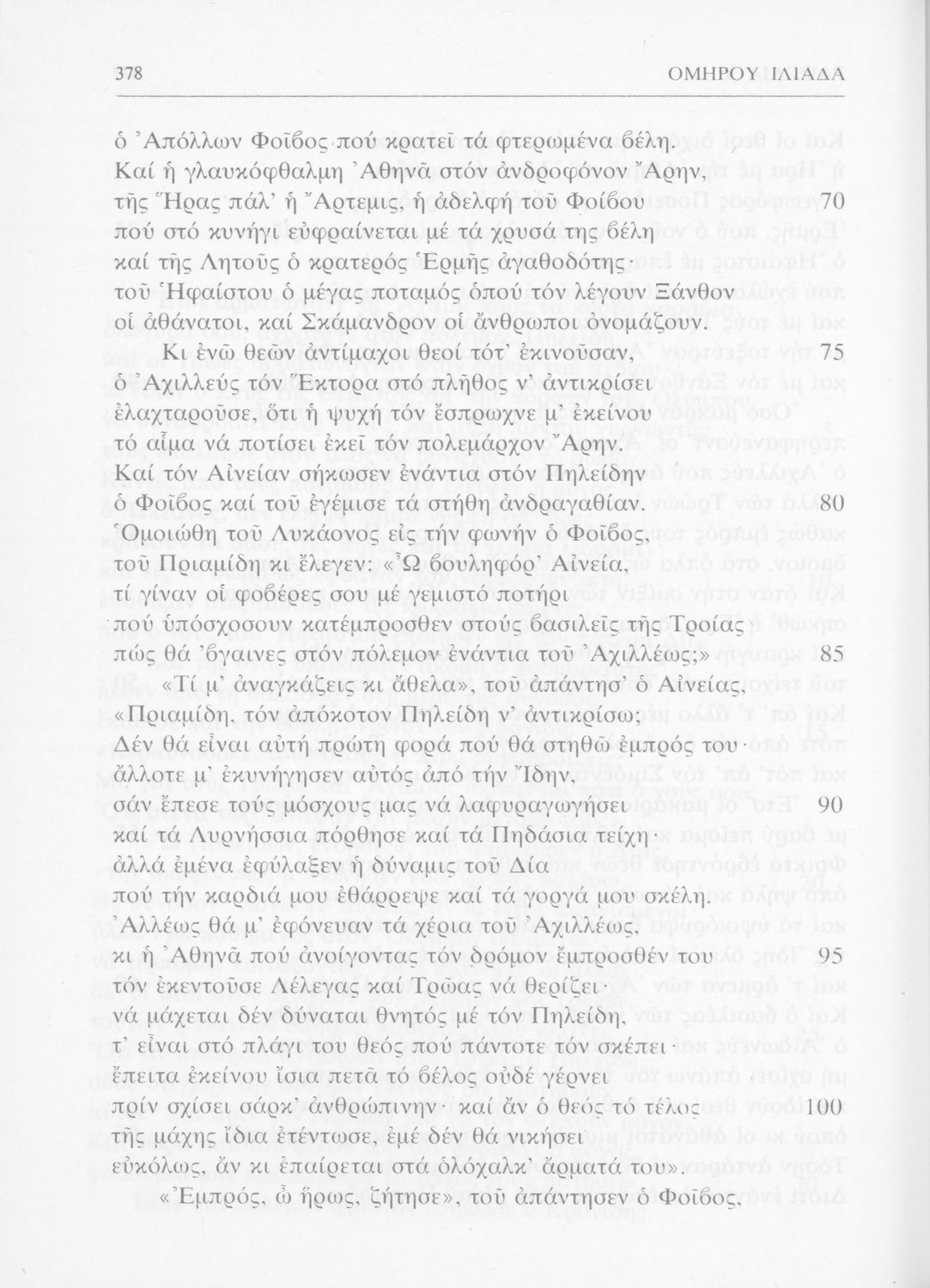 Σχολικό εγχειρίδιο της Δευτεροβάθμιας Εκπαίδευσης για το μάθημα των Αρχαίων Ελληνικών. Πρόκειται για το κείμενο της Ιλιάδας μεταφρασμένο, με πραγματολογικές παρατηρήσεις. Στο τέλος περιλαμβάνει λεξιλόγιο.