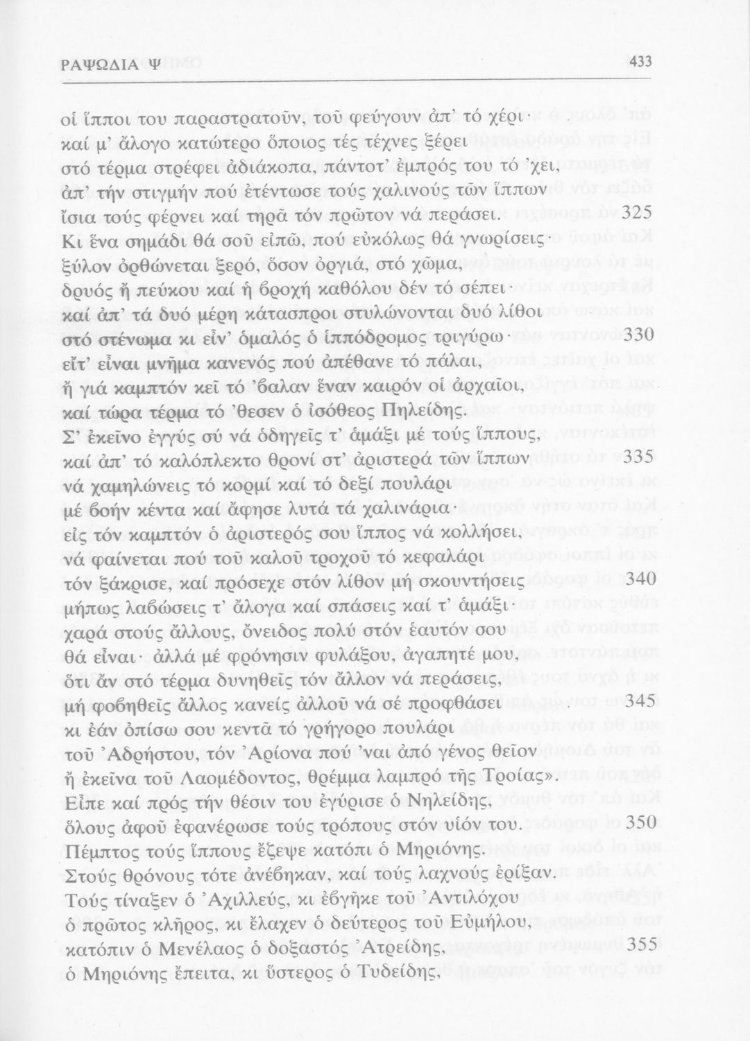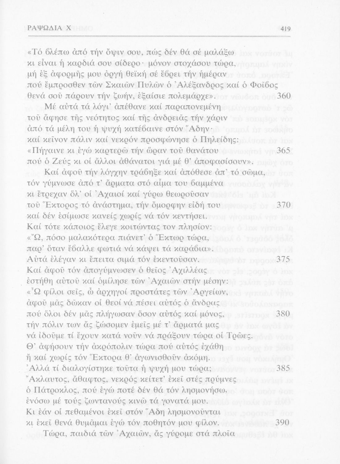 Μαθητικό βοήθημα του Ελληνικού Σχολείου, των Παρθεναγωγείων και του Γυμνασίου για το μάθημα των Αρχαίων Ελληνικών. Περιέχει τις ραψωδίες Ο, Π, Ρ, Σ, Τ, Χ, ψ, Ω από το πρωτότυπο με σχόλια και ερμηνευτικές ...