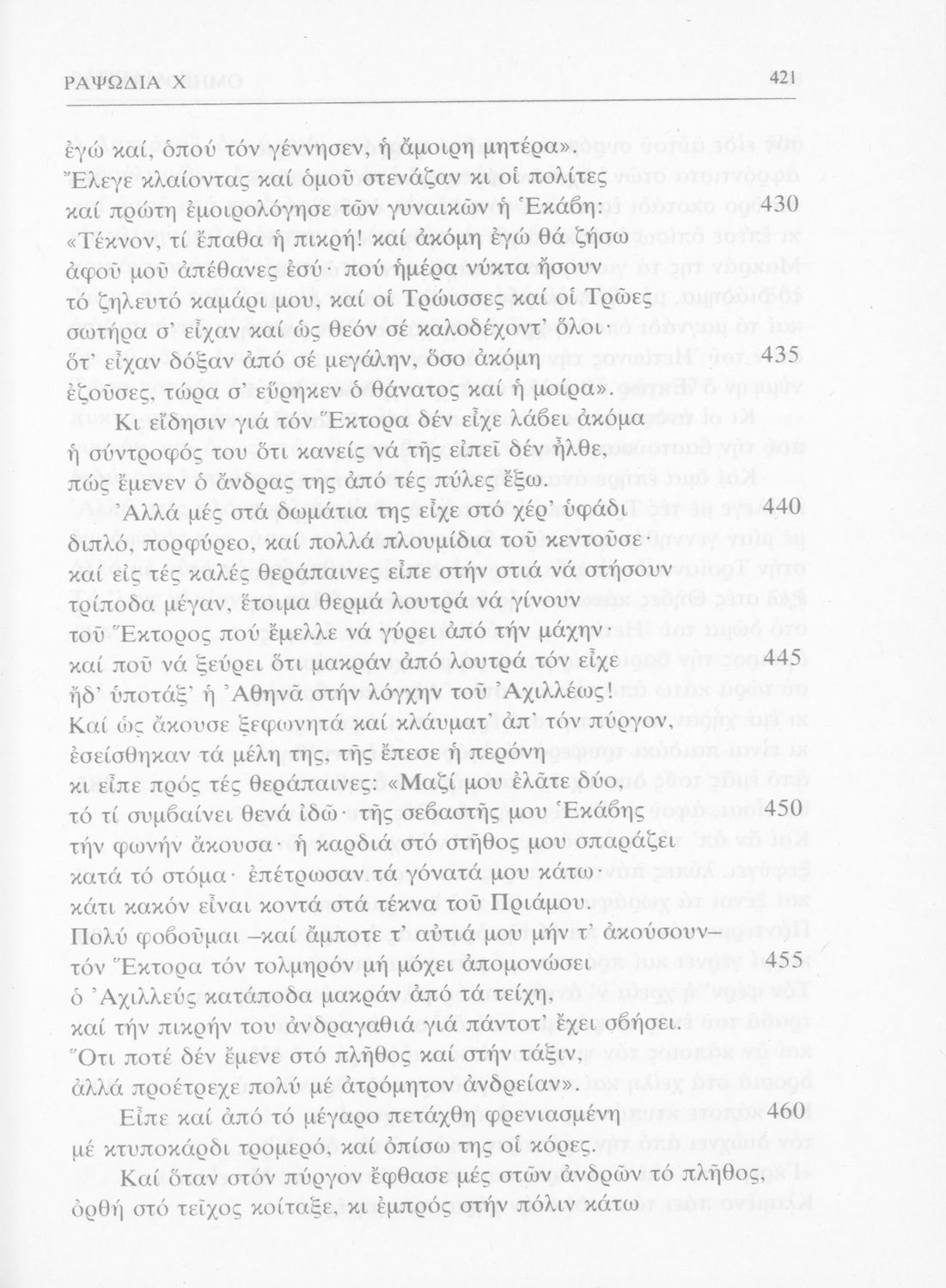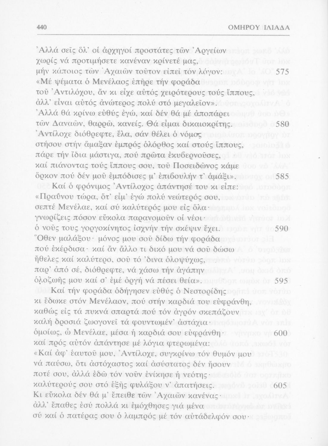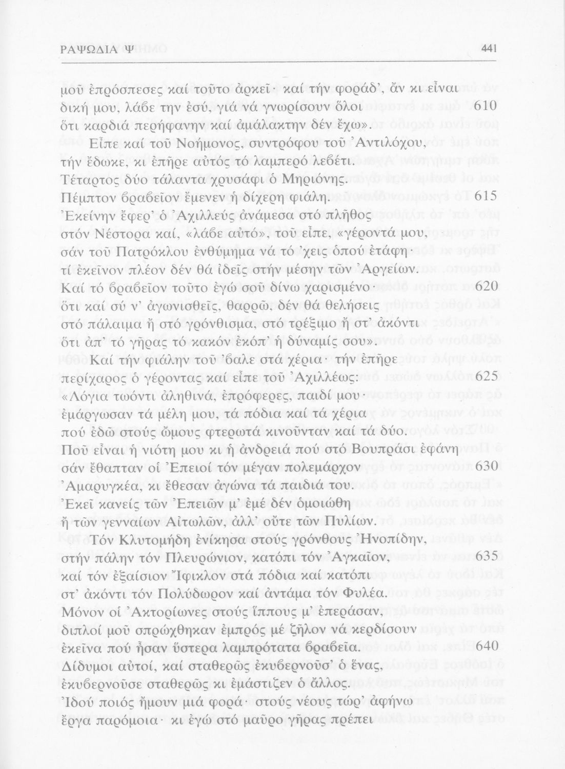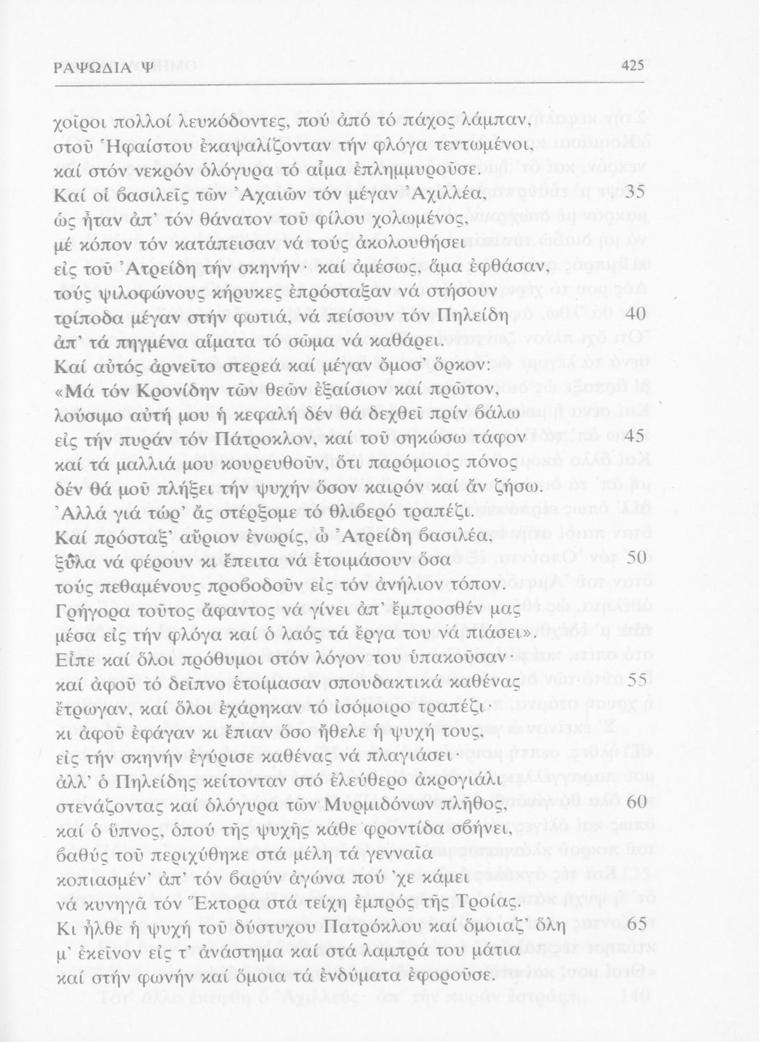 Σχολικό εγχειρίδιο της Δευτεροβάθμιας Εκπαίδευσης για το μάθημα των Αρχαίων Ελληνικών. Πρόκειται για το κείμενο της Ιλιάδας μεταφρασμένο, με πραγματολογικές παρατηρήσεις. Στο τέλος περιλαμβάνει λεξιλόγιο.