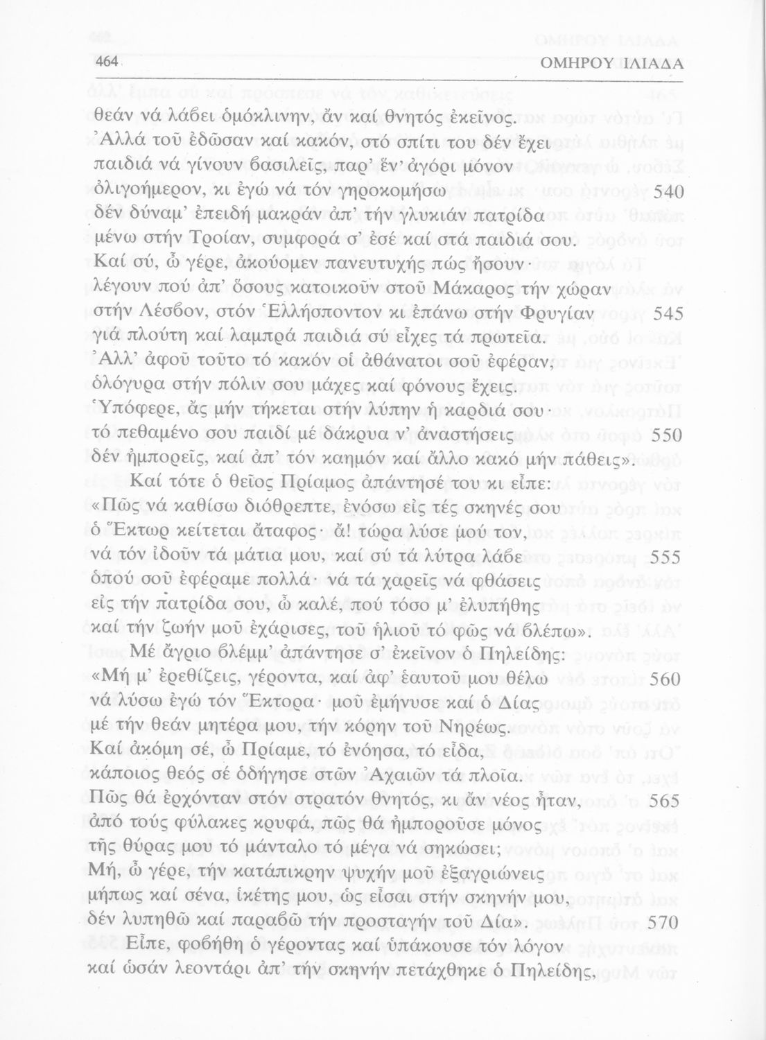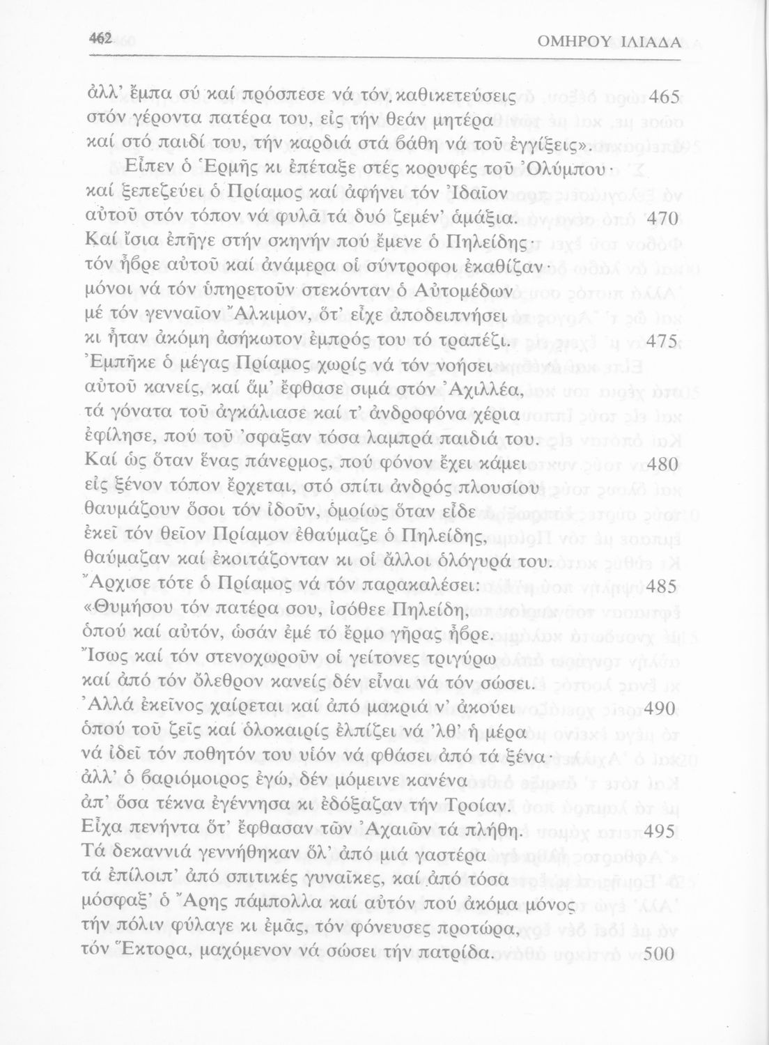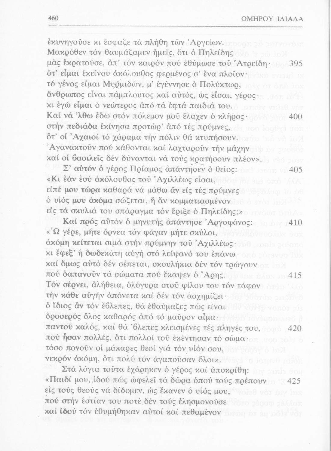 Σχολικό εγχειρίδιο της Δευτεροβάθμιας Εκπαίδευσης για το μάθημα των Αρχαίων Ελληνικών. Πρόκειται για το κείμενο της Ιλιάδας μεταφρασμένο, με πραγματολογικές παρατηρήσεις. Στο τέλος περιλαμβάνει λεξιλόγιο.