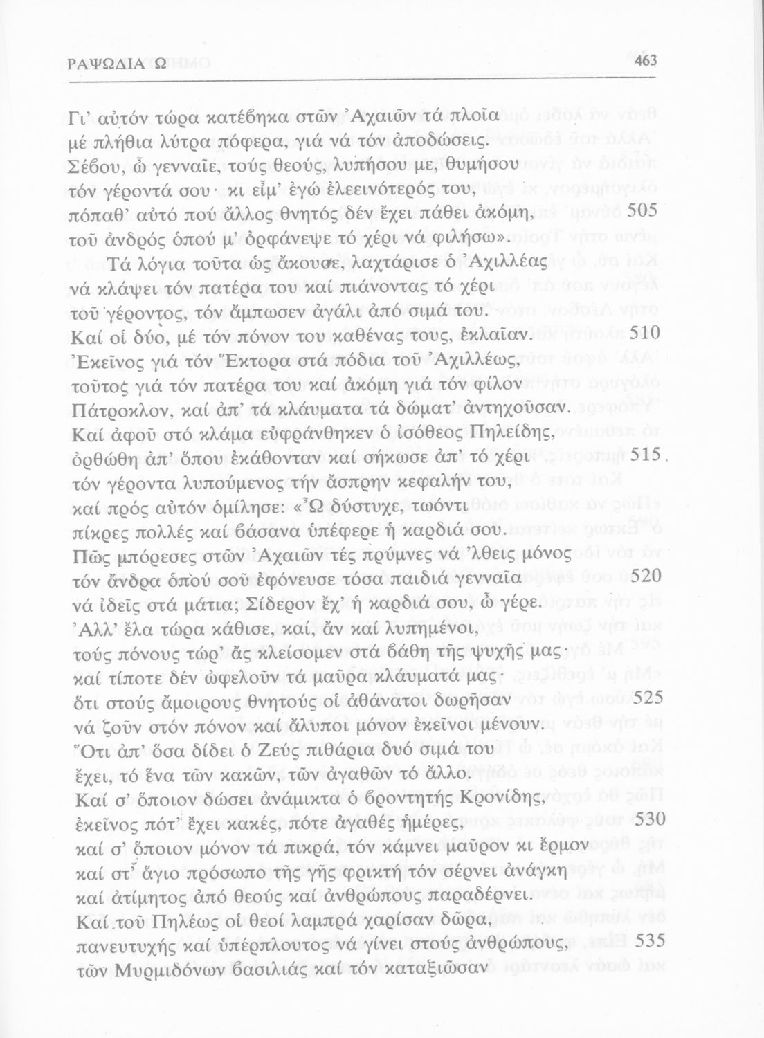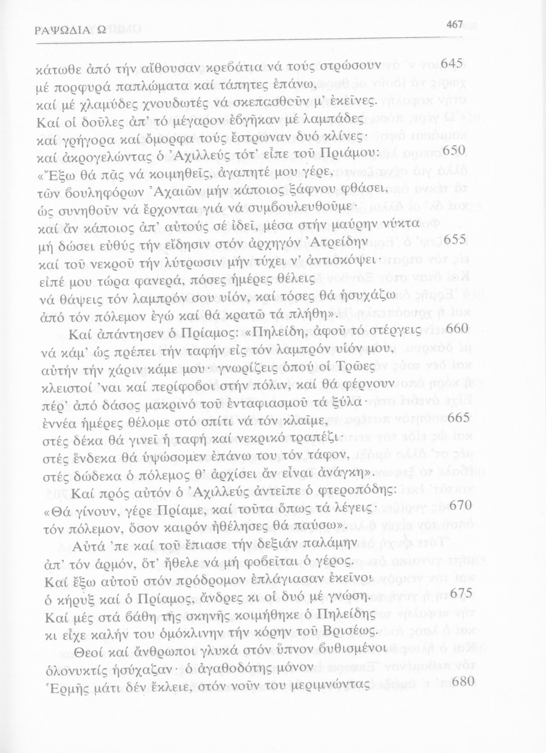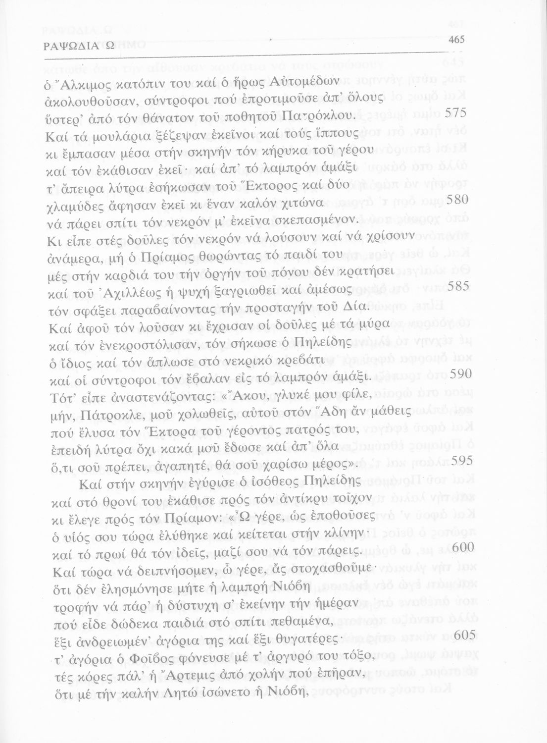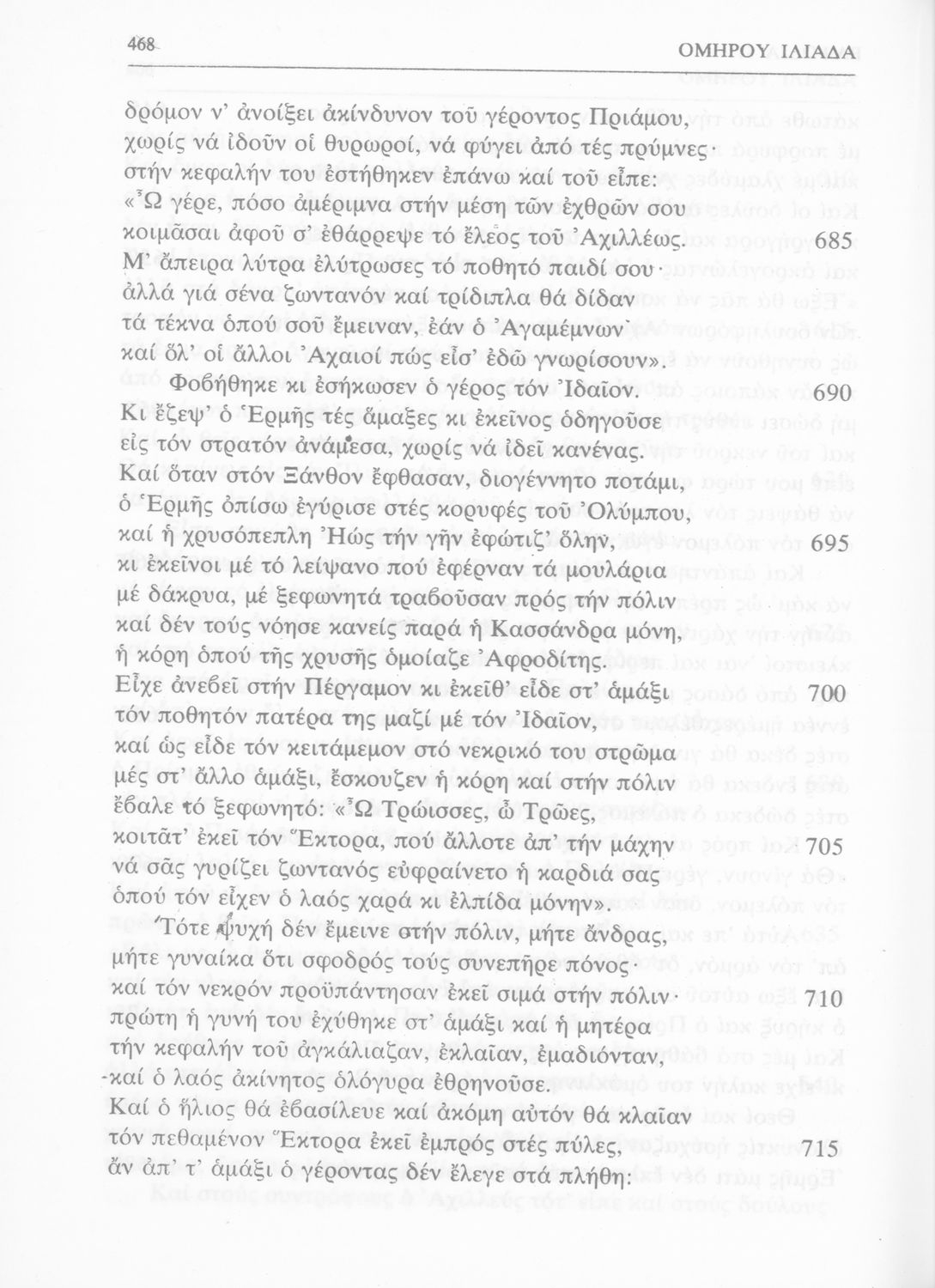 Σχολικό εγχειρίδιο της Δευτεροβάθμιας Εκπαίδευσης για το μάθημα των Αρχαίων Ελληνικών. Πρόκειται για το κείμενο της Ιλιάδας μεταφρασμένο, με πραγματολογικές παρατηρήσεις. Στο τέλος περιλαμβάνει λεξιλόγιο.