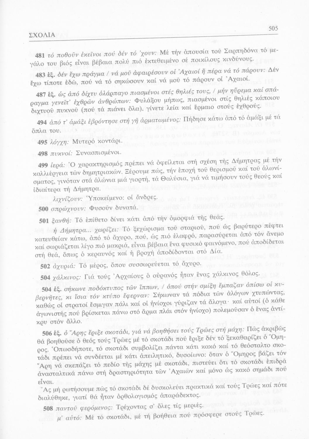 Σχολικό εγχειρίδιο της Δευτεροβάθμιας Εκπαίδευσης για το μάθημα των Αρχαίων Ελληνικών. Πρόκειται για το κείμενο της Ιλιάδας μεταφρασμένο, με πραγματολογικές παρατηρήσεις. Στο τέλος περιλαμβάνει λεξιλόγιο.