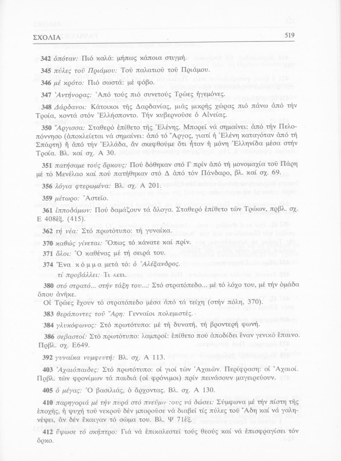 Σχολικό εγχειρίδιο της Δευτεροβάθμιας Εκπαίδευσης για το μάθημα των Αρχαίων Ελληνικών. Πρόκειται για το κείμενο της Ιλιάδας μεταφρασμένο, με πραγματολογικές παρατηρήσεις. Στο τέλος περιλαμβάνει λεξιλόγιο.