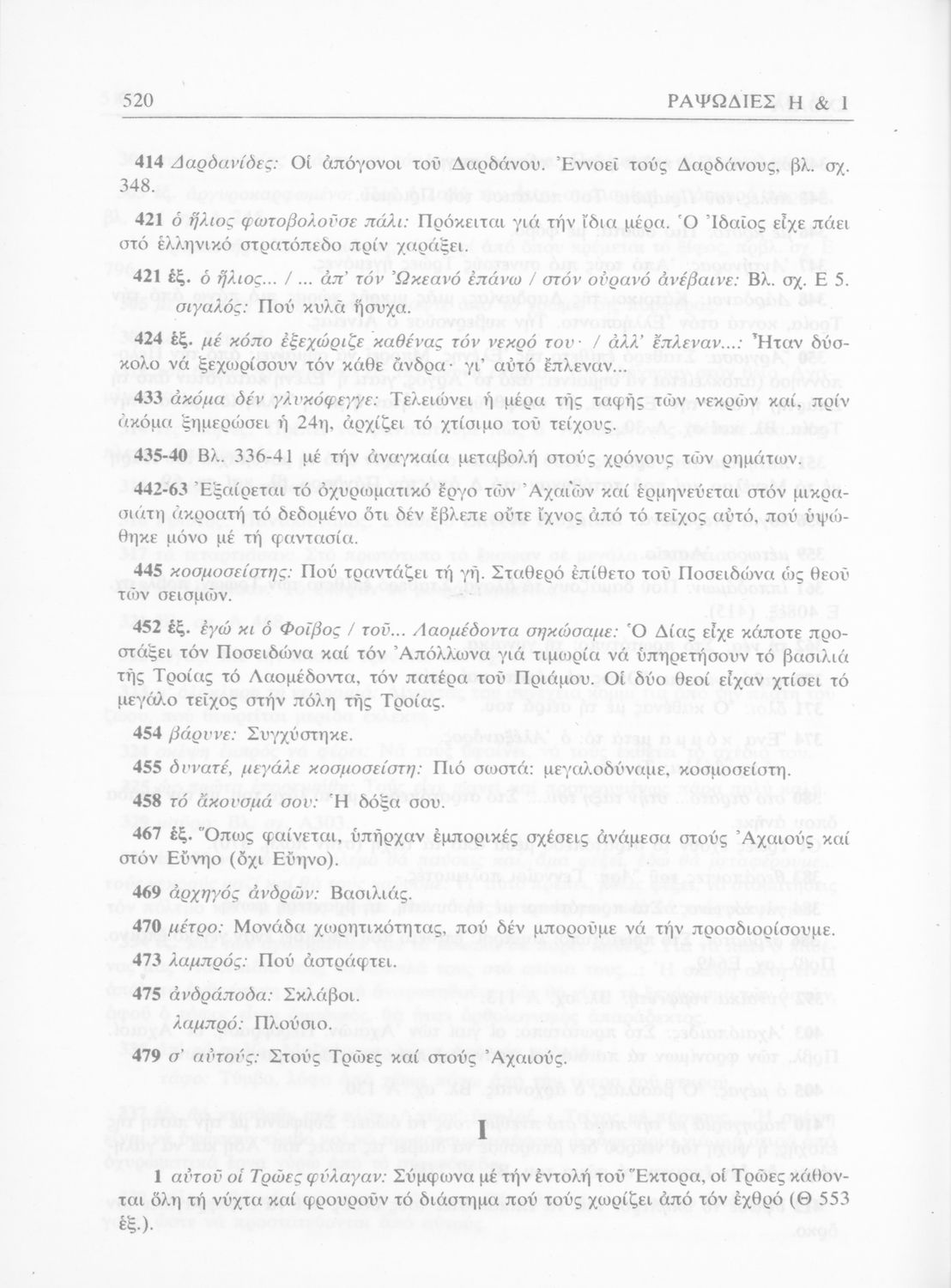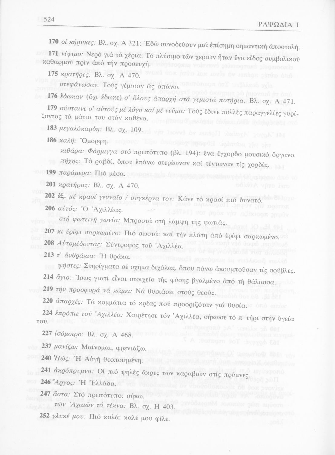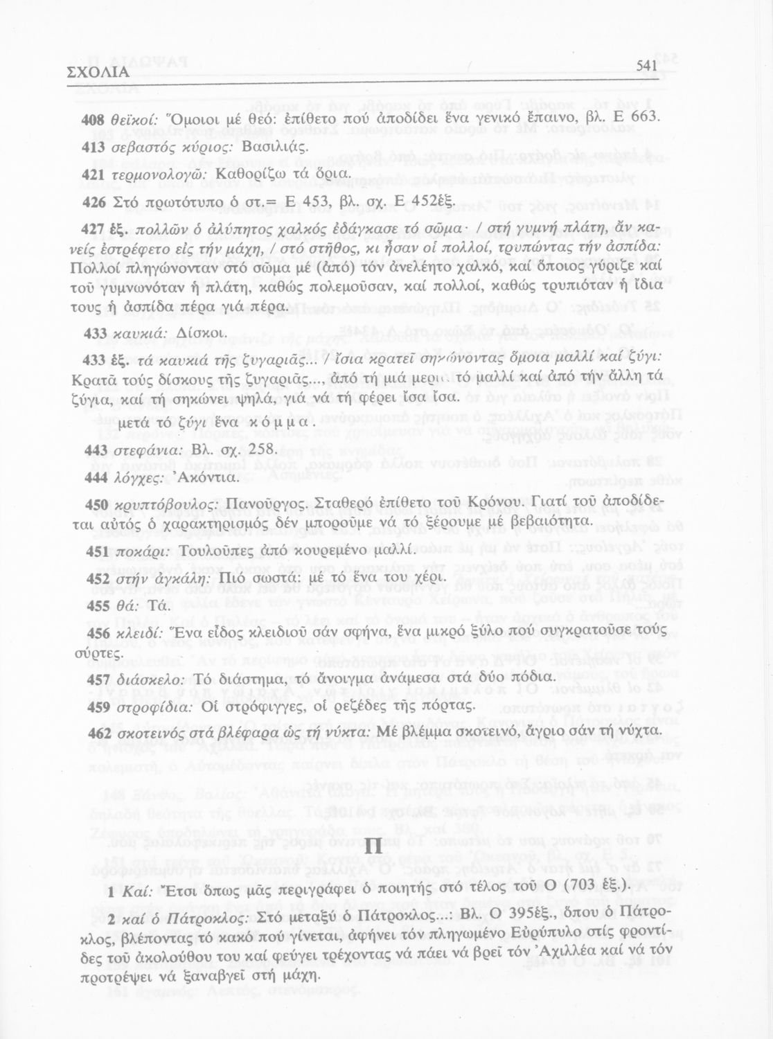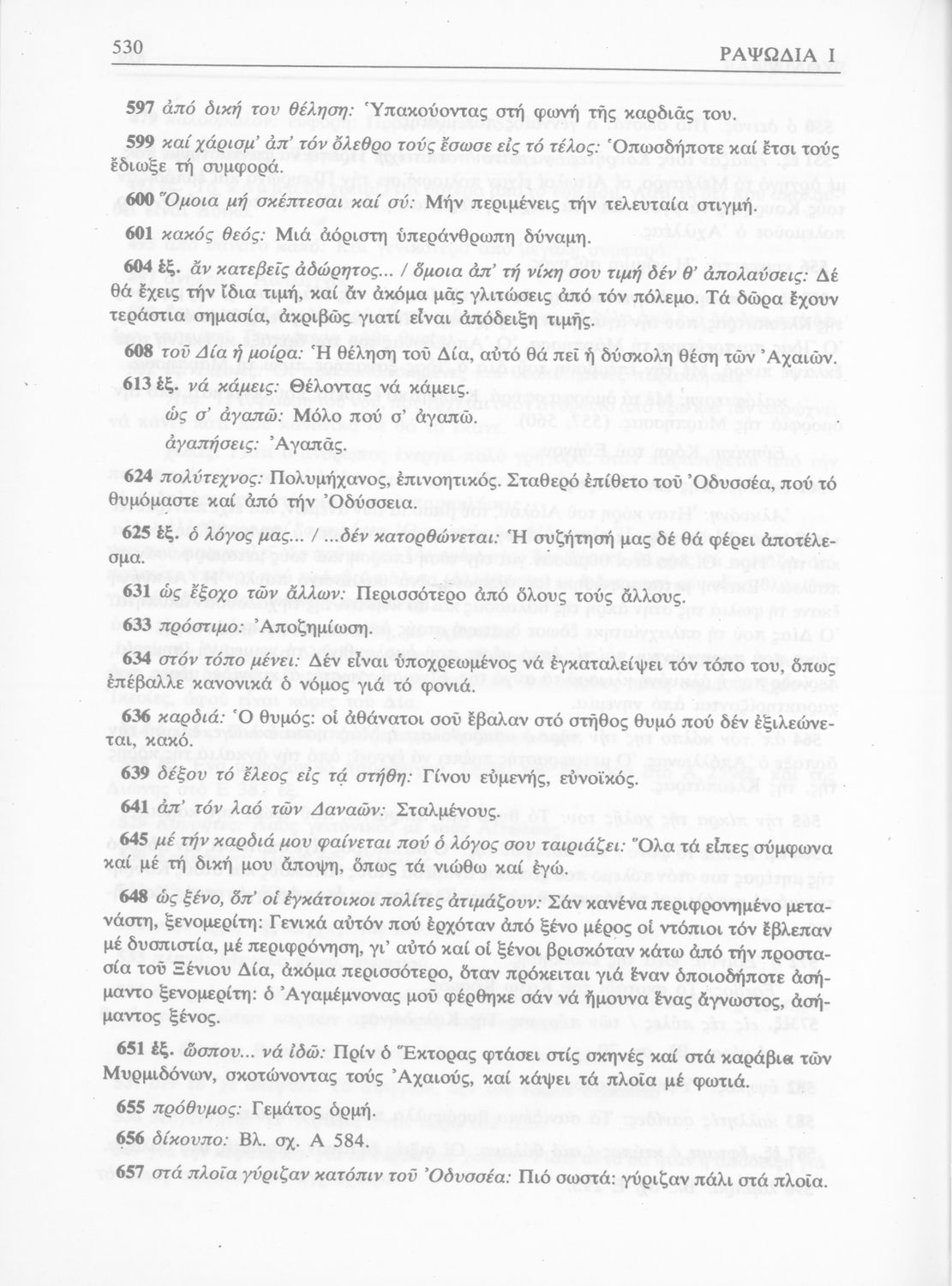 Μαθητικό βοήθημα του Ελληνικού Σχολείου, των Παρθεναγωγείων και του Γυμνασίου για το μάθημα των Αρχαίων Ελληνικών. Περιέχει τις ραψωδίες Ο, Π, Ρ, Σ, Τ, Χ, ψ, Ω από το πρωτότυπο με σχόλια και ερμηνευτικές ...