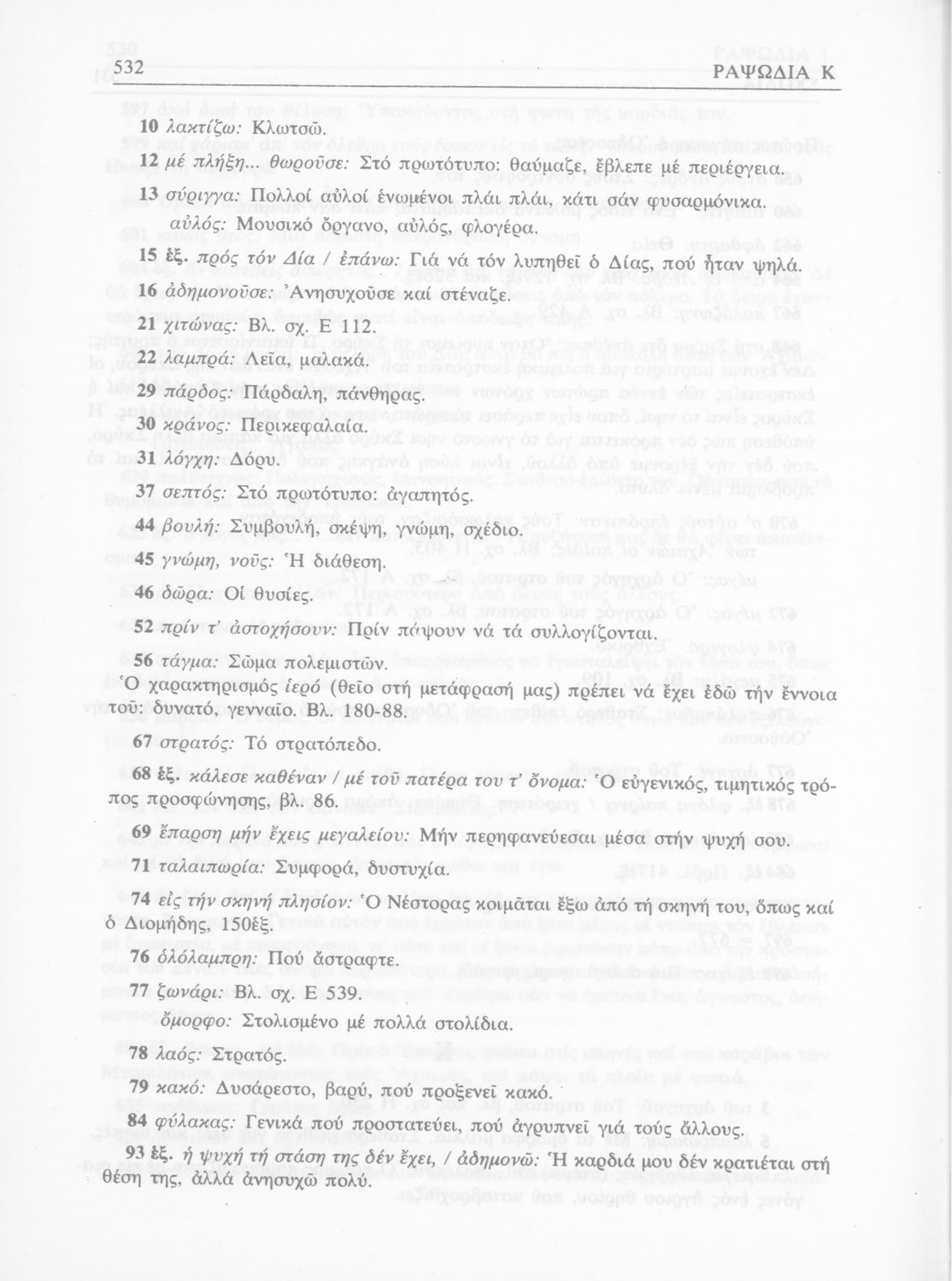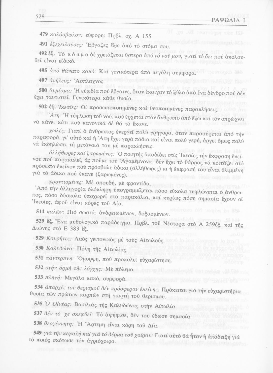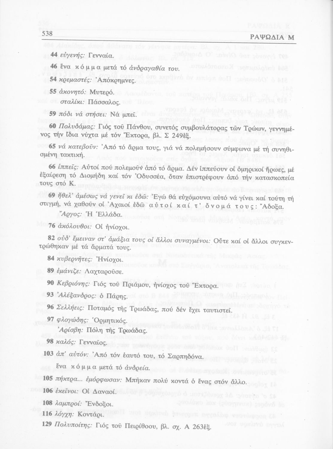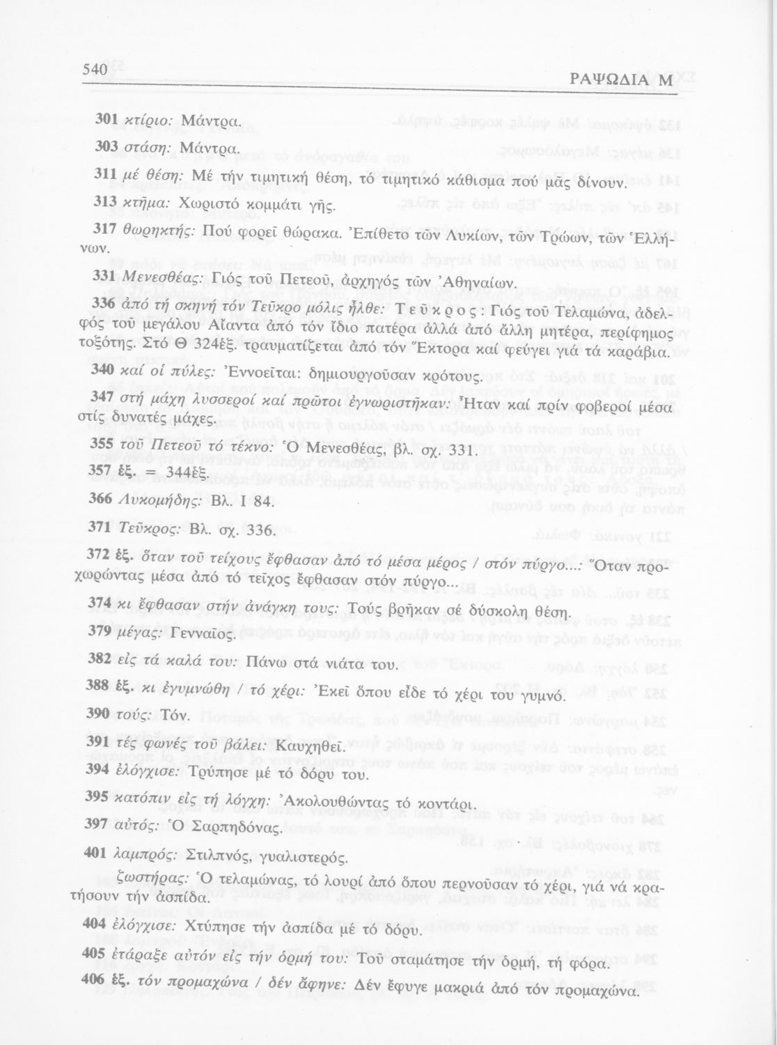 Μαθητικό βοήθημα του Ελληνικού Σχολείου, των Παρθεναγωγείων και του Γυμνασίου για το μάθημα των Αρχαίων Ελληνικών. Περιέχει τις ραψωδίες Ο, Π, Ρ, Σ, Τ, Χ, ψ, Ω από το πρωτότυπο με σχόλια και ερμηνευτικές ...