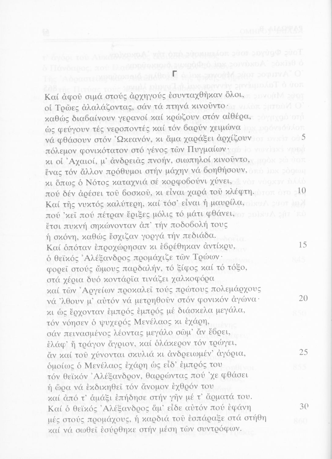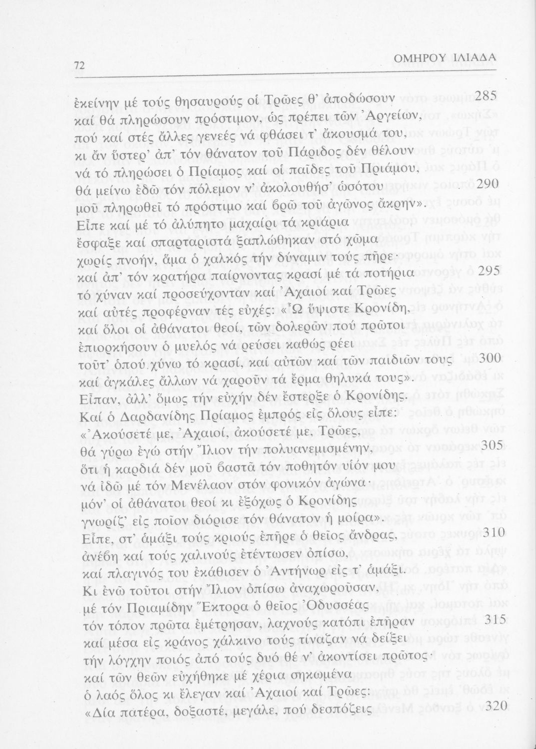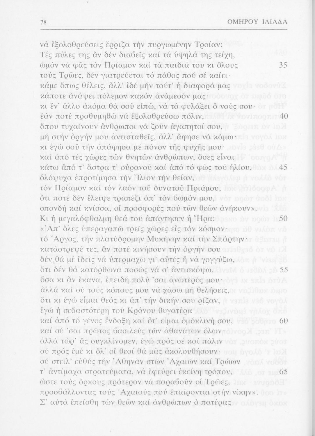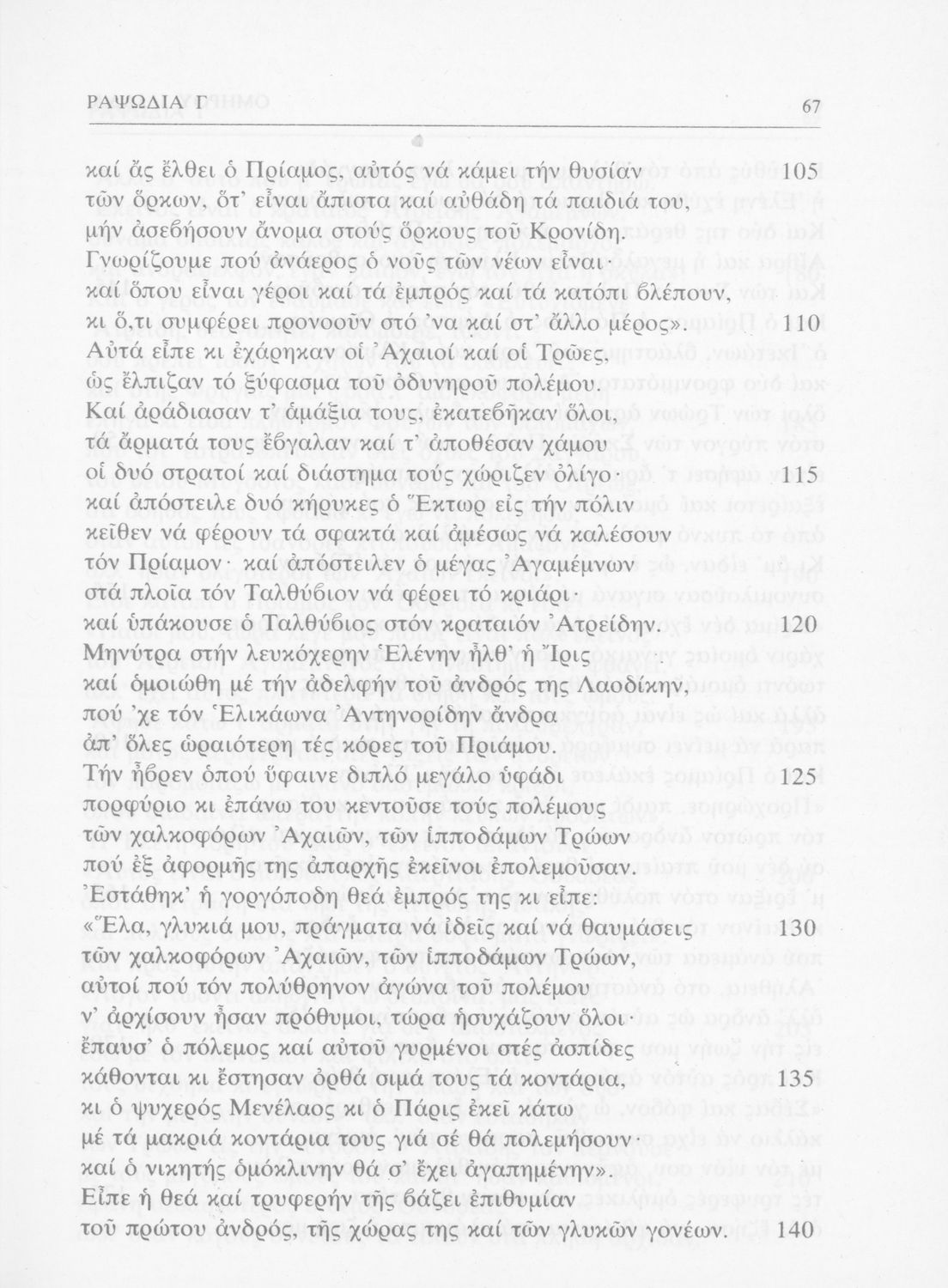 Σχολικό εγχειρίδιο Αρχαίων Ελληνικών. Το βιβλίο περιλαμβάνει εισαγωγή σχετικά με τις διαφορές Οδύσσειας και Ιλιάδας, το περιεχόμενο της Ιλιάδας, το ομηρικό πρόβλημα και την επίδραση των ομηρικών επών στον Ελληνικό και Δυτικό πολιτισμό. Ακολουθεί η Ιλιάδα του Ομήρου σε μετάφραση του Ιάκωβου Πολυλά και σχετικά σχόλια. Η εισαγωγή και τα ερμηνευτικά σχόλια έγιναν από την Ελένη Ι. Κακριδή.