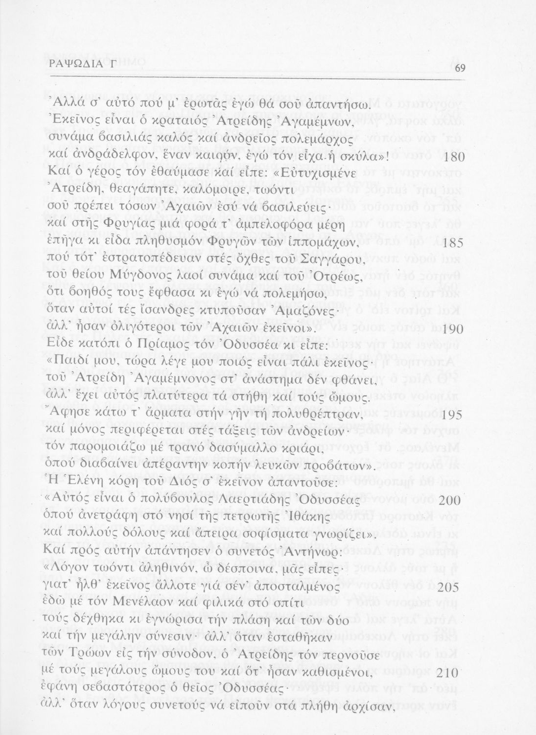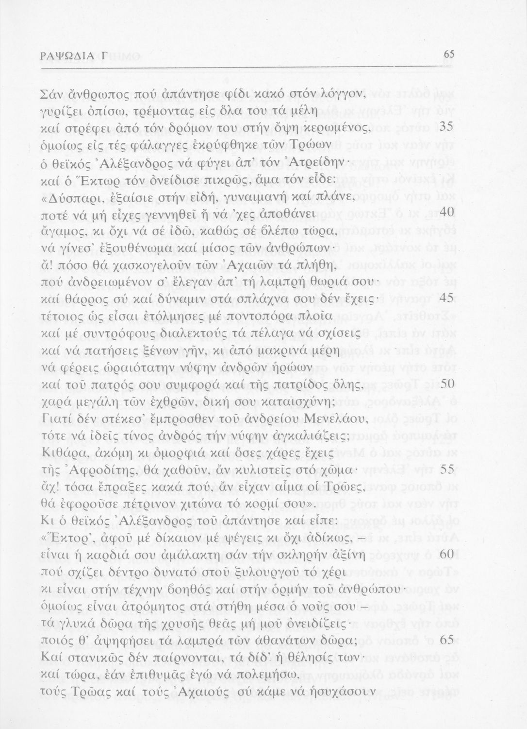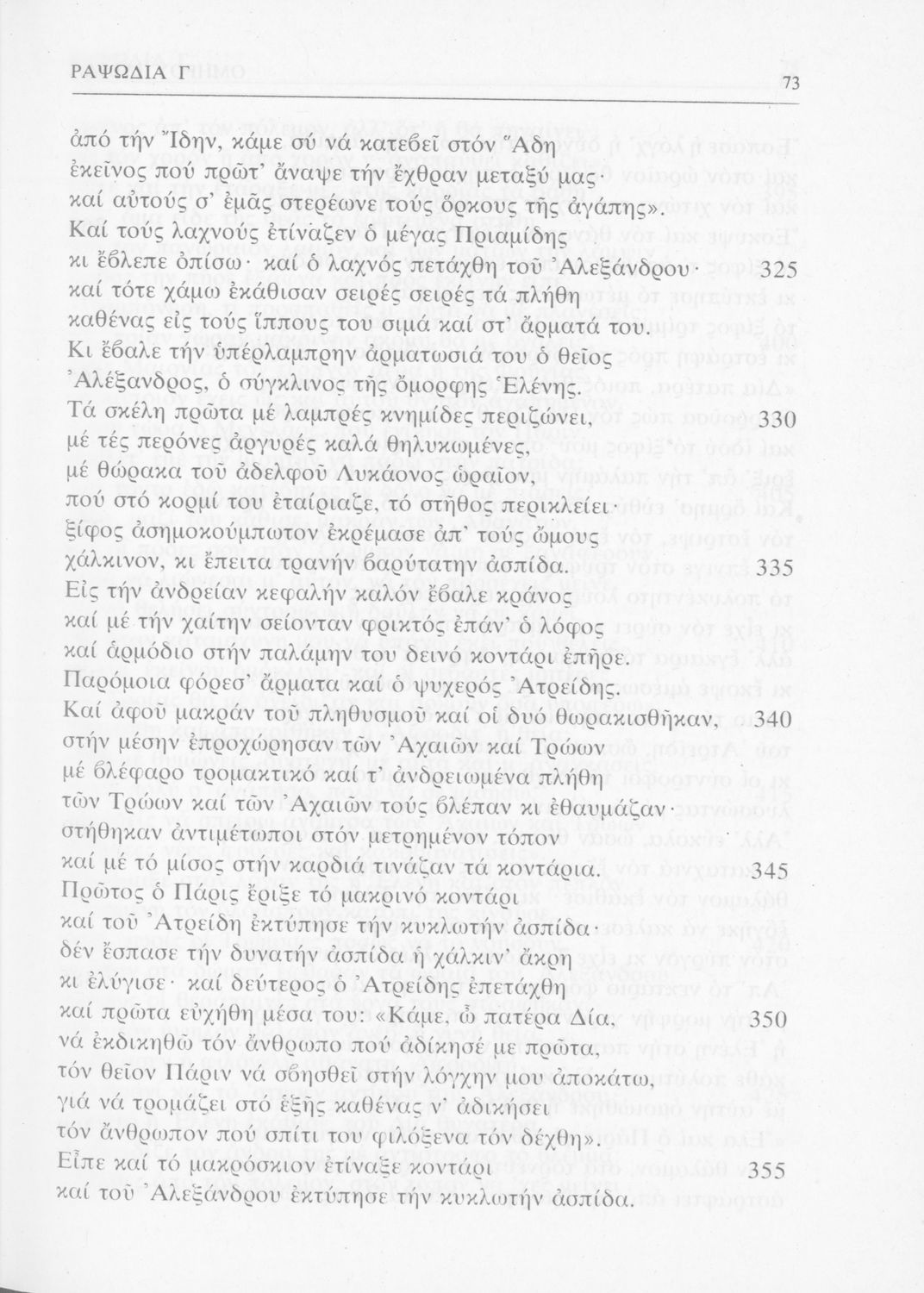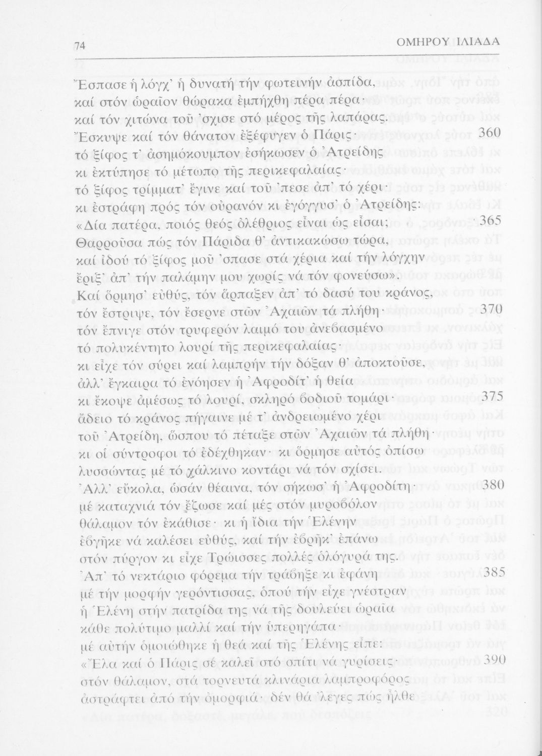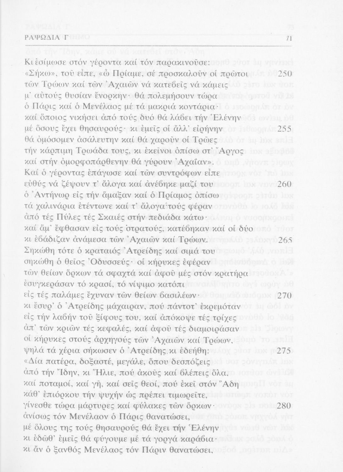 Σχολικό εγχειρίδιο Αρχαίων Ελληνικών. Το βιβλίο περιλαμβάνει εισαγωγή σχετικά με τις διαφορές Οδύσσειας και Ιλιάδας, το περιεχόμενο της Ιλιάδας, το ομηρικό πρόβλημα και την επίδραση των ομηρικών επών στον Ελληνικό και Δυτικό πολιτισμό. Ακολουθεί η Ιλιάδα του Ομήρου σε μετάφραση του Ιάκωβου Πολυλά και σχετικά σχόλια. Η εισαγωγή και τα ερμηνευτικά σχόλια έγιναν από την Ελένη Ι. Κακριδή.