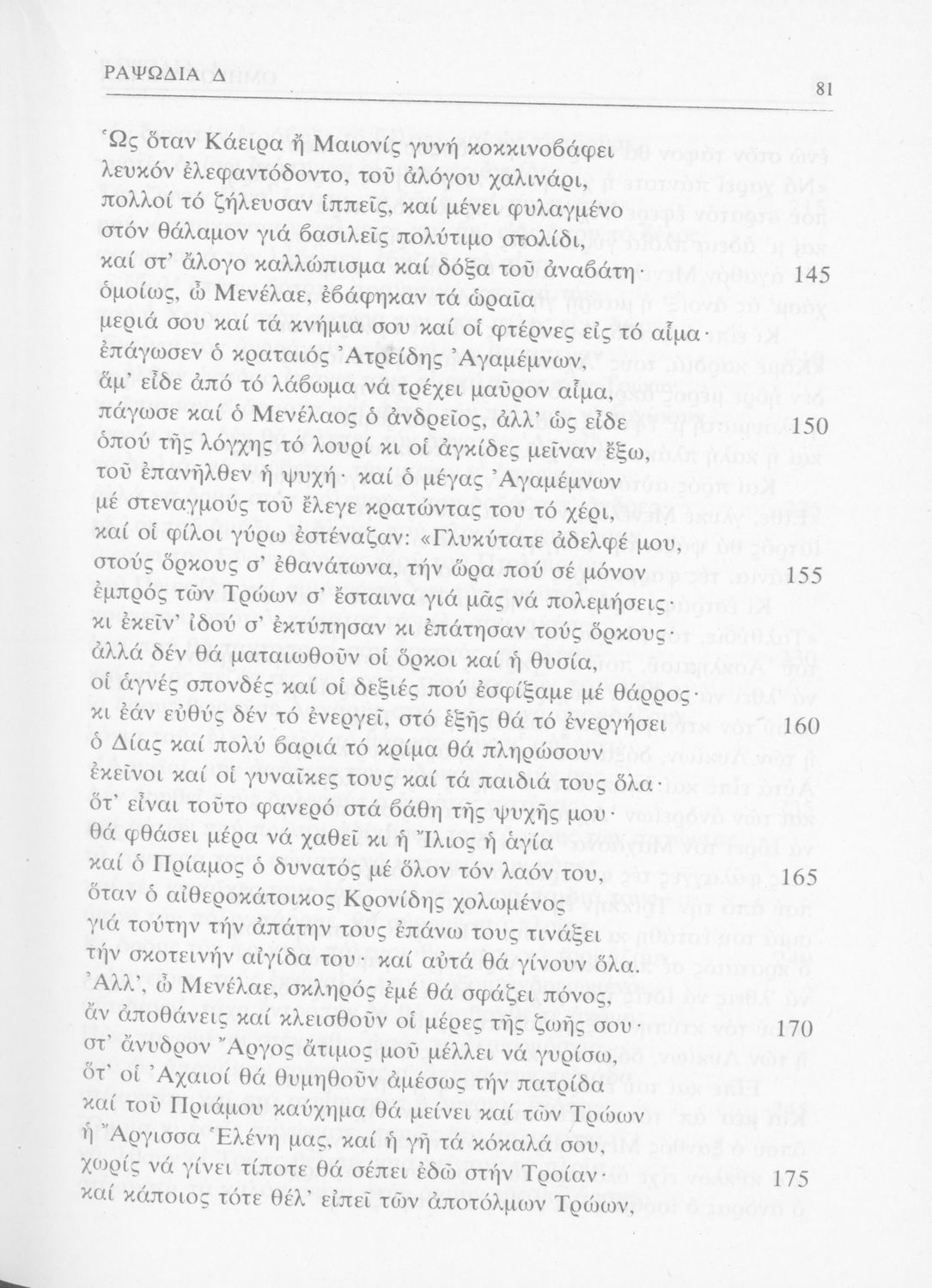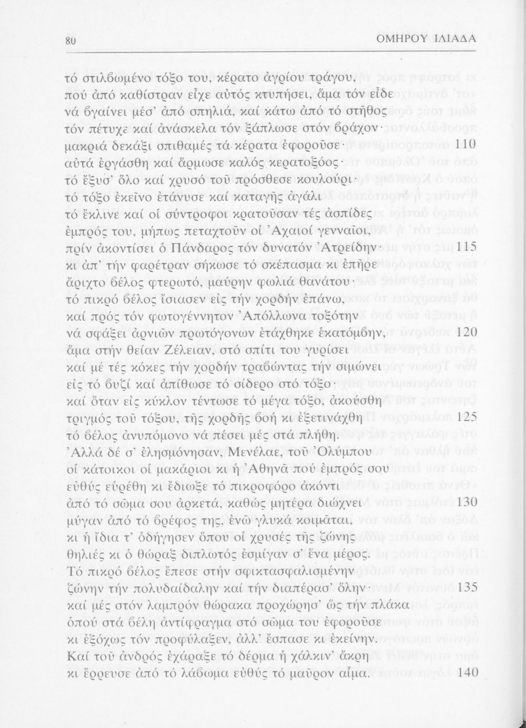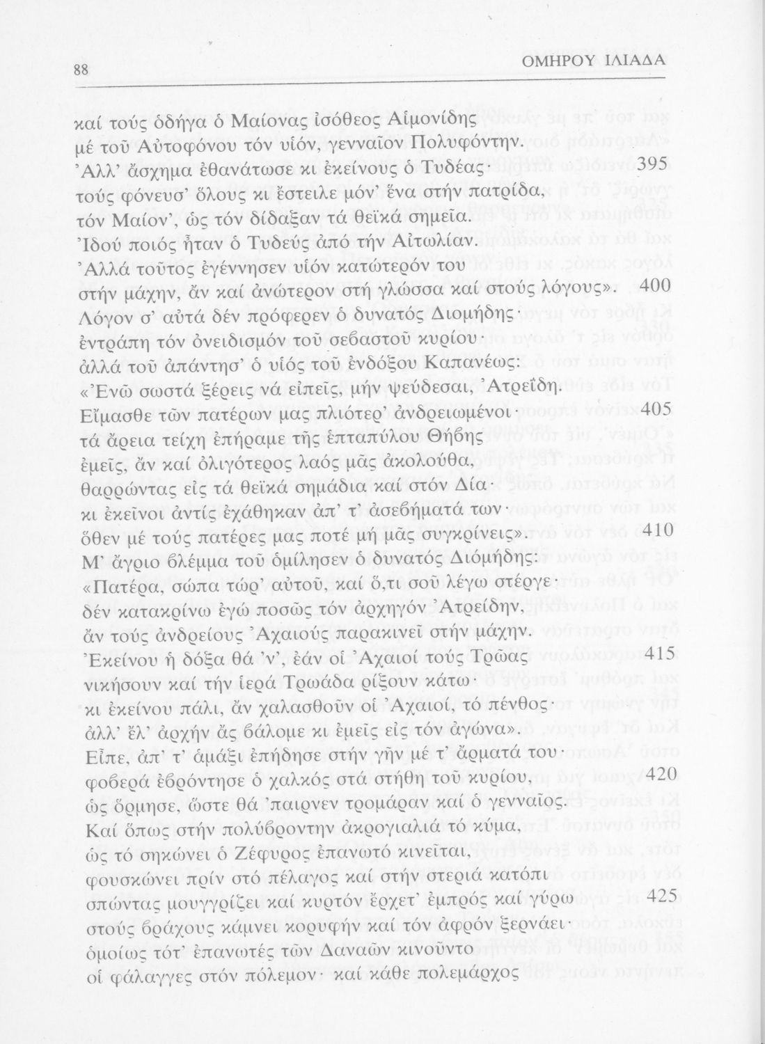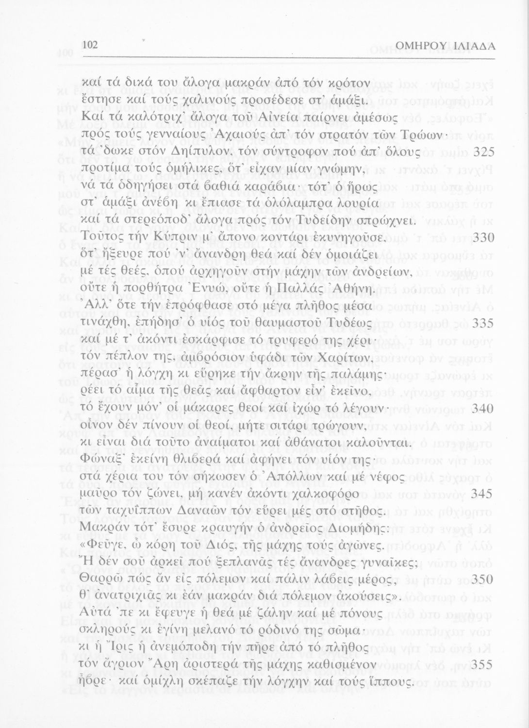 Σχολικό εγχειρίδιο της Δευτεροβάθμιας Εκπαίδευσης για το μάθημα των Αρχαίων Ελληνικών. Πρόκειται για το κείμενο της Ιλιάδας μεταφρασμένο, με πραγματολογικές παρατηρήσεις. Στο τέλος περιλαμβάνει λεξιλόγιο.