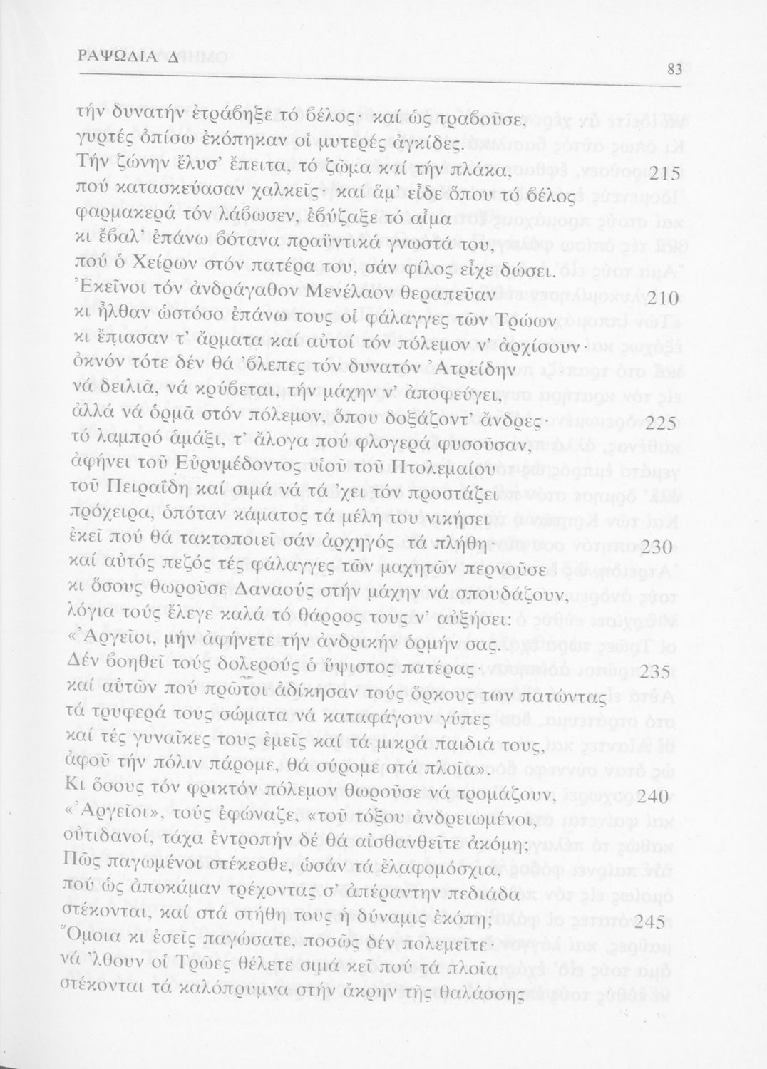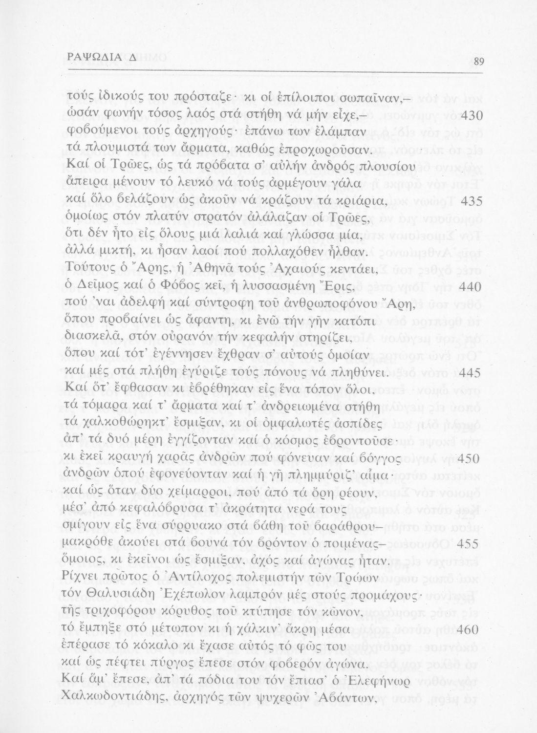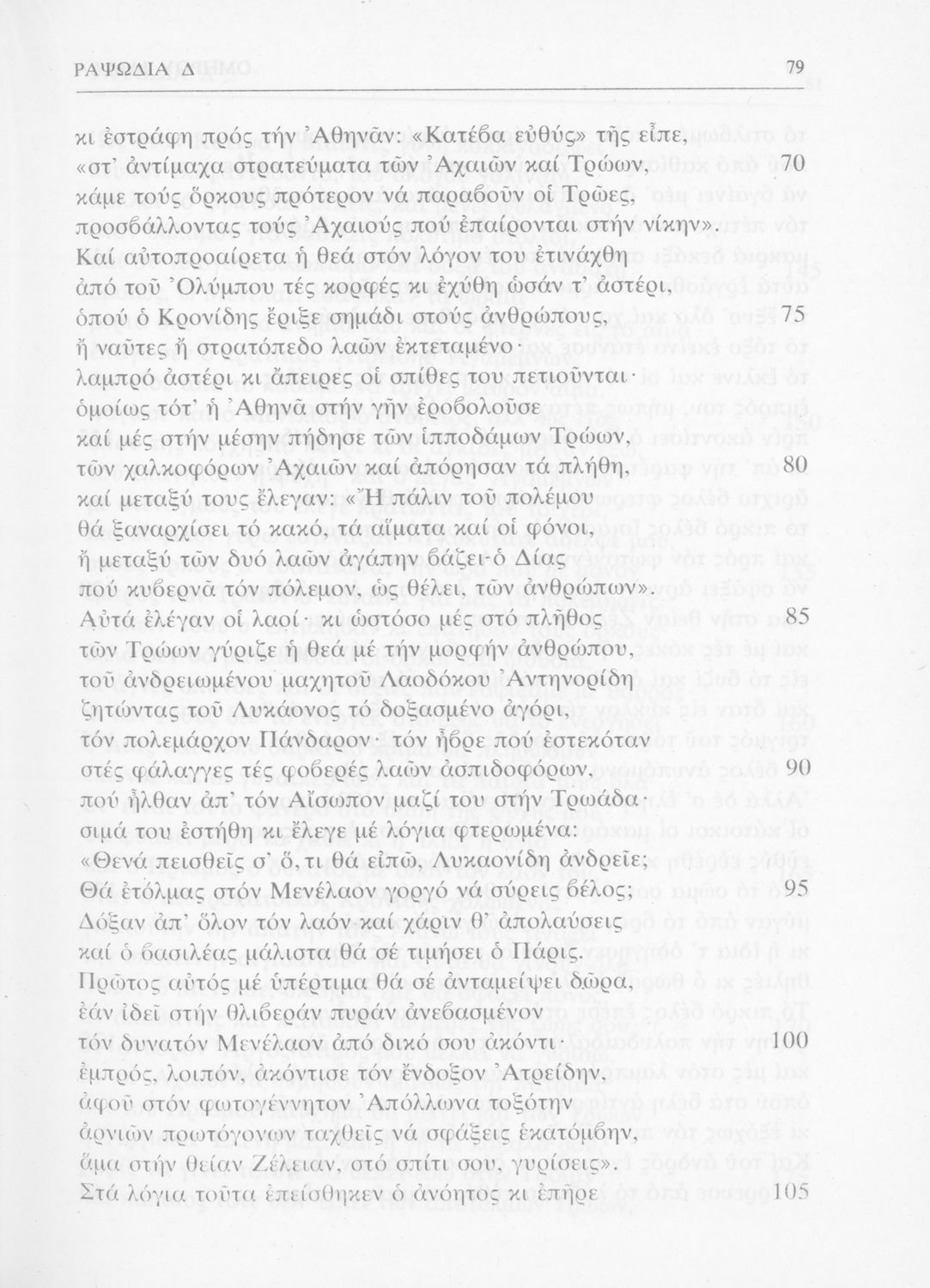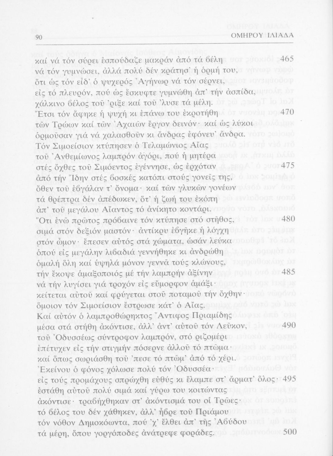 Σχολικό εγχειρίδιο της Δευτεροβάθμιας Εκπαίδευσης για το μάθημα των Αρχαίων Ελληνικών. Πρόκειται για το κείμενο της Ιλιάδας μεταφρασμένο, με πραγματολογικές παρατηρήσεις. Στο τέλος περιλαμβάνει λεξιλόγιο.