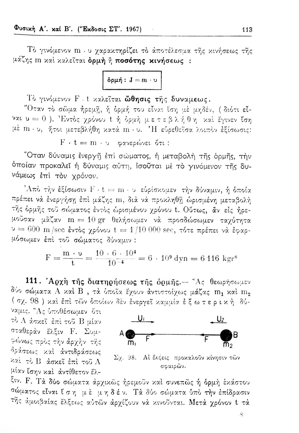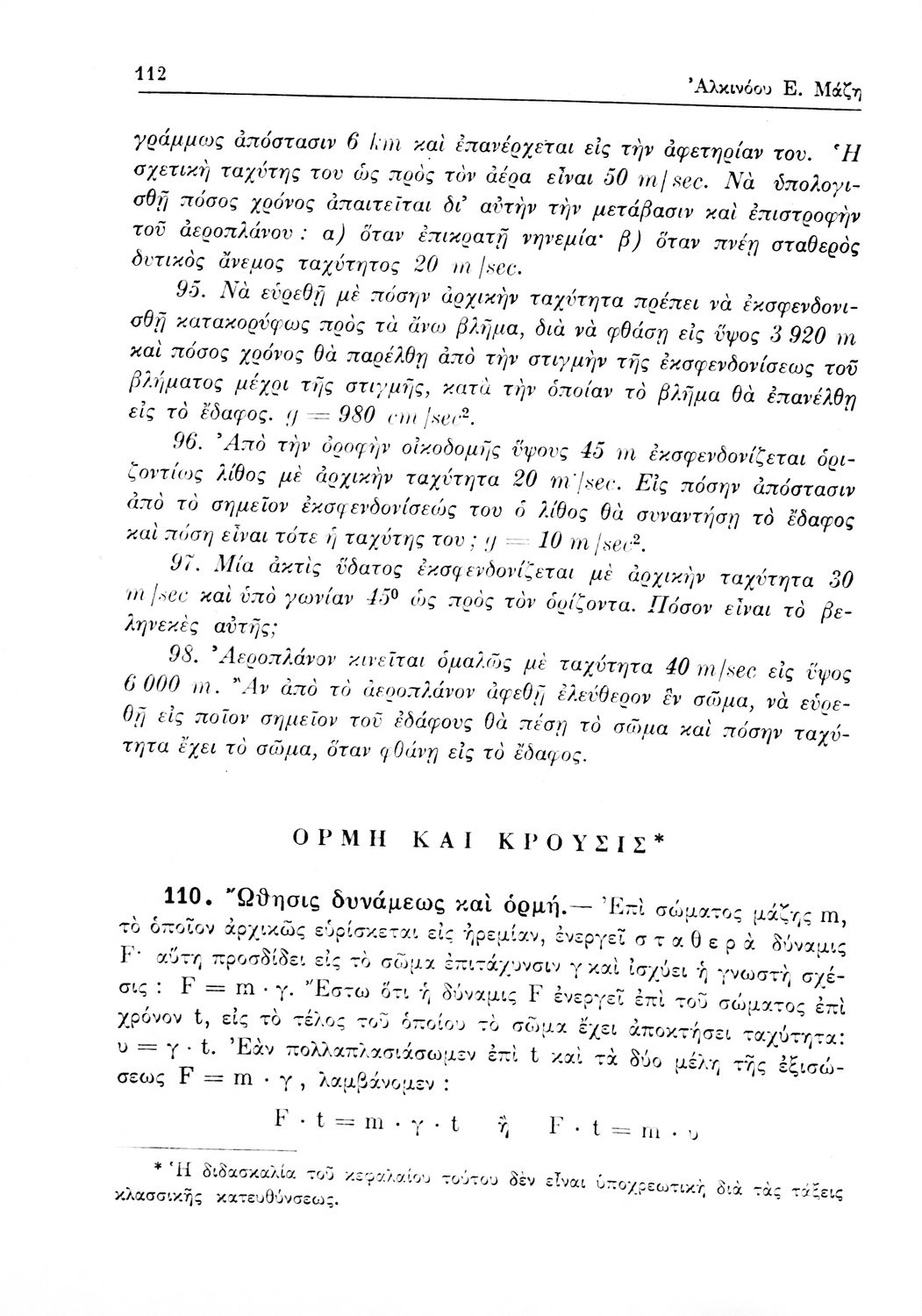 Βαθμίδα εκπαίδευσης: Δευτεροβάθμια Τάξη: Α' Λυκείου / Β' Λυκείου Μάθημα: Φυσική Γλώσσα: Καθαρεύουσα Παρουσίαση περιεχομένου: Σχολικό εγχειρίδιο Φυσικής Α΄ και Β΄ Λυκείου που εστιάζει στα φυσικά φαινόμενα της μηχανικής, της ακουστικής και της θερμότητας. |