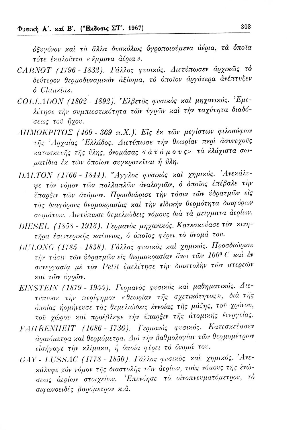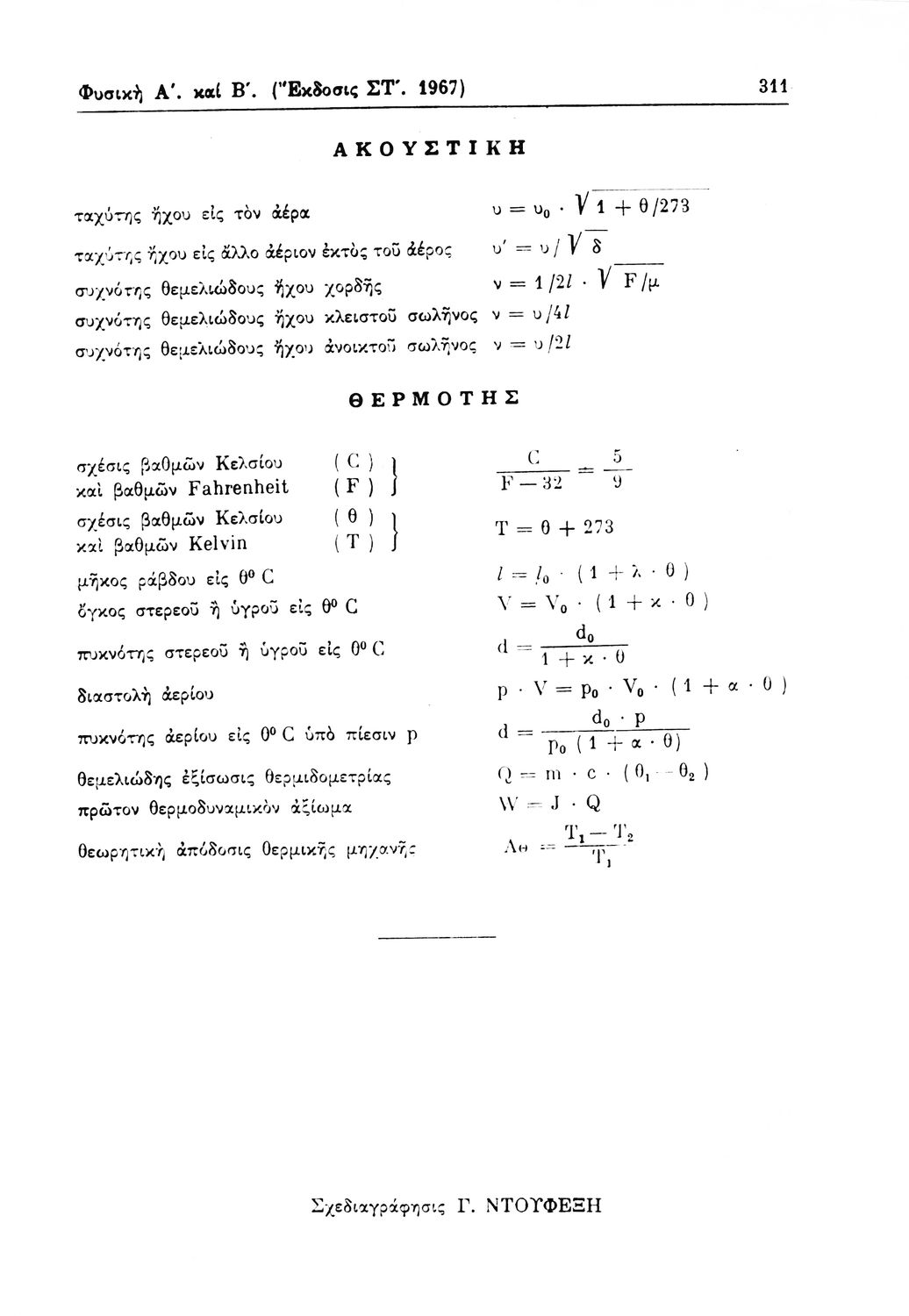 Βαθμίδα εκπαίδευσης: Δευτεροβάθμια Τάξη: Α' Λυκείου / Β' Λυκείου Μάθημα: Φυσική Γλώσσα: Καθαρεύουσα Παρουσίαση περιεχομένου: Σχολικό εγχειρίδιο Φυσικής Α΄ και Β΄ Λυκείου που εστιάζει στα φυσικά φαινόμενα της μηχανικής, της ακουστικής και της θερμότητας. |