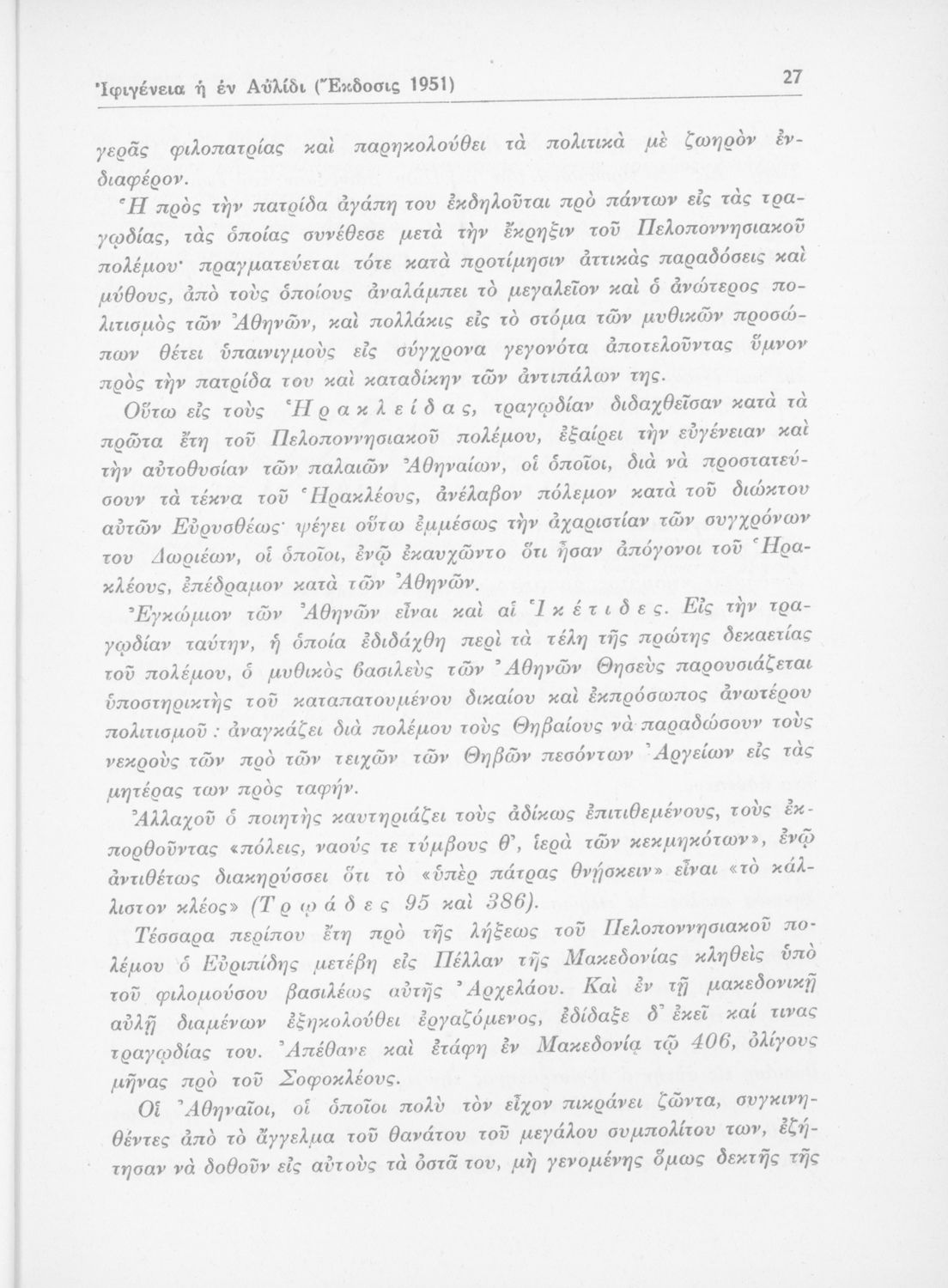Τίτλος: Ευριπίδου Ιφιγένεια η εν Αυλίδι δια την Ε΄ Τάξιν των Γυμνασίων