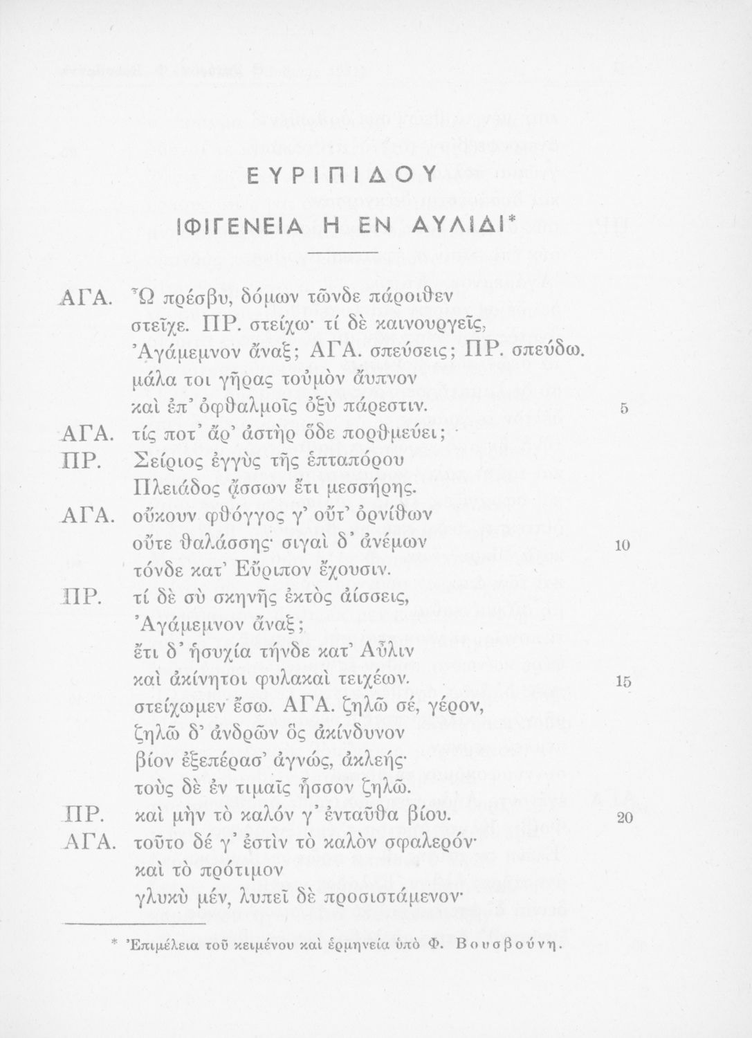 Μαθητικό βοήθημα Αρχαίων Ελληνικών για την Ε' Γυμνασίου που περιλαμβάνει μετάφραση, ερμηνευτικά, γραμματικά και συντακτικά σχόλια στην Ιφιγένεια η εν Αυλίδι.