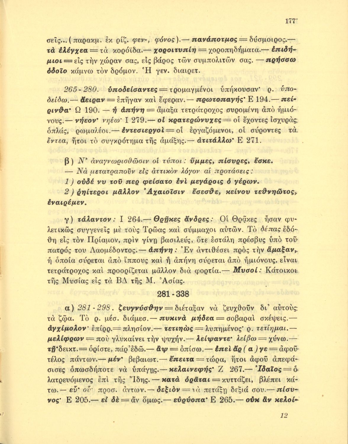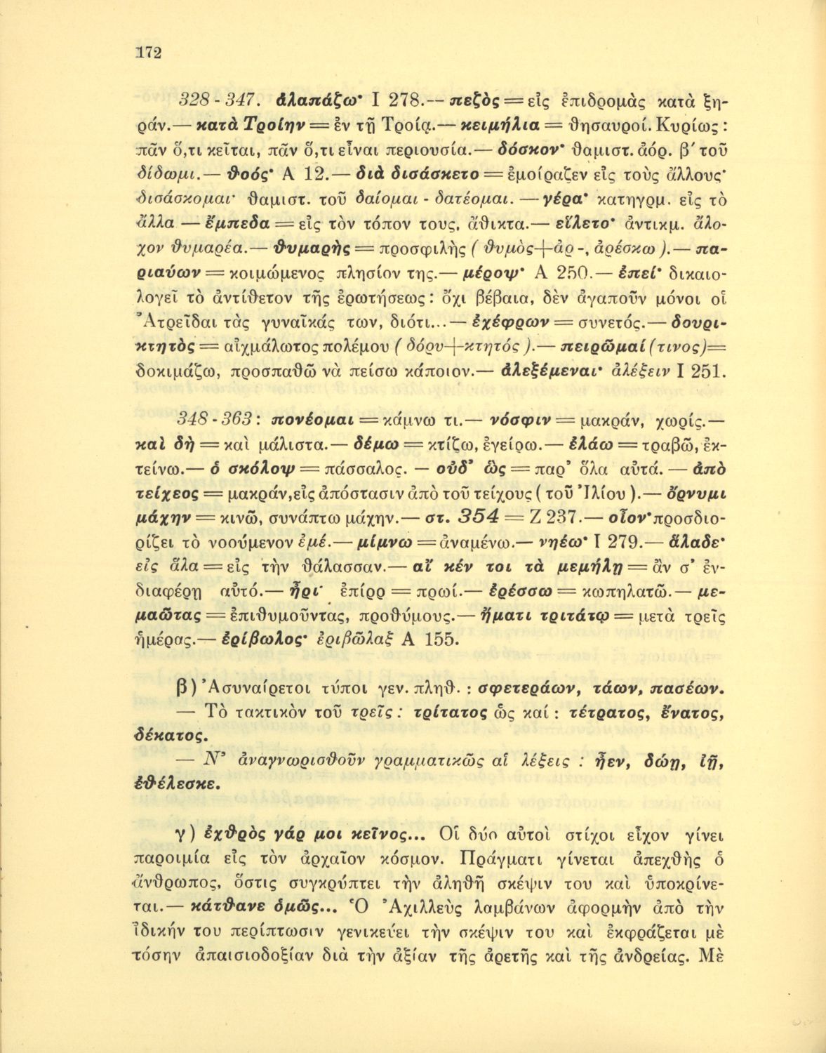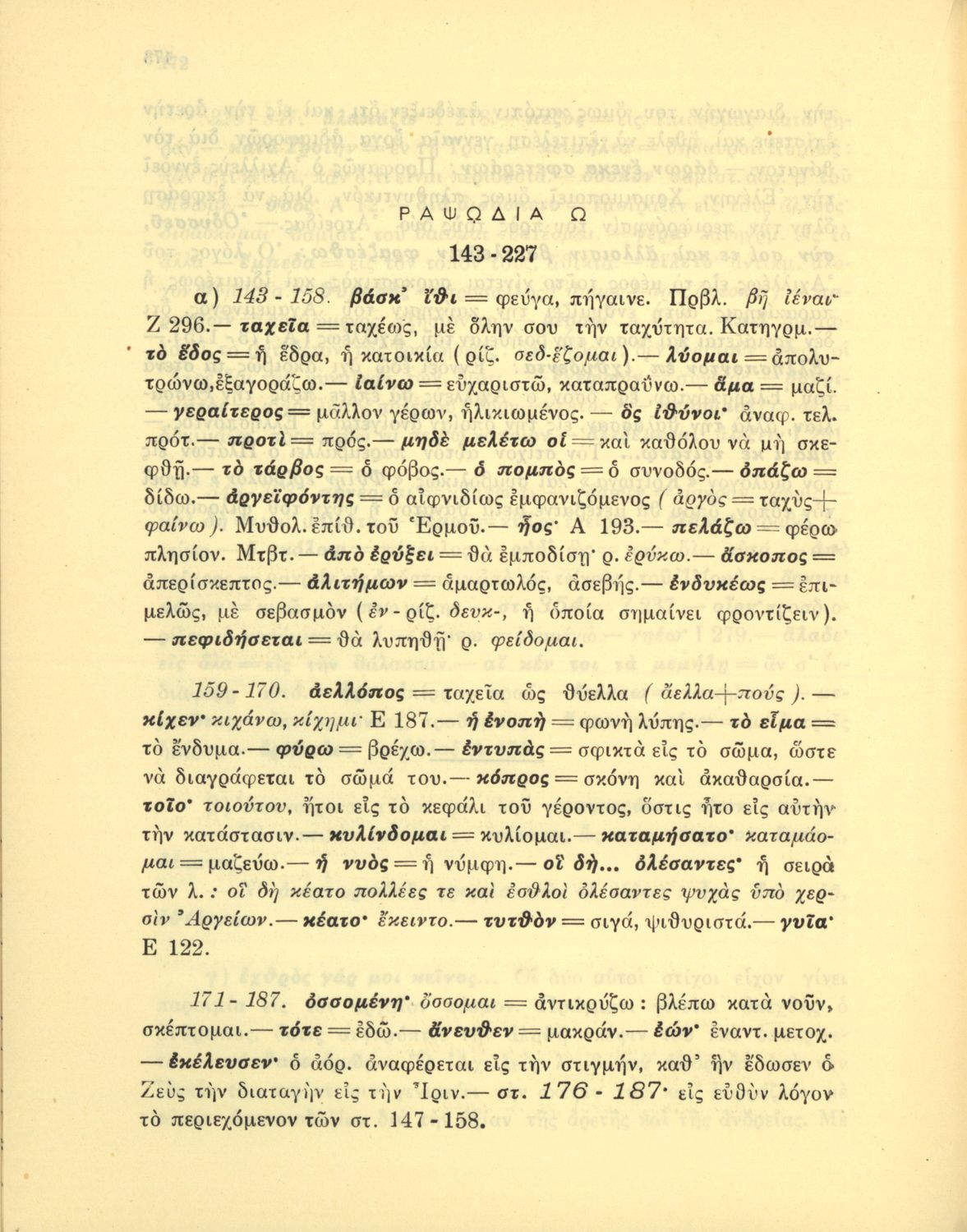 Μαθητικό βοήθημα του Ελληνικού Σχολείου, των Παρθεναγωγείων και του Γυμνασίου για το μάθημα των Αρχαίων Ελληνικών. Περιέχει τις ραψωδίες Ο, Π, Ρ, Σ, Τ, Χ, ψ, Ω από το πρωτότυπο με σχόλια και ερμηνευτικές ...