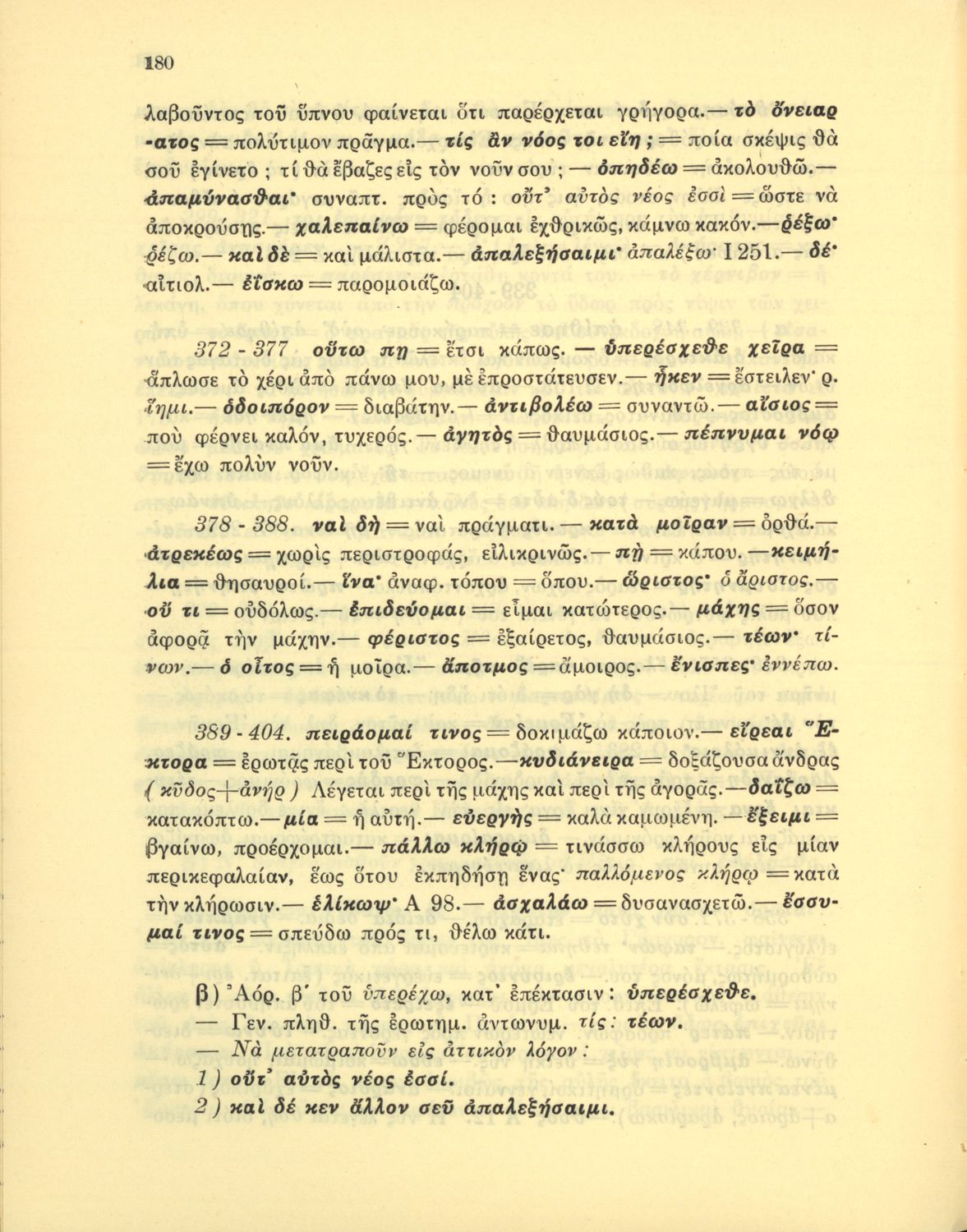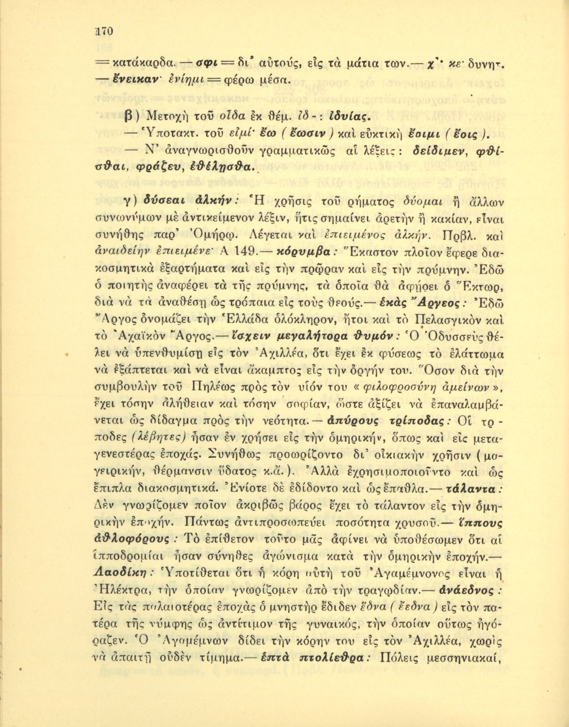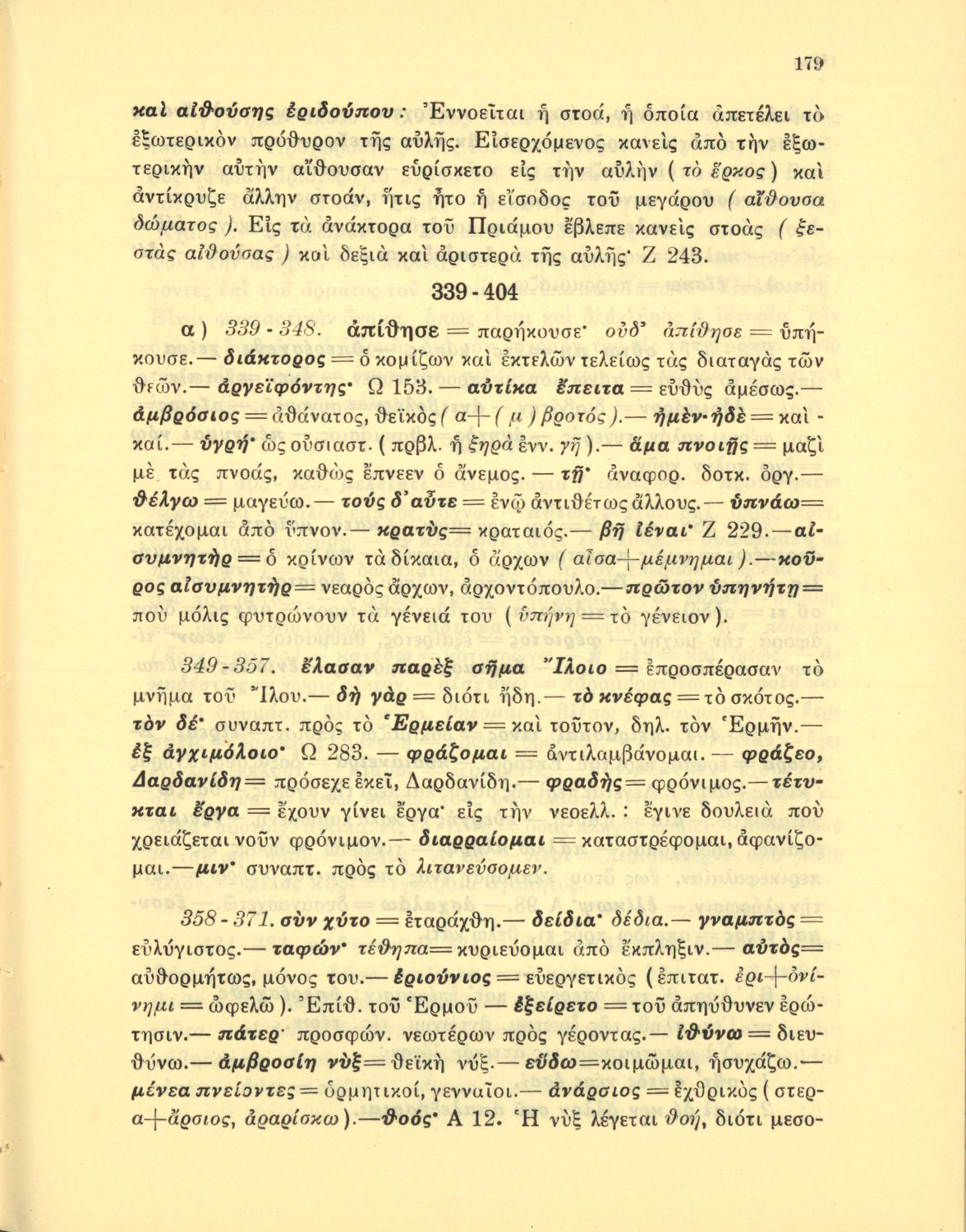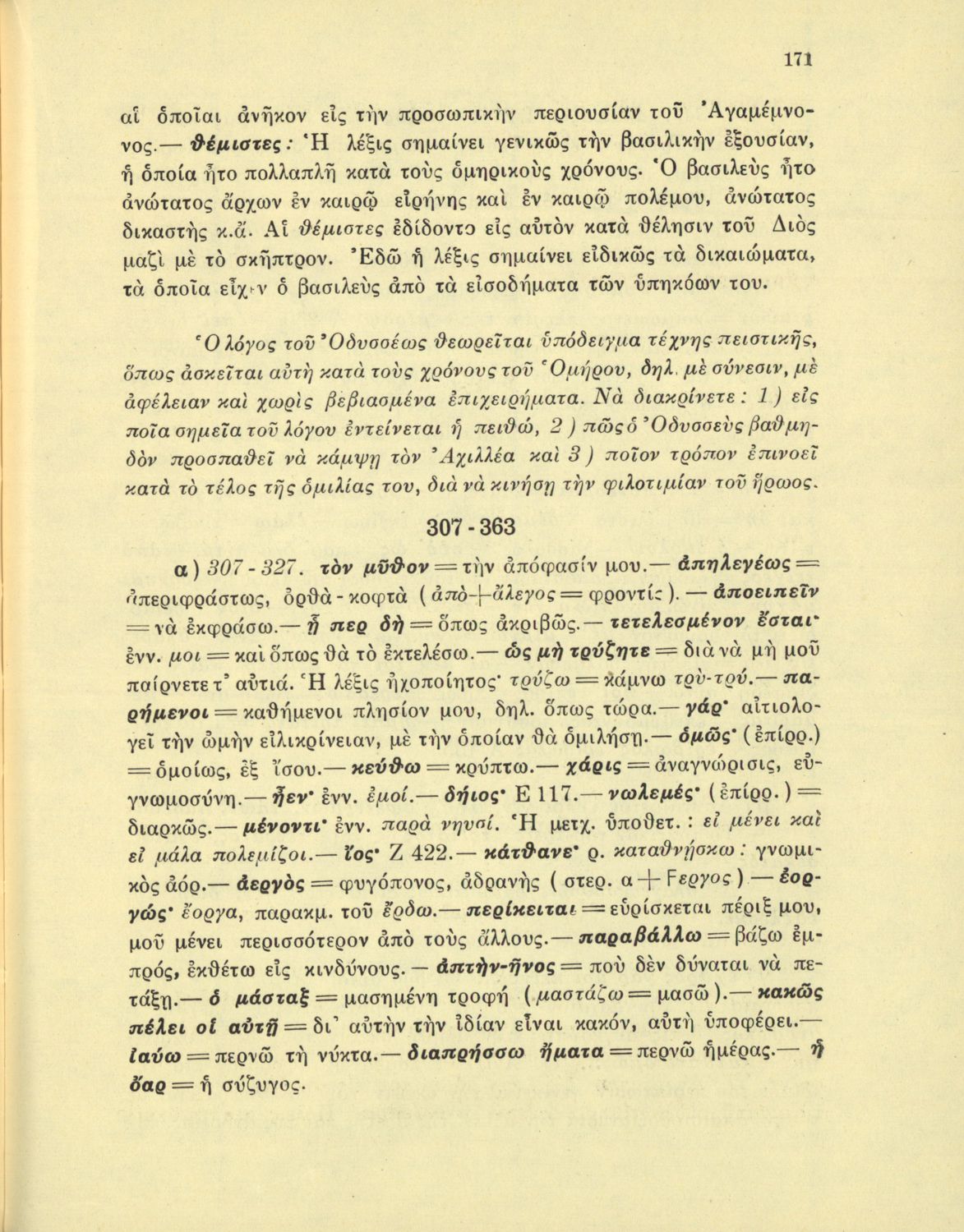 Μαθητικό βοήθημα του Ελληνικού Σχολείου, των Παρθεναγωγείων και του Γυμνασίου για το μάθημα των Αρχαίων Ελληνικών. Περιέχει τις ραψωδίες Ο, Π, Ρ, Σ, Τ, Χ, ψ, Ω από το πρωτότυπο με σχόλια και ερμηνευτικές ...