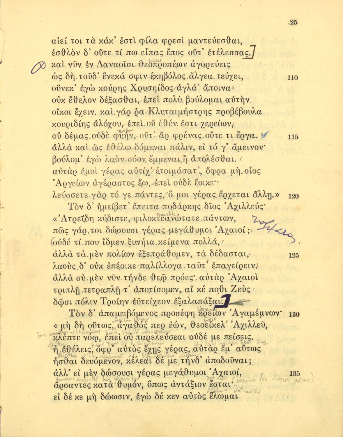 Σχολικό εγχειρίδιο του Γυμνασίου για το μάθημα των Αρχαίων Ελληνικών. Περιέχει ραψωδίες της Ιλιάδα στο αρχαίο κείμενο. Επίσης, περιλαμβάνει τη μετάφραση, τα ερμηνευτικά, πραγματολογικά σχόλια και τις λεξιλογικές παρατηρήσεις των συγγραφέων. Ο συγγραφέας ήταν Καθηγητής στο Κολέγιο Αθηνών. Η συγγραφέας ήταν Καθηγήτρια Φιλόλογος. Σχόλια και στιχάκια του Paul Anka από τη μαθήτρια στο περιθώριο του βιβλίου.