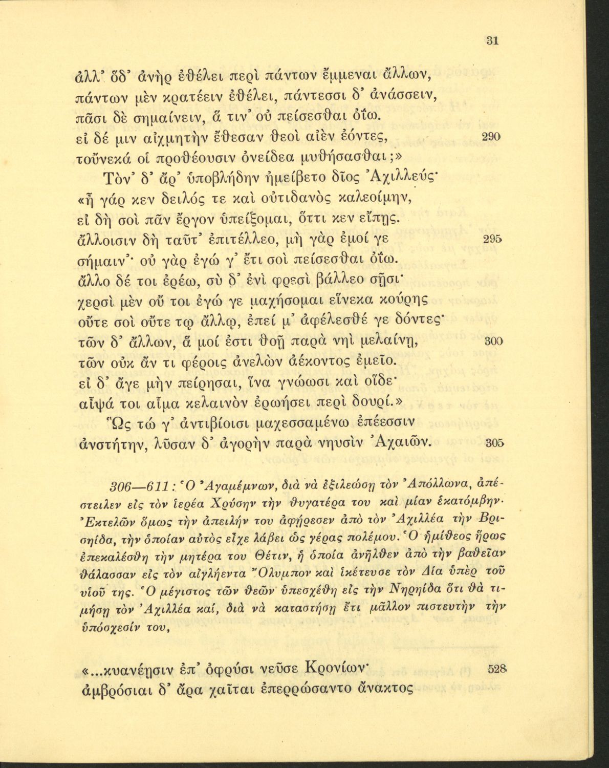 Μαθητικό βοήθημα του Ελληνικού Σχολείου, των Παρθεναγωγείων και του Γυμνασίου για το μάθημα των Αρχαίων Ελληνικών. Περιέχει τις ραψωδίες Ο, Π, Ρ, Σ, Τ, Χ, ψ, Ω από το πρωτότυπο με σχόλια και ερμηνευτικές ...