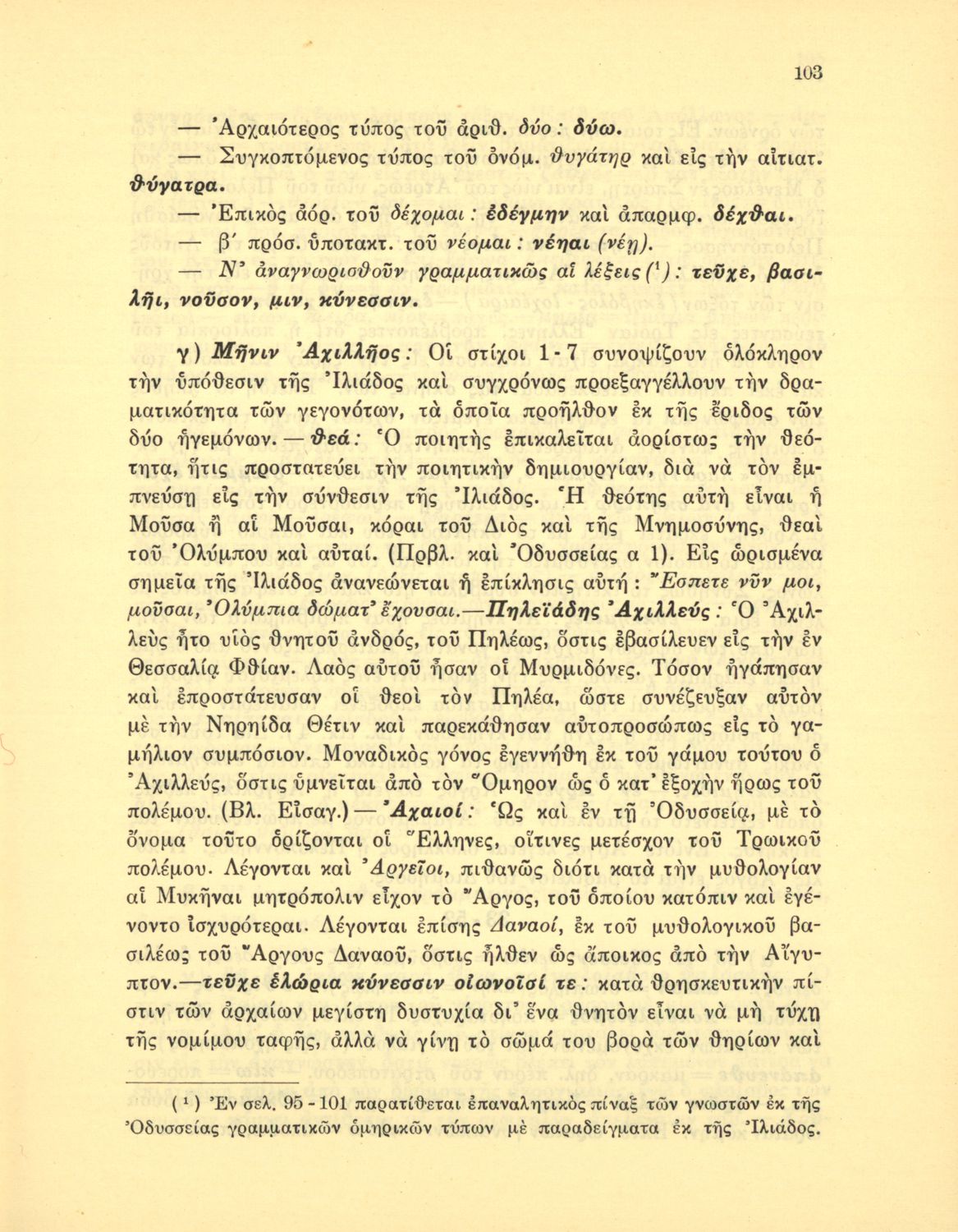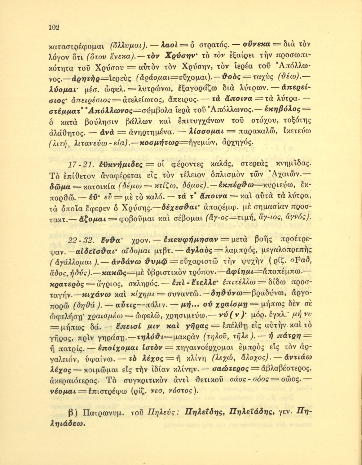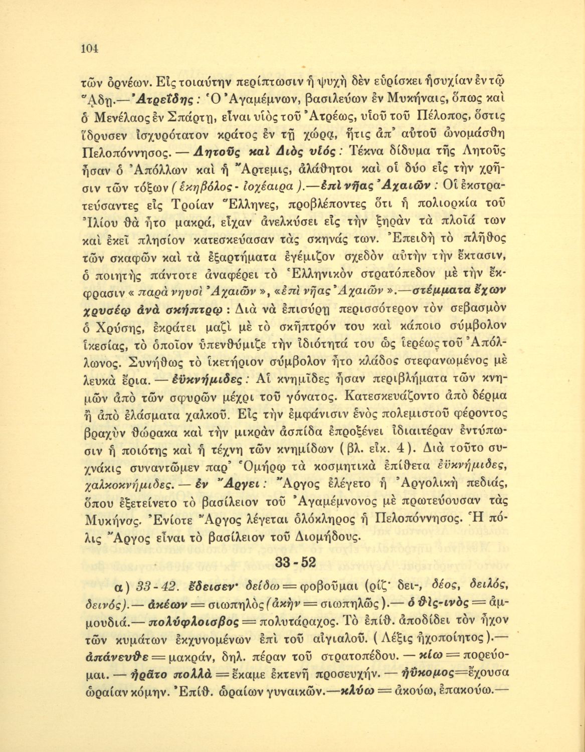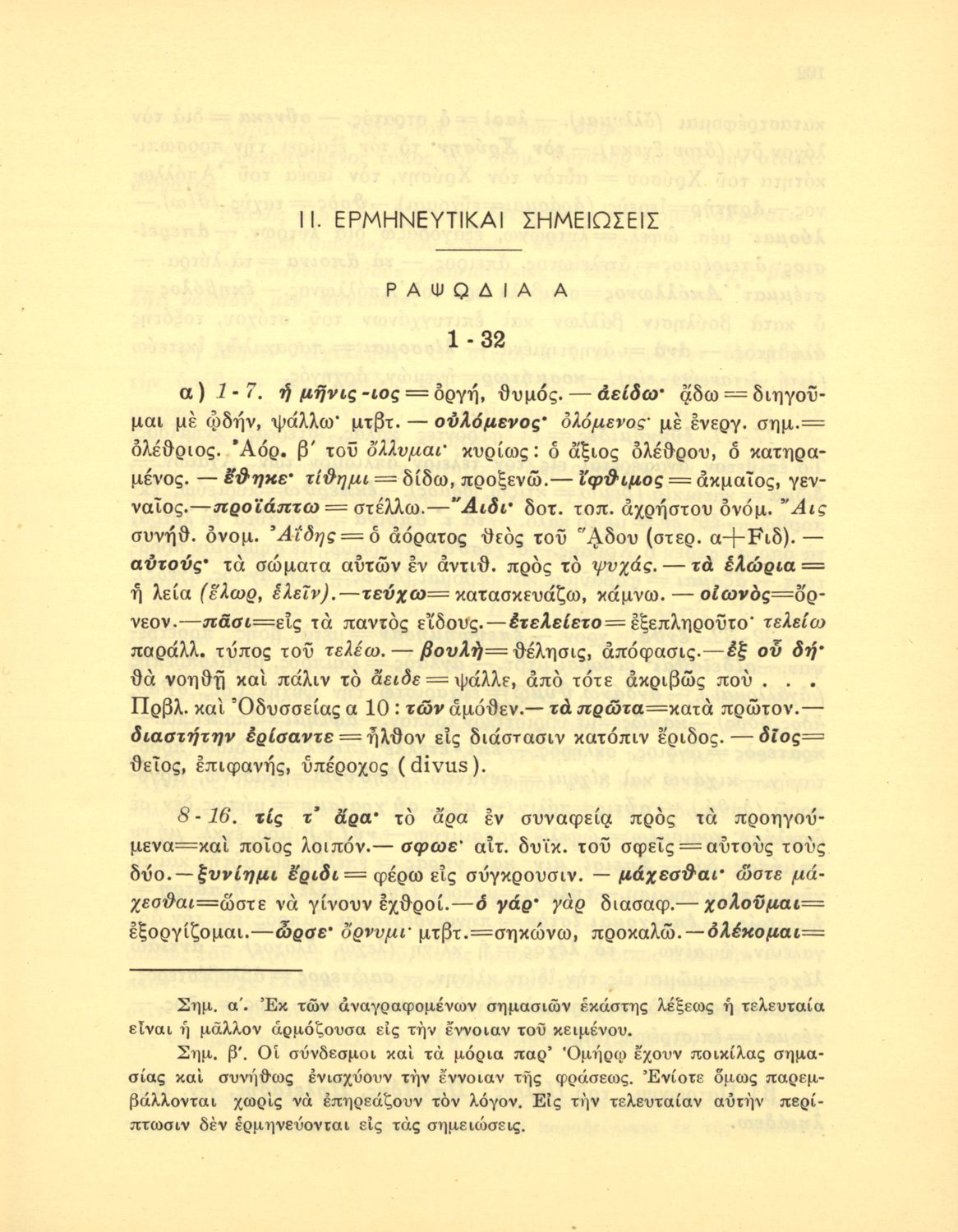 Μαθητικό βοήθημα του Ελληνικού Σχολείου, των Παρθεναγωγείων και του Γυμνασίου για το μάθημα των Αρχαίων Ελληνικών. Περιέχει τις ραψωδίες Ο, Π, Ρ, Σ, Τ, Χ, ψ, Ω από το πρωτότυπο με σχόλια και ερμηνευτικές ...