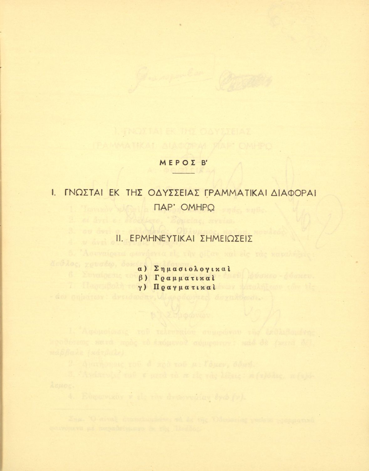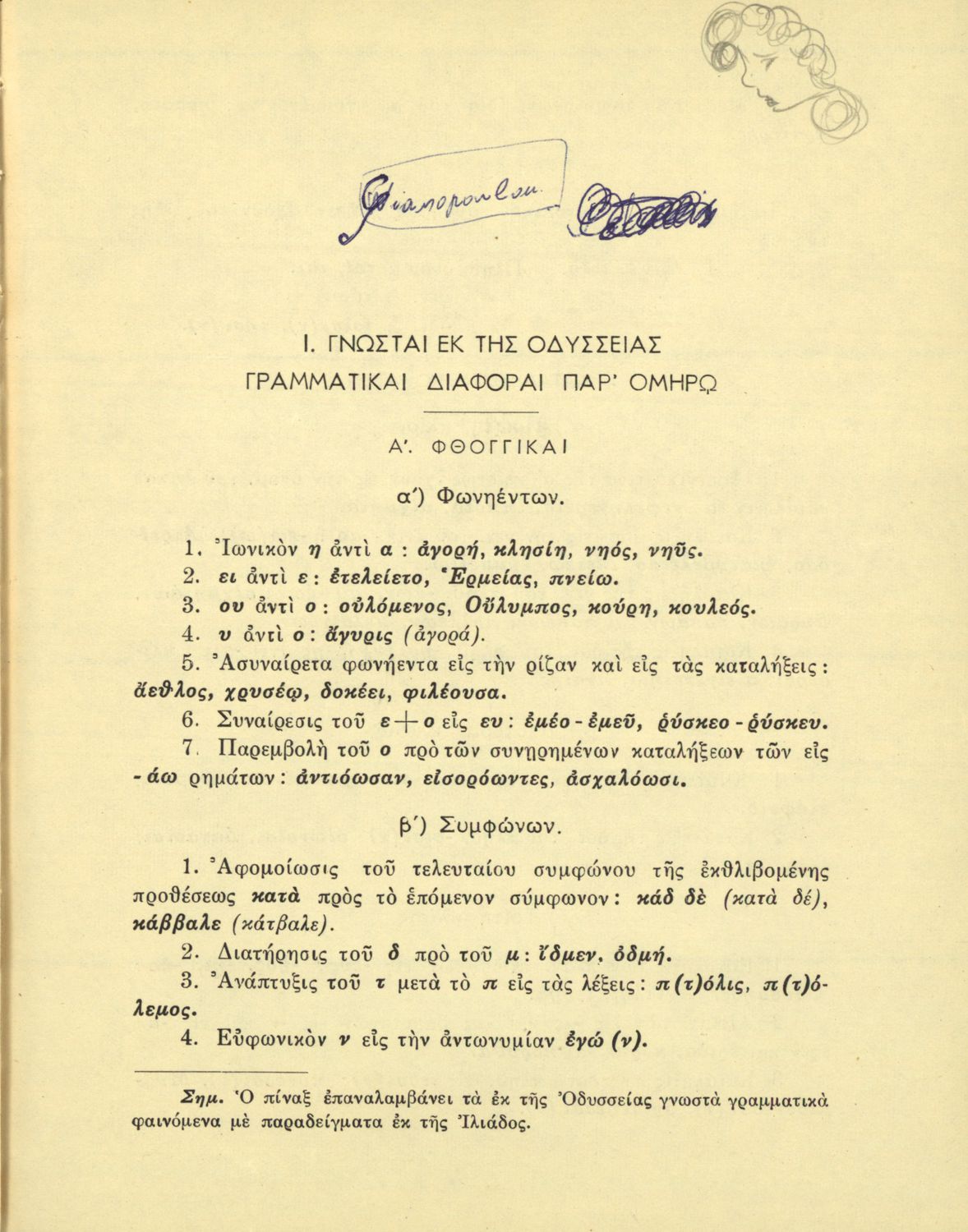 Σχολικό εγχειρίδιο του Γυμνασίου για το μάθημα των Αρχαίων Ελληνικών. Περιέχει ραψωδίες της Ιλιάδα στο αρχαίο κείμενο. Επίσης, περιλαμβάνει τη μετάφραση, τα ερμηνευτικά, πραγματολογικά σχόλια και τις λεξιλογικές παρατηρήσεις των συγγραφέων. Ο συγγραφέας ήταν Καθηγητής στο Κολέγιο Αθηνών. Η συγγραφέας ήταν Καθηγήτρια Φιλόλογος. Σχόλια και στιχάκια του Paul Anka από τη μαθήτρια στο περιθώριο του βιβλίου.