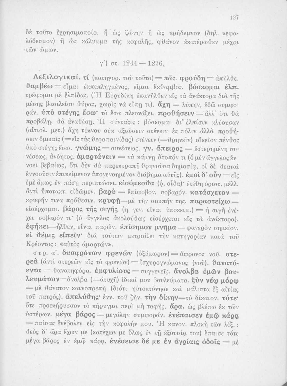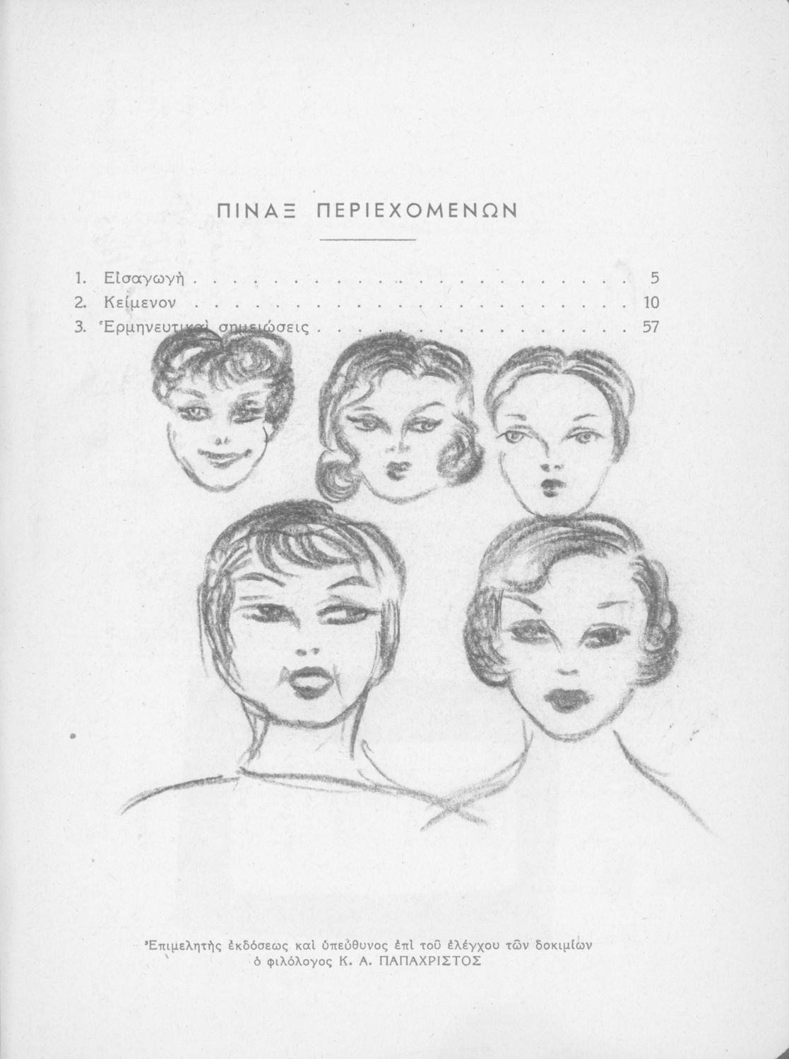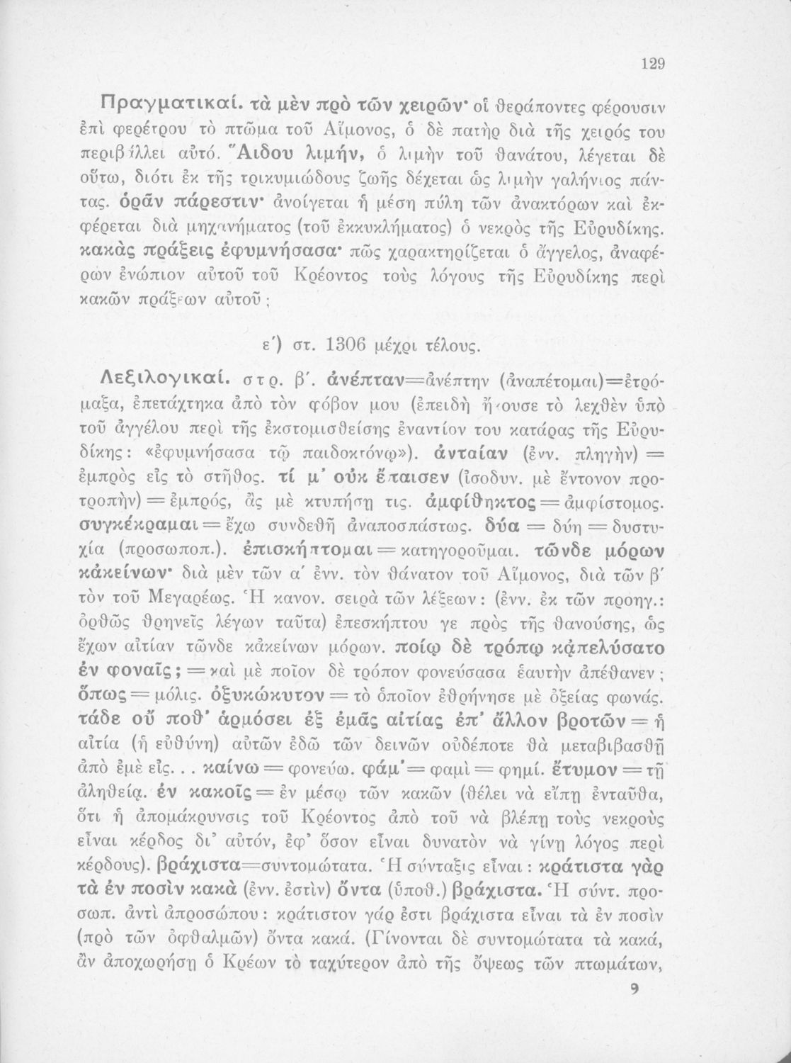 Σχολικό εγχειρίδιο της ΣΤ΄ Γυμνασίου για το μάθημα των Αρχαίων Ελληνικών. Περιλαμβάνει αποσπάσματα του αρχαίου κειμένου της τραγωδίας. Επίσης, περιέχει μετάφραση, ερμηνευτικά, πραγματολογικά σχόλια και λεξιλογικές παρατηρήσεις του συγγραφέα. Στο βιβλίο η μαθήτρια έχει ζωγραφίσει σκίτσα.