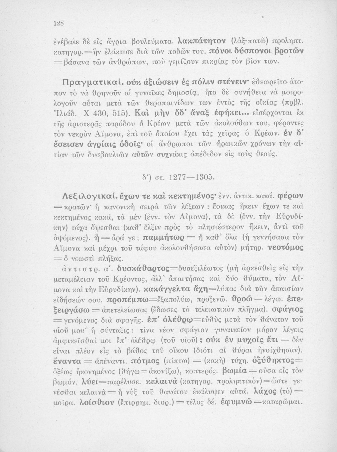 Το σύγγραμμα ήταν σχολικό εγχειρίδιο για το μάθημα των Αρχαίων Ελληνικών στο Γυμνάσιο. Περιέχει το πρωτότυπο κείμενο της τραγωδίας του Σοφοκλή. Επίσης, περιλαμβάνει ερμηνευτικές και λεξιλογικές παρατηρήσεις ...